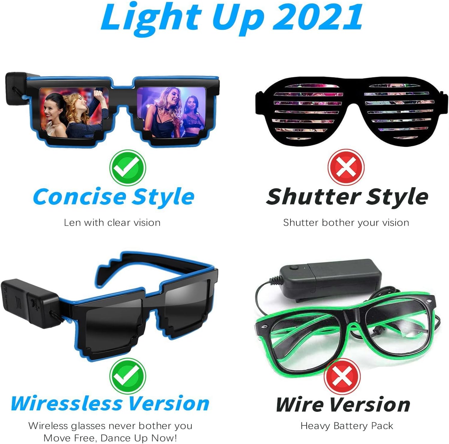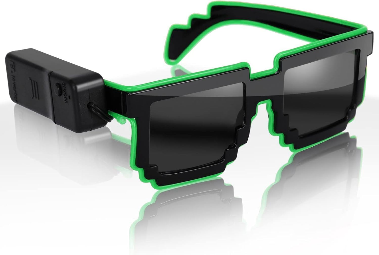 4 modalità di funzionamento e facili da usare: progettati con il pulsante di funzionamento, gli occhiali da sole sono molto facili da usare. Ha 4 modalità di funzionamento: luce fissa, flash lento, flash veloce e spento. Dopo aver installato le batterie, è sufficiente premere il pulsante sulla batteria per cambiare tra le 4 modalità di lavoro. 1 X Wireless Light Up Neon Rave Party Occhiali da sole Design ergonomico: adotta un design ergonomico, gli occhiali luminosi sono leggeri e molto comodi da indossare. È anche da vedere con gli occhiali accesi. Non c'è bisogno di preoccuparsi che le luci influenzino la linea di vista. Perfetto accessorio unisex per feste per persone di tutte le età. Occhiali luminosi per feste: vengono forniti con un classico design nero della cornice, gli occhiali da festa sono piuttosto belli ed eleganti e possono portare eccellenti con il suo filo EL di alta qualità, che ti renderà la stella più abbagliante. Perfetto per Halloween, Natale, compleanno, feste in costume, festival rave, carnevale e altri eventi. Sicuro e materiale: realizzati in plastica PVC resistente, i nostri occhiali luminosi sono forti e robusti, non si danneggiano facilmente dopo la caduta. Ed è e odore, per adulti e bambini da indossare.