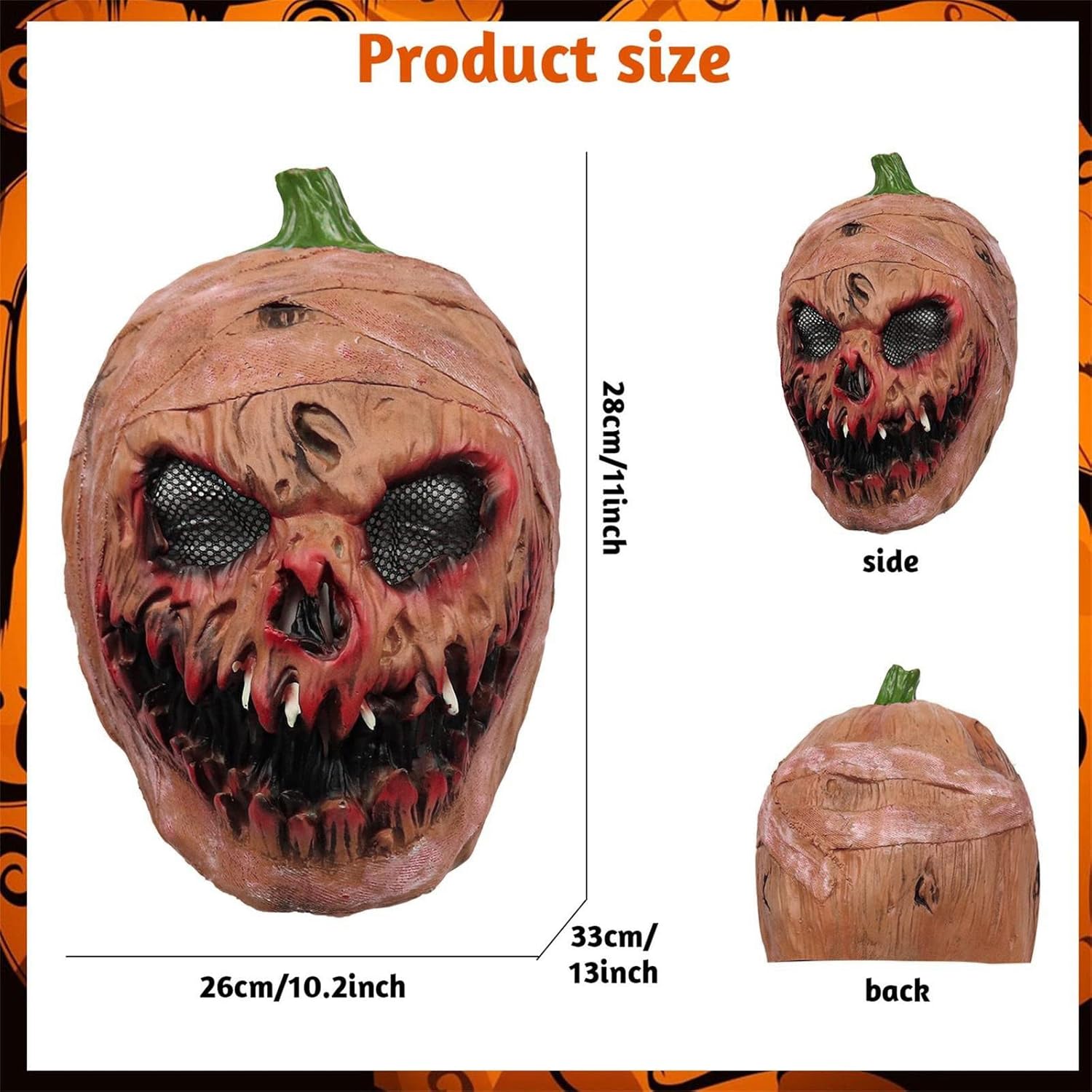 Materiale: Realizzato in lattice naturale, comodo e traspirante da indossare. Nota: poiché si tratta di un prodotto in lattice, è inevitabile che ci sia qualche odore, che è del tutto normale. Basta mettere il prodotto in un luogo ventilato per alcuni giorni e attendere che l'odore si dissolti. Non ha alcun effetto sul corpo umano. Si prega di sentire di usarlo. Design intricato. Squisita lavorazione dei dettagli, texture delicate e colori fantastici, fedele alla pellicola. Occasione: Perfetto per feste in maschera, regali, feste in costume, carnevale, Natale, Pasqua, Capodanno, Halloween, ecc. Renderti il centro della festa. Dimensioni: La dimensione del prodotto è di circa 32 x 23 x 6 cm, la bocca del cappuccio può muoversi su e giù liberamente secondo l'utente, flessibile come il mento umano. Adatto per la maggior parte delle persone. Visibilità e traspirabilità. La vista e il respiro non sono bloccati. Puoi vedere attraverso gli occhi del costume. Questo Will To You. Il lattice di gomma è elastico ed elastico con un sacco di spazio e traspirabilità.