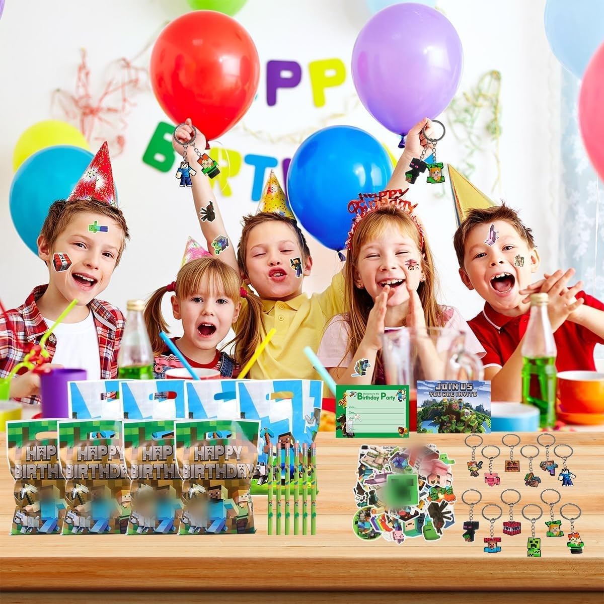✨✨ 【Bomboniere per videogiochi da 106 pezzi】 Stai cercando idee regalo uniche per un videogioco che i bambini adoreranno? La confezione comprende 12 portachiavi, 50 adesivi, 20 sacchetti di compleanno, 12 matite da gioco, 12 biglietti d'invito per i minatori. Preparati a dare una marcia in più al tuo gioco di società con questi fantastici articoli regalo a tema di gioco! ✨✨ 【Materiali di alta qualità】 Le nostre bomboniere per feste di compleanno per bambini in pixel sono realizzate con materiali sicuri e sono decorate con bellissimi motivi a cartoni animati. I biglietti d'invito sono realizzati in carta di alta qualità, i portachiavi sono realizzati in morbido silicone. Questo è il regalo perfetto per gli amanti dei giochi di cartoni animati e per i bambini. ✨✨【Design Raffinato】Questi regali per feste di compleanno per bambini sono vivaci e carini, i modelli di cartoni animati ben progettati sono amati dai bambini di tutte le età. Queste bomboniere sono un accessorio indispensabile per decorare le feste di compleanno dei bambini. ✨✨ 【Regalo per la festa dei minatori】 Questa borsa per feste di compleanno in pixel è abbondante, varia e colorata ed è amata dai bambini. Invita tuo figlio ad una festa di compleanno con un biglietto d'invito a tema gioco! Coinvolgi tutti distribuendo piccoli regali alla festa! ✨✨ 【Regali per feste a sorpresa】 Questo è un set di borse per feste di compleanno per bambini selezionato in base agli hobby dei bambini. I nostri set da gioco per ragazzi per feste di compleanno per bambini sono adatti a tutti i tipi di feste, compleanni, Halloween, Natale. Aggiunge un'atmosfera festosa a ogni occasione ed è perfetto per decorazioni per feste in stile gioco di cartoni animati.