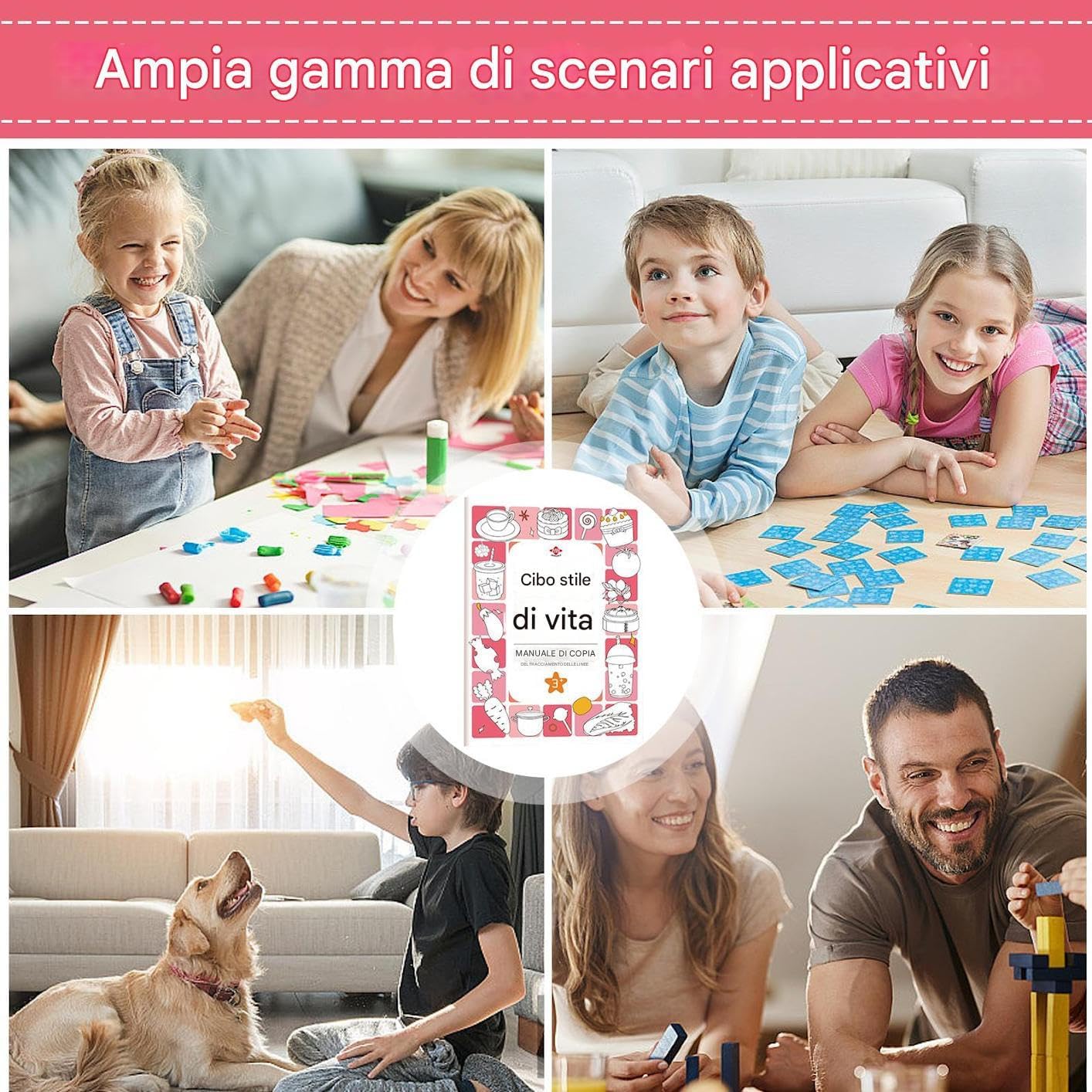 Pagine Sensoriali Protette: Carta atossica ipoallergenica con stampe a tocco morbido e inchiostri senza odori una base sicura che ispira fiducia nei bambini durante l'apprendimento. Sviluppo Percezione Artistica: Ricco di simpatici schizzi e disegni a contorno, il libro potenzia la percezione artistica e sviluppa la creatività con un approccio graduale che mantiene l'interesse e migliora le capacità di disegno Varietà tematica: Offre allenamento a difficoltà graduata con focus sullo sviluppo motorio, utilizzando temi adatti all'età come animali, vegetali e oggetti in formato didattico strutturato Utilizzo Versatile: Libro di tracciamento multifunzionale per attività artistiche nell'asilo, promuove l'interazione genitore-figlio, rafforza il controllo della penna e il riconoscimento delle forme. Compatibile con pennarelli e matite colorate, crea un ambiente stimolante per lo sviluppo creativo dei bambini. Set preparazione scrittura: Incentiva un abile addestramento al controllo della penna come parte della pratica di disegno, supportando efficacemente la preparazione alla scrittura precoce e migliorando la coordinazione occhio-mano.
