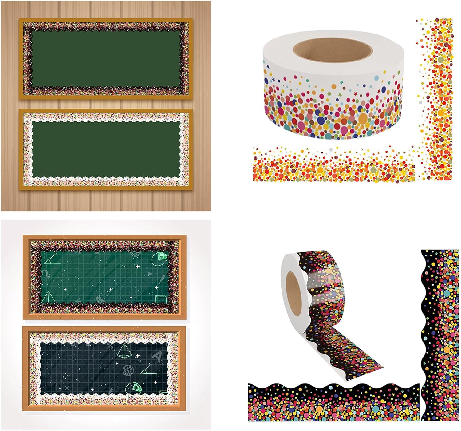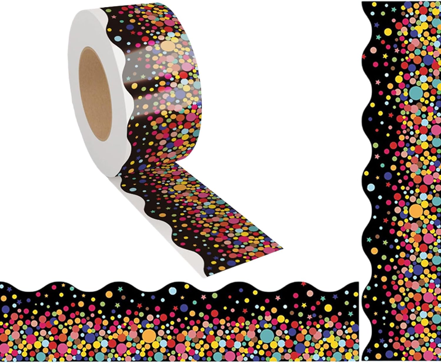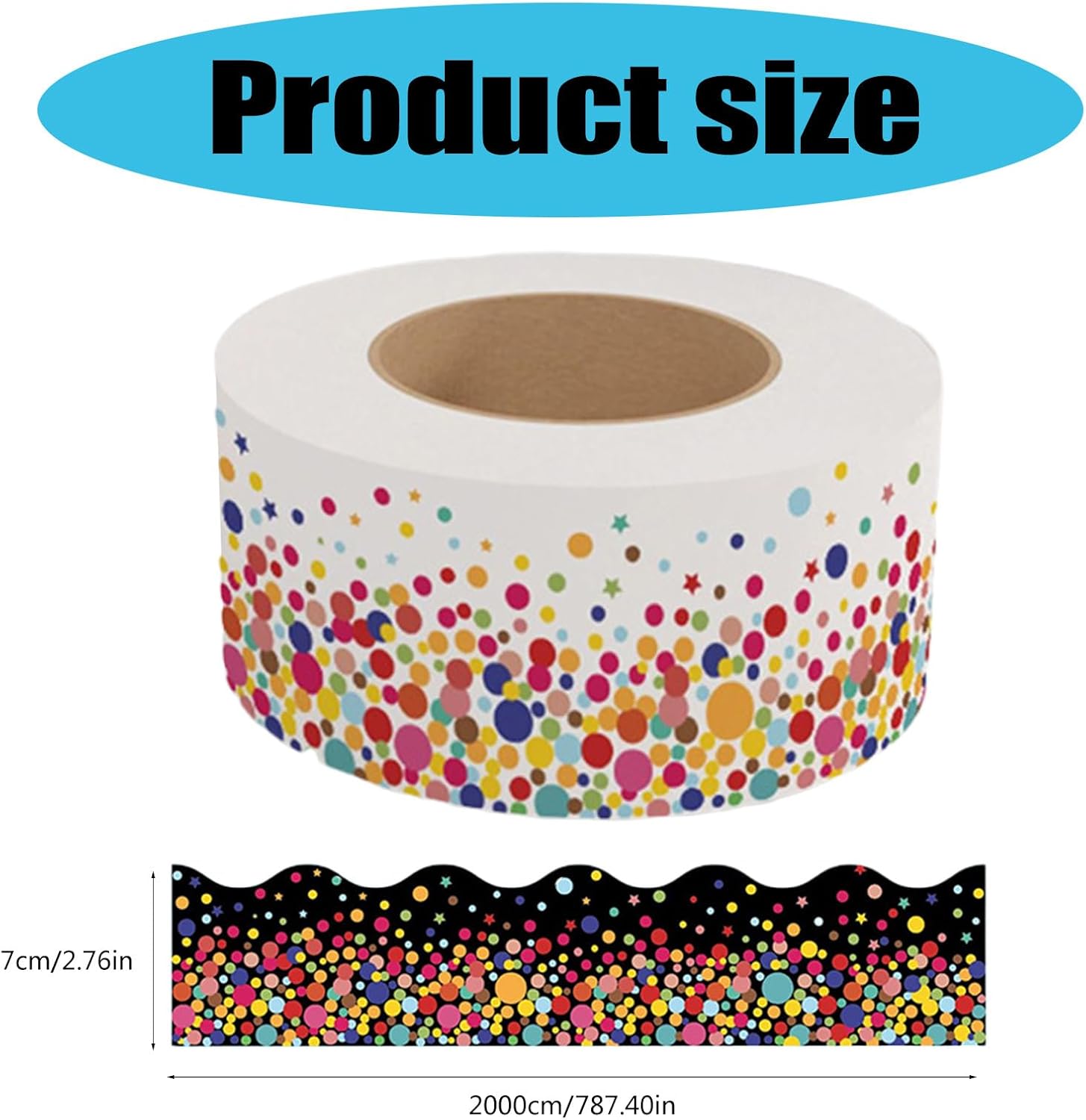 Ogni lunghezza del bordo della bacheca di Chalkbaord è di 20 m, sufficiente per le tue esigenze decorative, utilizza il bordo adesivo dove vuoi Questo bordo per bacheca è autoadesivo che ti aiuta a decorare facilmente la tua bacheca, scrivania o parete; molto da usare Adesivi per bordi dai colori vivaci, che possono evidenziare la bacheca o decorare la lavagna bianca per ufficio e classe; i bambini o gli studenti adoreranno questo bordo smerlato con motivo a pois colorati La stampa variopinta della carta del PVC di uso della disposizione del bordo della stampa dei punti con il rivestimento protettivo, che può resistere all'acqua, all'olio e per uso Molto adatto per la decorazione della classe, decorazione dell'ufficio, decorazione della porta, decorazione della finestra, decorazione della lavagna, decorazione della lavagna bianca e festa scolastica, il bordo decorativo della bacheca renderà il tuo posto più bello