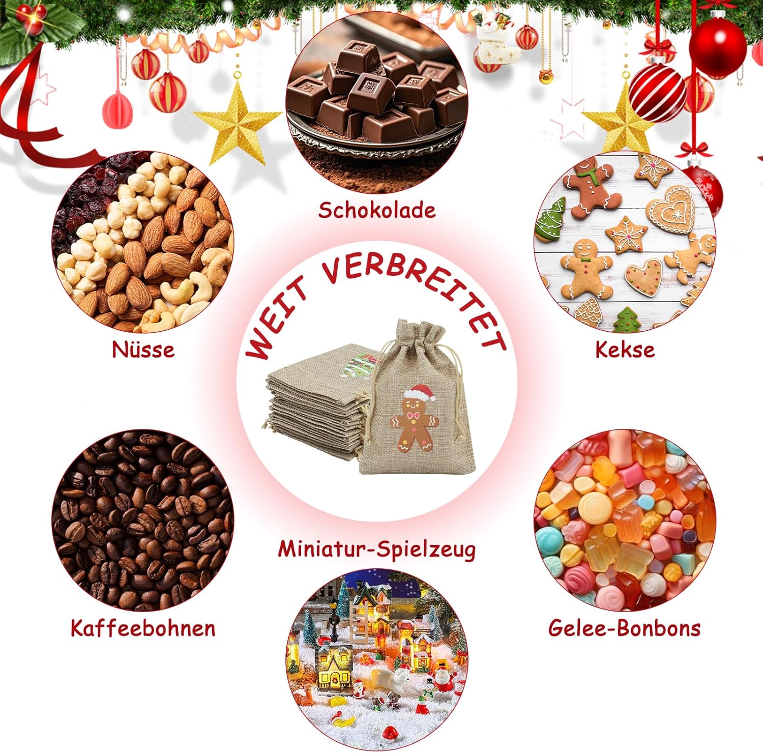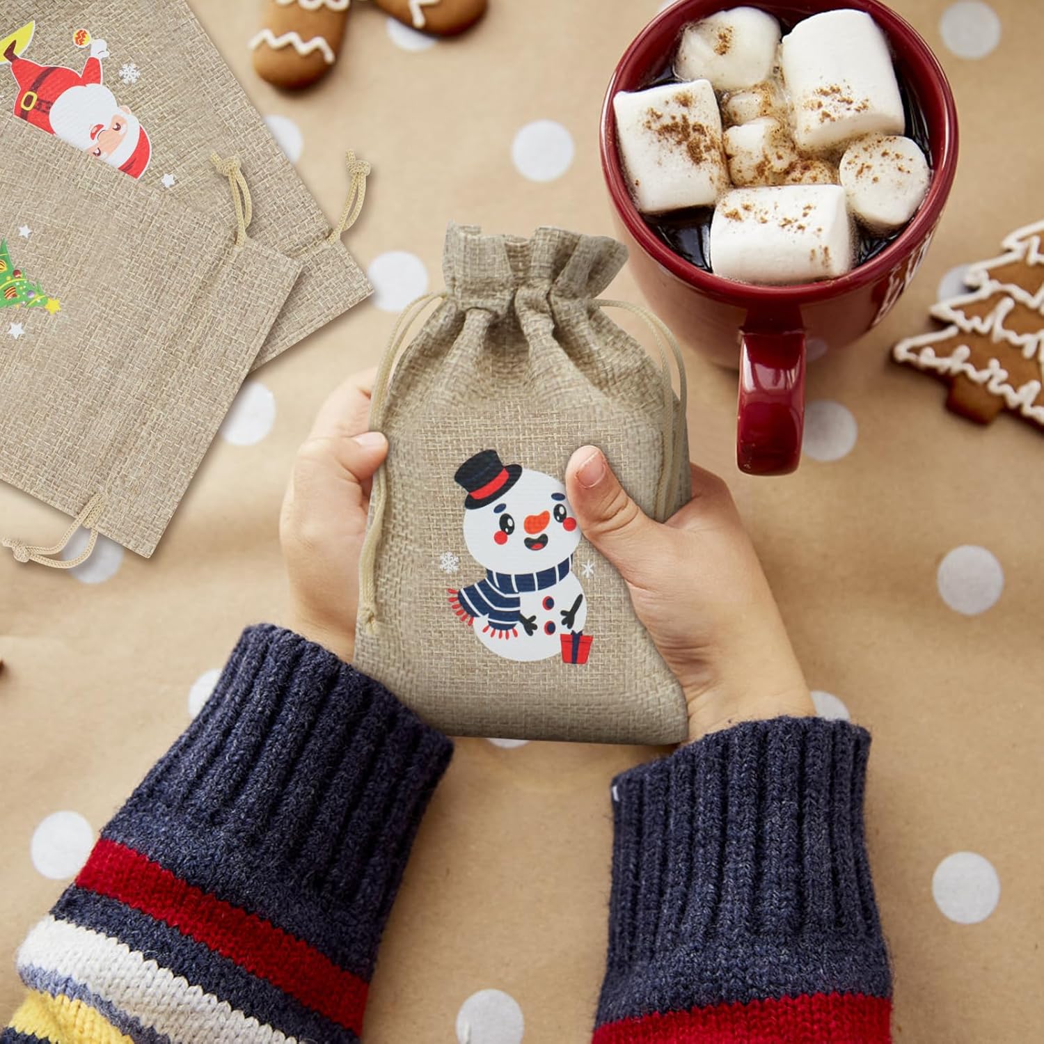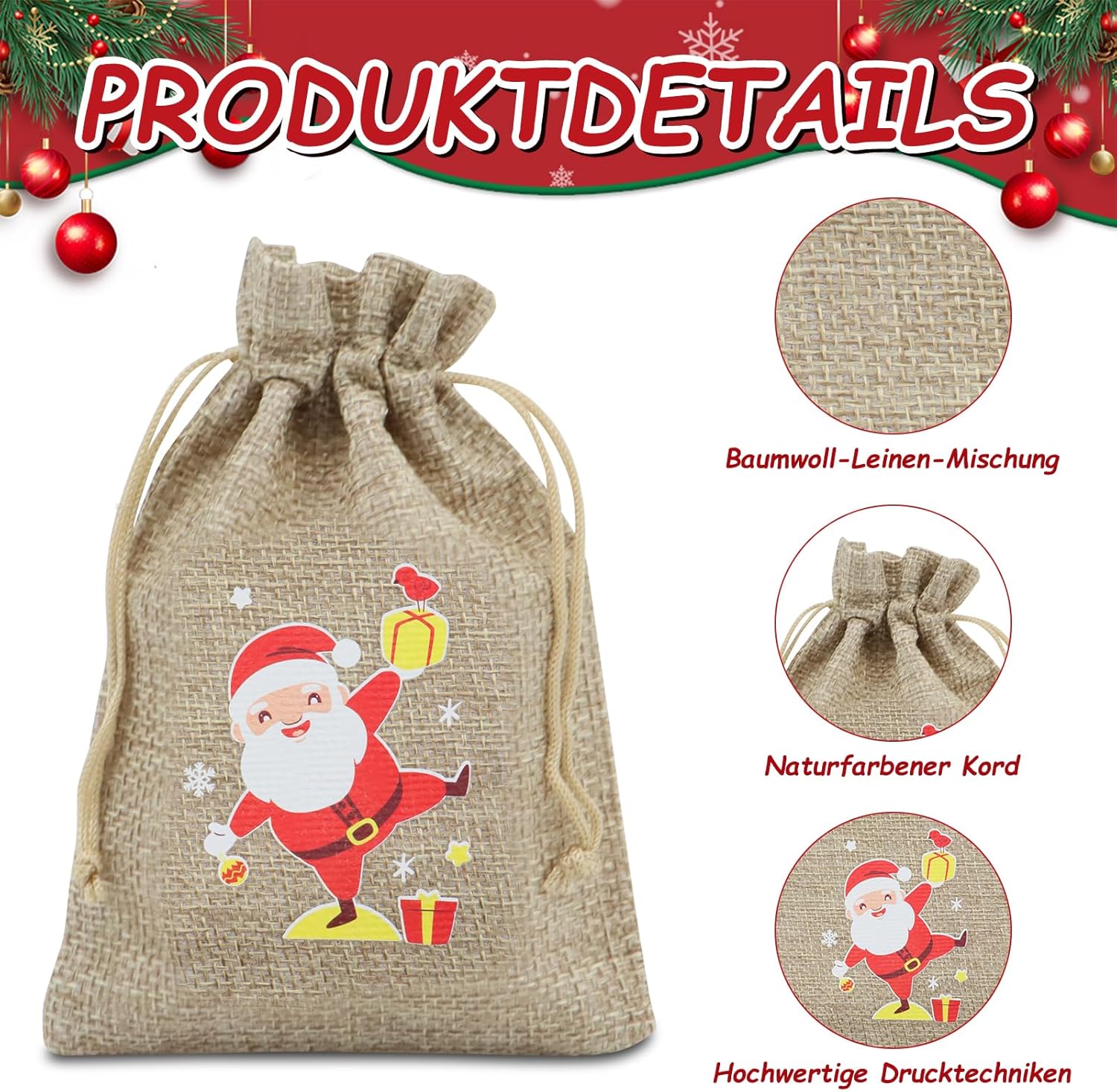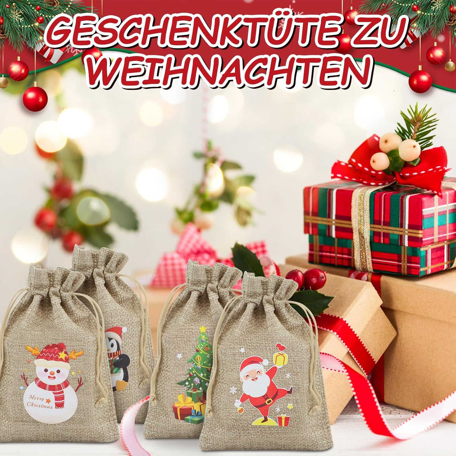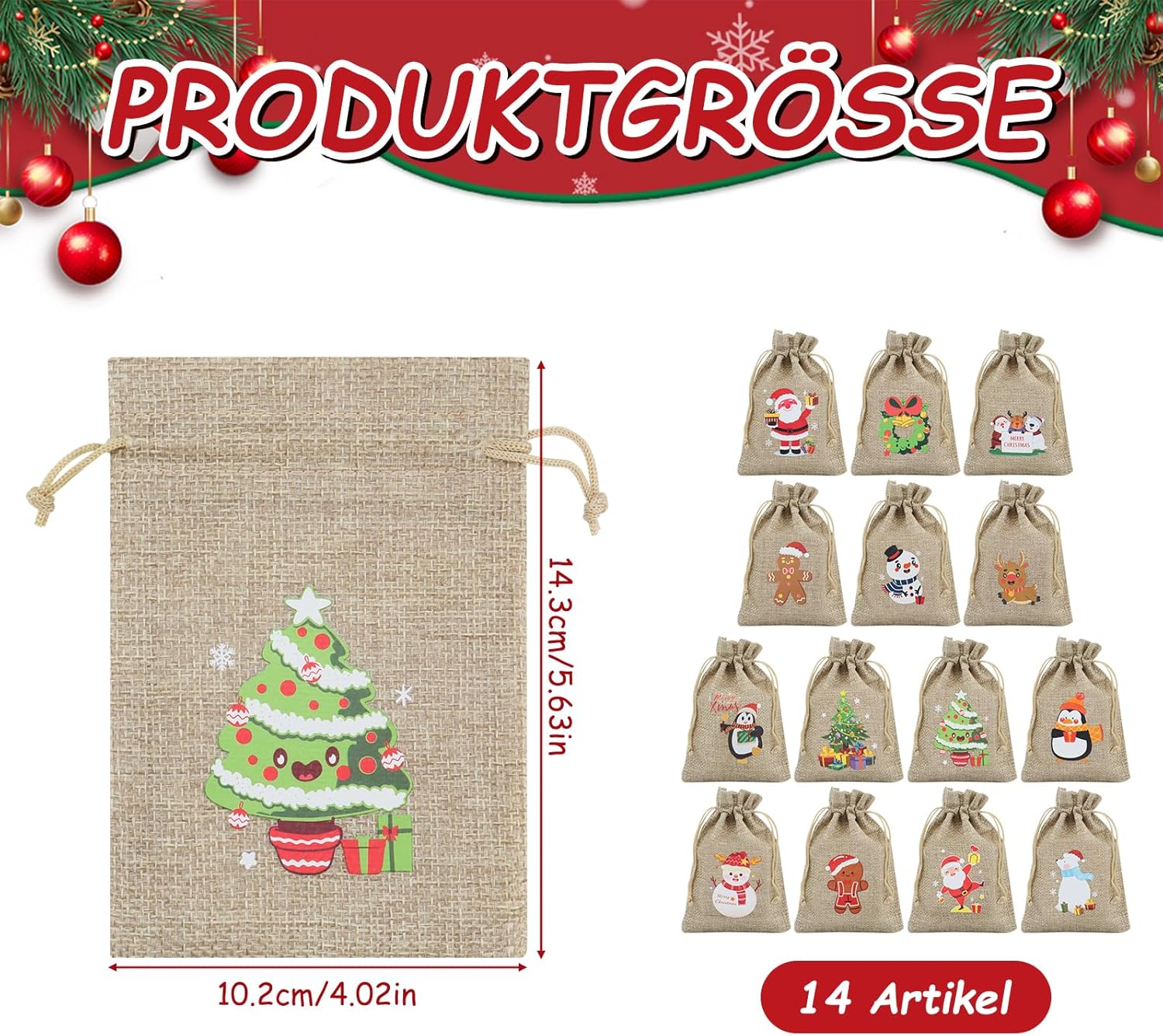 🎄Set di sacchetti di iuta: riceverai 14 sacchetti di iuta natalizi decorati con graziosi temi natalizi, tra cui pupazzi di neve, pinguini, alberi di Natale, Babbo Natale, orsi bianchi, omini di pan di zenzero, renne e ghirlande natalizie. I motivi vivaci e colorati donano un'atmosfera festosa ai tuoi regali di Natale. ❄️Materiale di alta qualità: questo sacchetto di iuta natalizio è realizzato in finto lino e corda di iuta, è robusto e durevole e può essere riutilizzato. La dimensione dei sacchettini con coulisse è 10×14 cm ed è ideale per riporre piccoli oggetti e confezionare bellissimi regali. ⛄️Design con cordoncino: ogni piccolo sacchetto natalizio in iuta ha un design con cordoncino, che ne facilita l'apertura e la chiusura, facilita la conservazione e il trasporto degli oggetti e li protegge bene per evitare inquinamento e perdita. 🎅🏻Sacchetti natalizi in tessuto: Questi sacchetti di iuta da riempire sono la scelta ideale per confezionare i regali di Natale. Sono ideali per confezionare piccoli oggetti come caramelle, cioccolata, ecc. Che si tratti di feste di famiglia, regali per amici o eventi aziendali, questi sacchetti regalo di Natale in tessuto fanno sembrare i regali che avete preparato particolarmente amorevoli. 🎁Sacchetti multifunzionali: Questi piccoli sacchetti di iuta da riempire non solo possono essere utilizzati come sacchetti regalo di Natale, ma hanno anche tanti altri usi. Sono adatti per riporre gioielli, portachiavi, braccialetti e altri piccoli oggetti.
