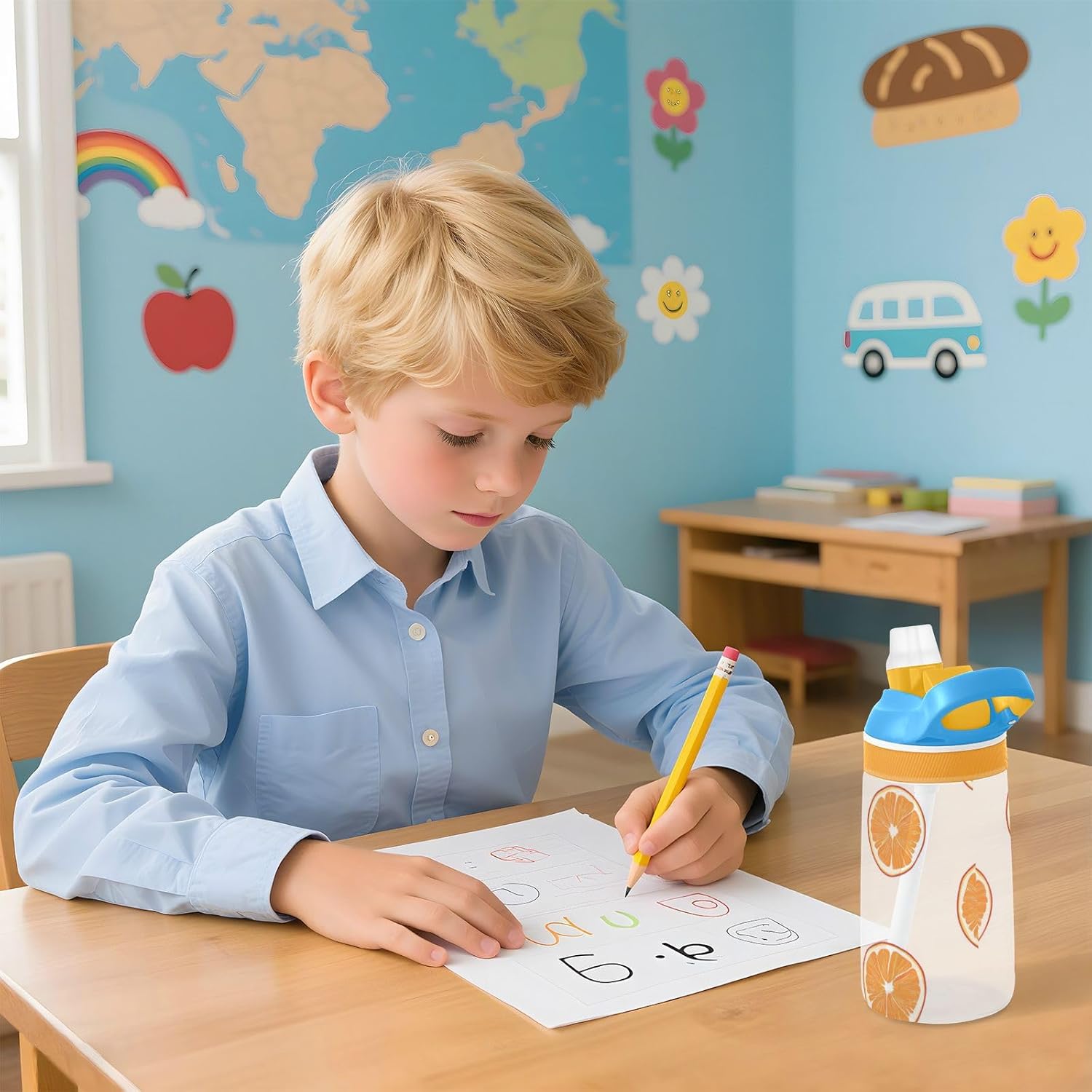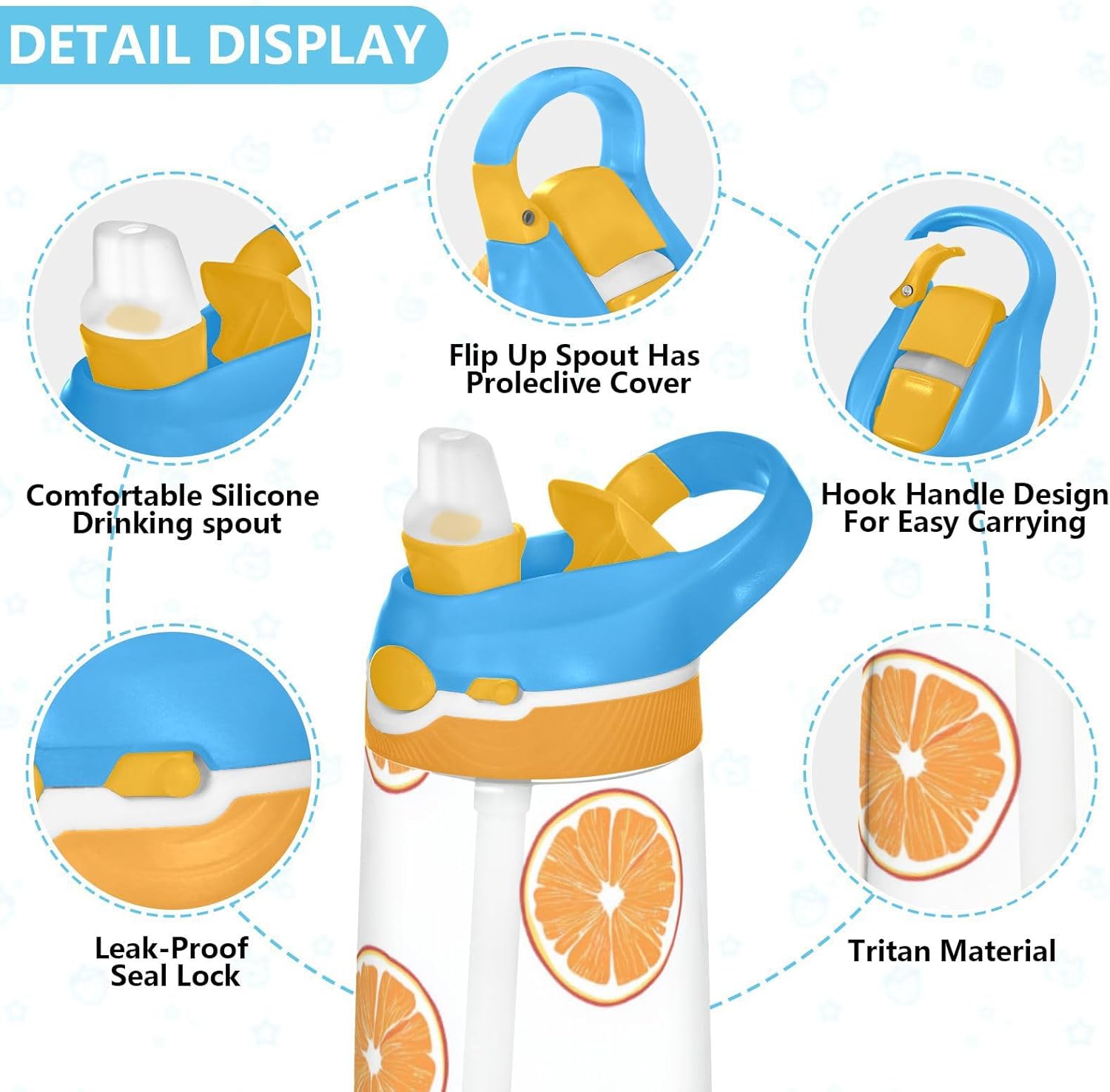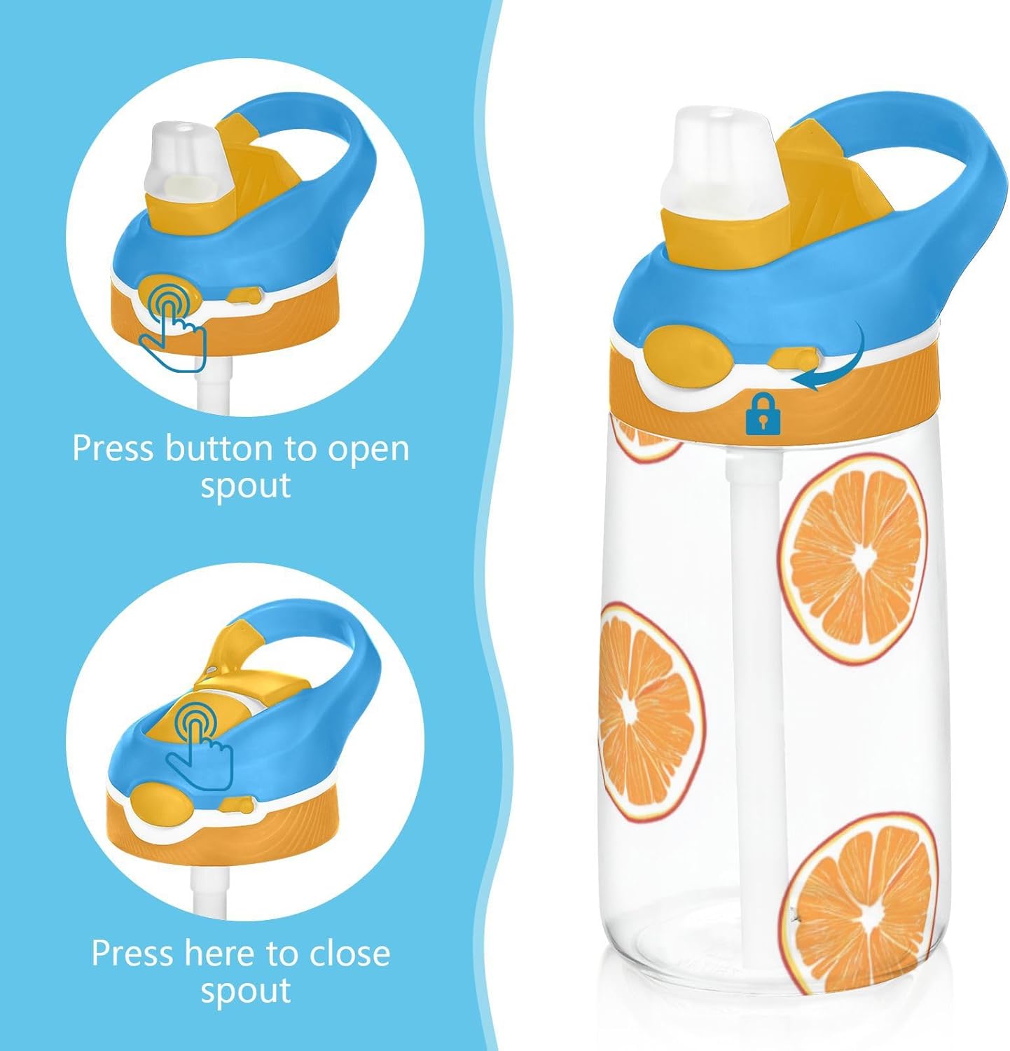 Materiali: questa borraccia da 480 ml (16 cm di lunghezza, 7,5 cm di larghezza) combina tritan e silicone alimentare. per la pratica sportiva o i giorni scolastici, è sicuro per i bambini da usare tutti i giorni. Non adatto a bambini di età inferiore ai 3 anni! Design portatile: l'ampio manico e il gancio del coperchio rendono la bottiglia d'acqua facile da trasportare. I bambini possono appenderlo alle loro borse, evitando il fastidio di farla cadere durante la ricreazione o i viaggi in autobus. Funzionamento con una sola mano: il becco d'anatra si adatta alla bocca dei bambini, con una copertura antipolvere. L'interruttore a pulsante della borraccia per bambini è semplice da usare con una sola mano, in modo che i bambini possano bere mentre tengono una palla o un notebook. Blocco per evitare fuoriuscite: il blocco del pulsante della bottiglia d'acqua impedisce al becco d'anatra di fuoriuscire per errore. Niente più fuoriuscite negli zaini, mantenendo il pranzo e i libri asciutti. Facile da pulire: tutte le parti della borraccia per bambini possono essere smontate per evitare l'accumulo di sporco. Pulire con detergente neutro e acqua calda.