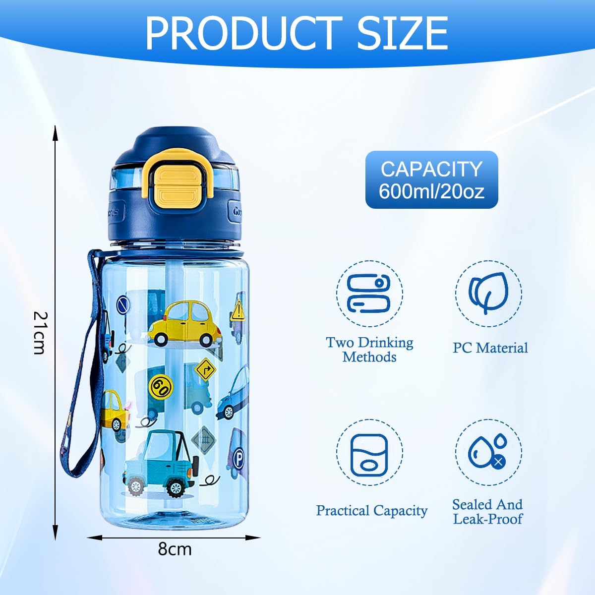 【Automobile blu e grande capacità di 600 ml】 Questa borraccia per bambini colpisce per il suo design blu trasparente con una colorata automobile che attira immediatamente l'attenzione dei bambini e stimola il loro interesse per il bere. La generosa capacità di 600 ml copre il fabbisogno di liquidi dei bambini durante tutta la giornata a scuola o in viaggio. In questo modo non è necessario riempirla frequentemente e bere ogni giorno diventa più piacevole. 【Doppio tappo e chiusura anti-perdita】 La nostra borraccia per bambini è dotata di un doppio tappo con beccuccio e cannuccia, in modo che i bambini possano scegliere il metodo di consumo più adatto alle loro esigenze e alla situazione. Il beccuccio è perfetto per bere velocemente, mentre la cannuccia consente di bere lentamente. Il tappo è inoltre dotato di un meccanismo di chiusura integrato che si blocca con un semplice clic, impedendo efficacemente l'apertura accidentale e le perdite nello zaino 【Materiale PC resistente, a prova di perdite】 La borraccia per bambini è realizzata in PC di alta qualità ed è quindi resistente, leggera e portatile, ideale per l'uso quotidiano. Il design a prova di perdite è ottenuto grazie a una struttura di tenuta precisa che sigilla completamente il tappo della bottiglia dopo la chiusura, impedendo così perdite anche quando la bottiglia viene capovolta. In questo modo i bambini possono trasportare la bottiglia senza temere di bagnare libri o vestiti. 【Design comodo da trasportare con manico decorato】 La borraccia è dotata di un manico con motivo coordinato che la rende elegante e facile da tenere e trasportare. Il manico leggero e resistente può essere facilmente fissato allo zainetto o al polso. Grazie a questo design, la borraccia è adatta a diverse attività come la scuola, i viaggi o lo sport e riduce il rischio di perderla 【Multiuso e compatibile con diverse bevande】 Questa borraccia sportiva per bambini è adatta a diversi ambienti, come aule scolastiche, parchi giochi all'aperto e gite in famiglia. È adatta per bevande comuni come acqua e succhi di frutta, è inodore e facile da pulire e sostituire. In questo modo è garantita una costante idratazione, sia alla scrivania che al parco giochi.