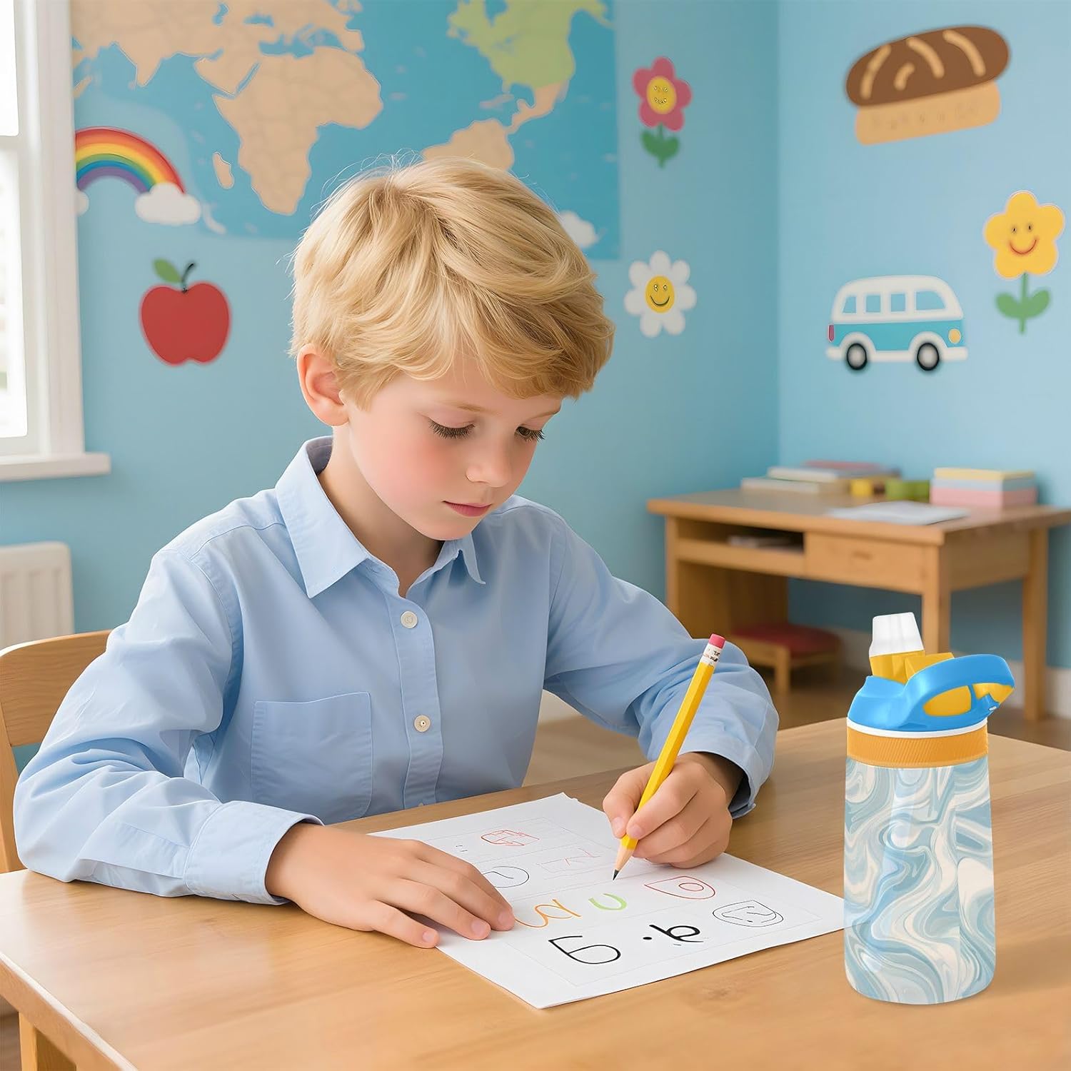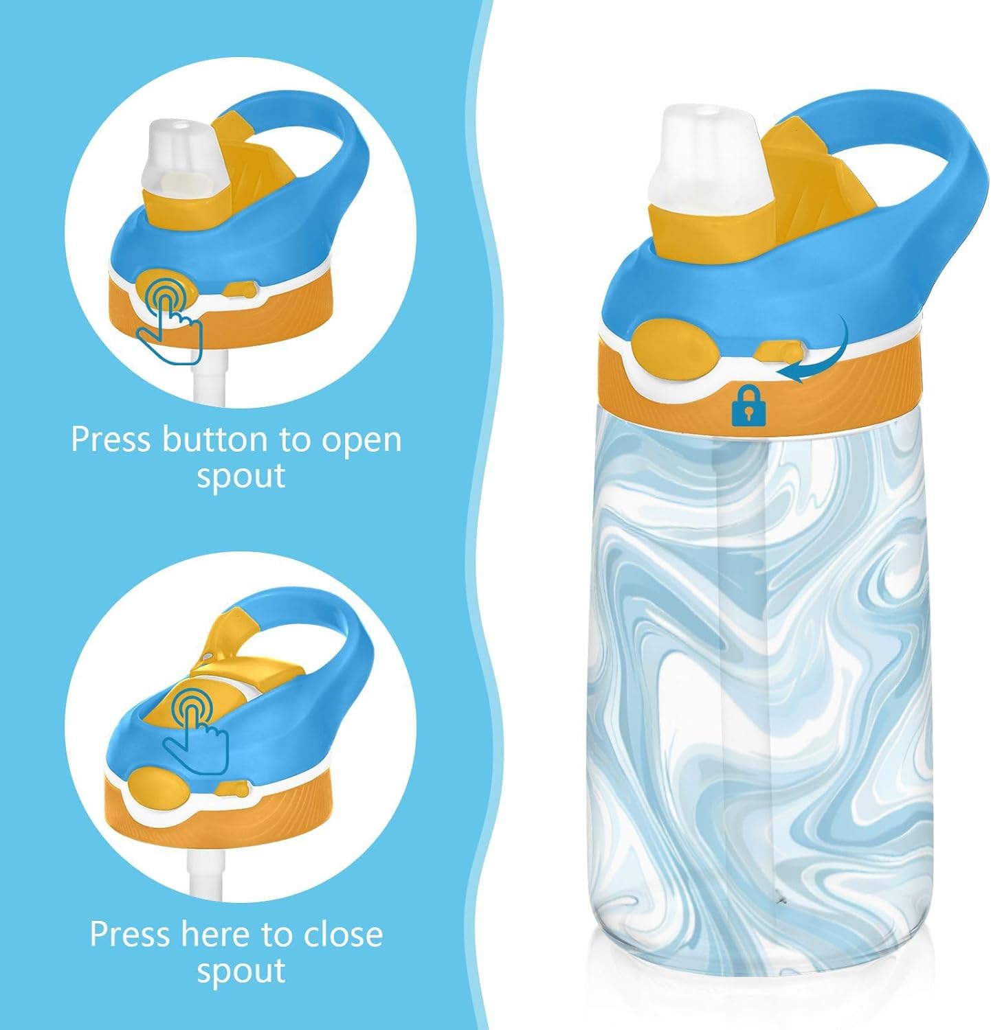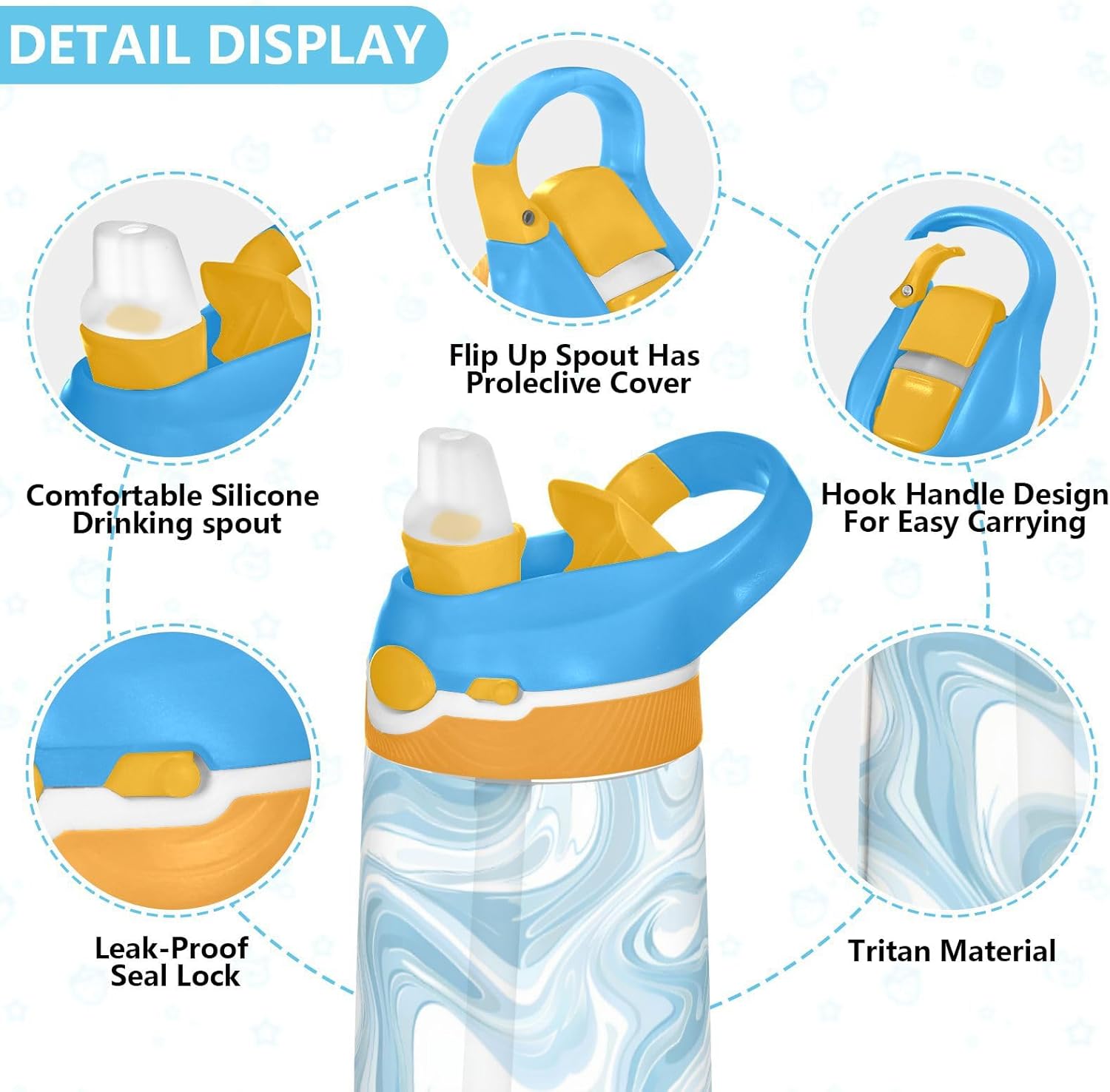 Materiali: questa borraccia per bambini da 480 ml (16 cm di lunghezza, 7,5 cm di larghezza) combina tritan e silicone alimentare. per la pratica sportiva o i giorni scolastici, è sicuro per i bambini da usare tutti i giorni. Non adatto a bambini di età inferiore ai 3 anni! Design portatile: l'ampio manico è facile da impugnare per i bambini e il gancio del coperchio consente di attaccare la borraccia per bambini agli zaini. Niente più bottiglie perse durante le gite sul campo o le attività dopo la scuola. Funzionamento amichevole: il becco d'anatra si adatta bene, con una copertura antipolvere. L'interruttore a pulsante della borraccia per bambini consente l'uso con una sola mano, in modo che i bambini possano idratarsi senza mettere giù i loro giocattoli o attrezzi sportivi. Blocco di sicurezza: il blocco del pulsante impedisce lo scoppio accidentale del becco d'anatra. Previene le perdite quando viene gettato nello zaino, mantenendo asciutti snack e compiti. Facile da pulire: tutte le parti della borraccia sono rimovibili per una pulizia accurata senza sporcare. Usa un detergente neutro e acqua calda: semplice per i genitori mantenere la pulizia per l'uso quotidiano.