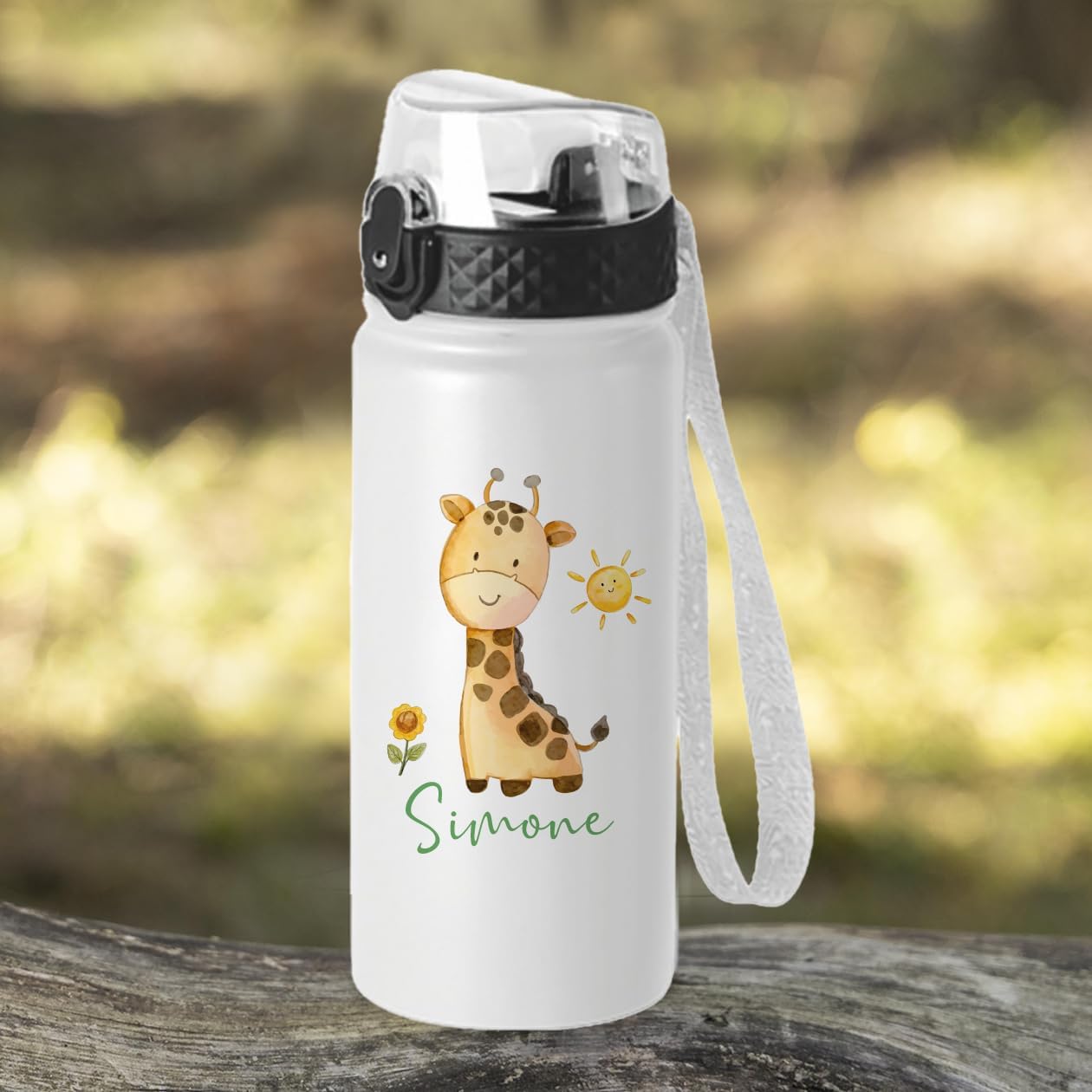 PERSONALIZZAZIONE: Bottiglia d'acqua personalizzabile con simpatico disegno e nome, perfetta per bambini che vogliono una borraccia unica CAPACITÀ: Contenitore termico da 550ml in acciaio inox, dimensione ideale per l'idratazione quotidiana dei bambini a scuola o durante le attività DESIGN PRATICO: Dotata di beccuccio con cannuccia integrata e cinturino per il trasporto, facile da utilizzare per i più piccoli MATERIALE: Realizzata in acciaio inox di alta qualità, mantiene le bevande alla temperatura desiderata più a lungo SICUREZZA: Tappo con chiusura sicura e design anti-goccia, ideale per evitare fuoriuscite nello zaino o durante l'uso
