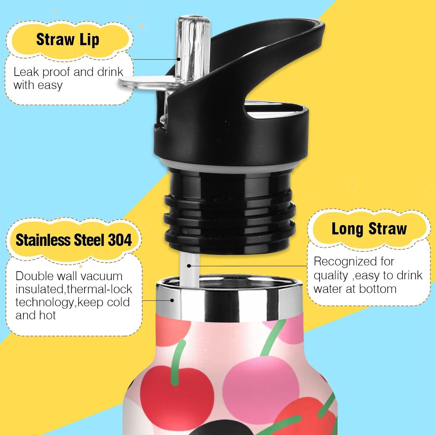 Controllo della temperatura per tutto il giorno: l'isolamento a doppio strato con rivestimento termoriflettente mantiene la temperatura delle bevande durante le pratiche di calcio o gli spostamenti invernali. Non scendere mai a compromessi sulla freschezz Coperchio versatile 2 in 1: dotato di una cannuccia per sorseggiare facilmente e di un beccuccio per versare o sbuffare senza sforzo; semplifica l'accesso alle bevande sia che si tratti di un caffè caldo o di una bevanda fredda. A tenuta stagna Avventura Ready: meccanismo Twist-lock e guarnizioni in silicone rinforzato impediscono fuoriuscite anche capovolte negli zaini. Affidati per gite in kayak o metropolitane affollate. Caratteristiche portatile: il manico allargato consente di raccogliere questa borraccia termica con solo due dita. È un gioco da ragazzi da portare durante le corse mattutine o le gite in bicicletta, in modo da poter rimanere idratati in movimento. Dimensioni perfette per viaggiare: questa borraccia per bambini si adatta alla maggior parte dei portabicchieri e alla tasca laterale di uno zaino. Comodo da portare in giro con un manico ergonomico a bordo largo. È ideale da portare a scuola, palestra, campeggio o viaggi su strada.