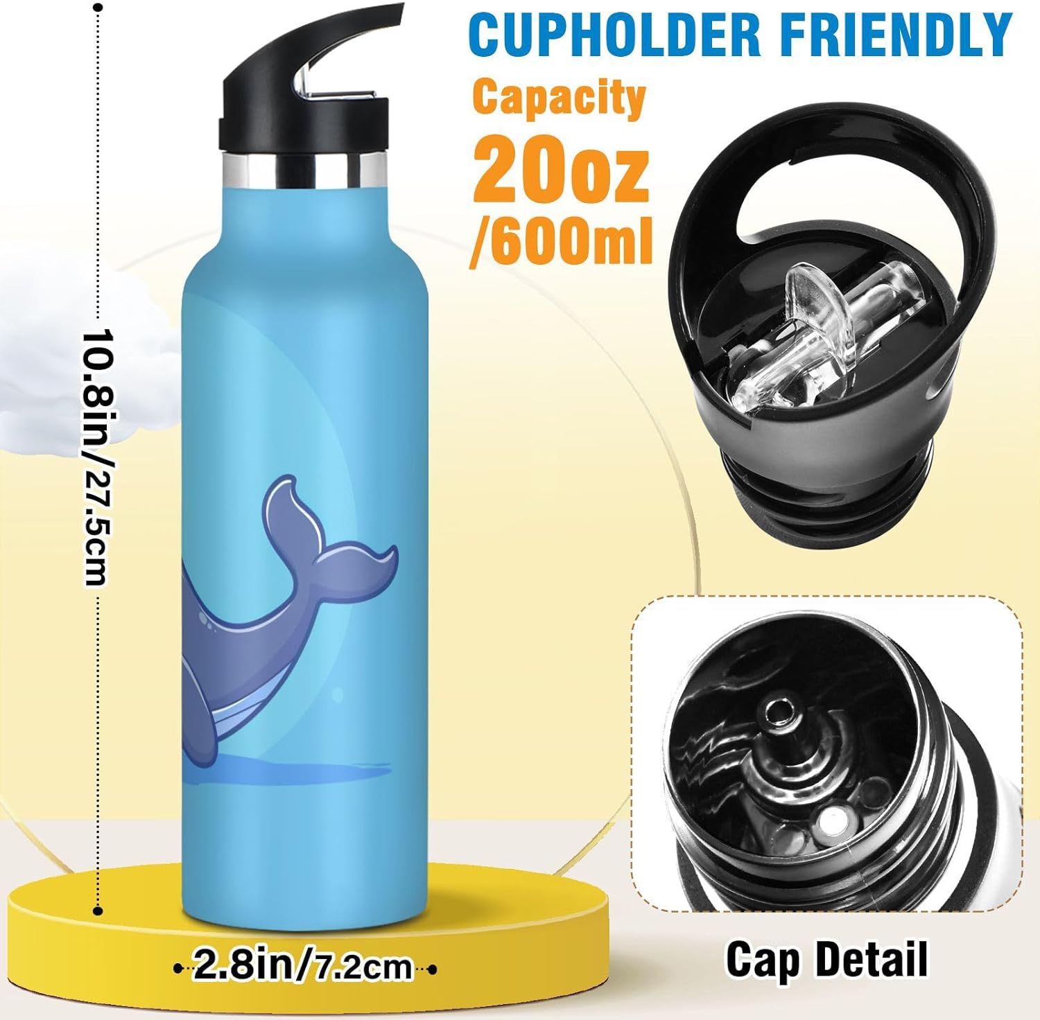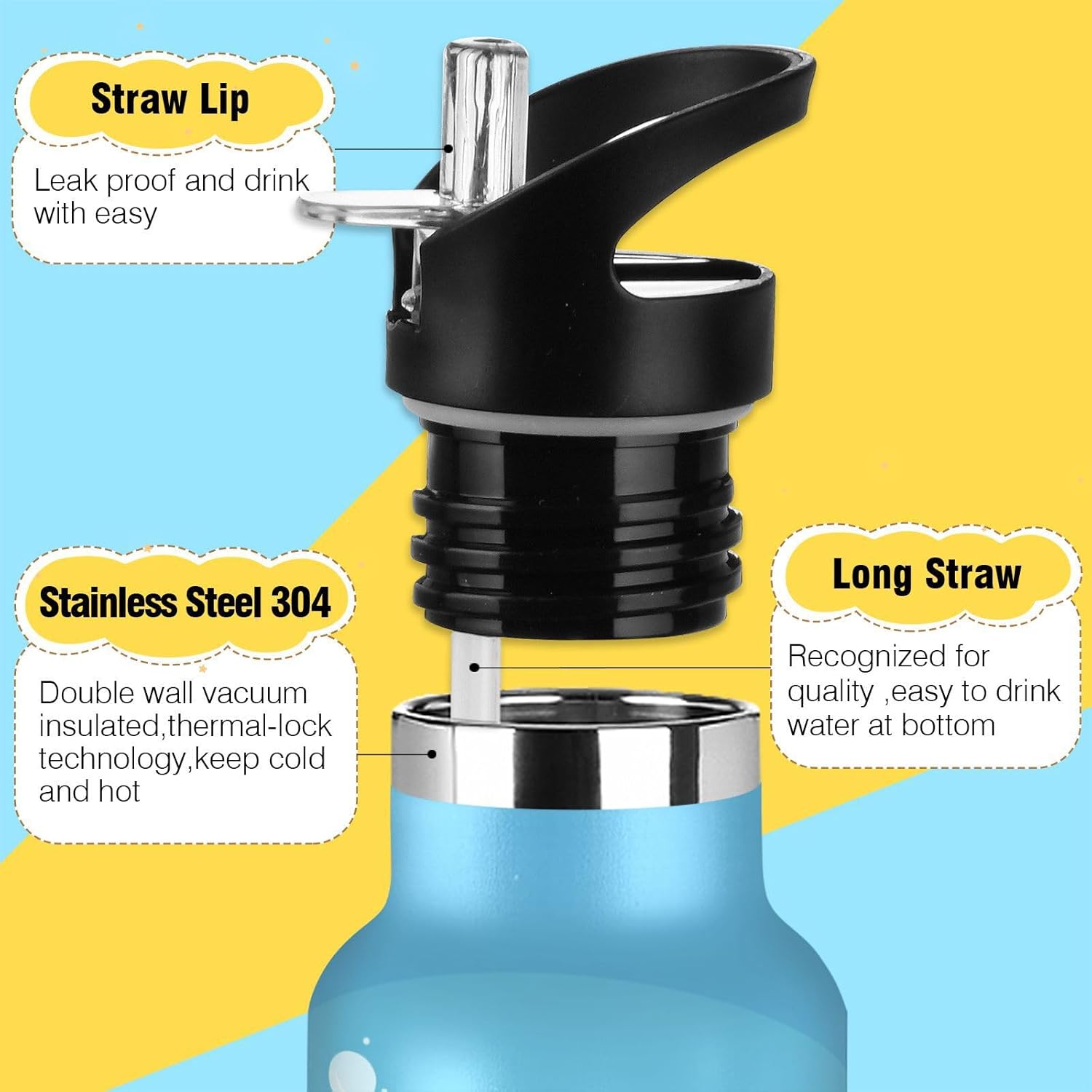 Resistenza isolata sottovuoto: realizzata con acciaio inossidabile a doppio strato e tecnologia sigillata sottovuoto, questa borraccia in metallo per bambini mantiene le bevande ghiacciate per 24 ore o calde al vapore per 12 ore, perfetta per maratone, escursioni o giornate impegnative in ufficio. Dite addio all'acqua tiepida durante gli allenamenti! Coperchio versatile 2 in 1: dotato di una cannuccia per sorseggiare facilmente e di un beccuccio per versare o sbuffare senza sforzo; semplifica l'accesso alle bevande sia che si tratti di un caffè caldo o di una bevanda fredda. A tenuta stagna Avventura Ready: meccanismo Twist-lock e guarnizioni in silicone rinforzato impediscono fuoriuscite anche capovolte negli zaini. Affidati per gite in kayak o metropolitane affollate. Grande capacità: con una grande capacità di 590 ml, questa borraccia termica sportiva è perfetta per rimanere idratati durante lunghi allenamenti o attività all'aperto. Dimensioni perfette per viaggiare: questa borraccia sportiva si adatta alla maggior parte dei portabicchieri e alla tasca laterale di uno zaino. Comodo da portare in giro con un manico ergonomico a bordo largo. È ideale da portare a scuola, palestra, campeggio o viaggi su strada.