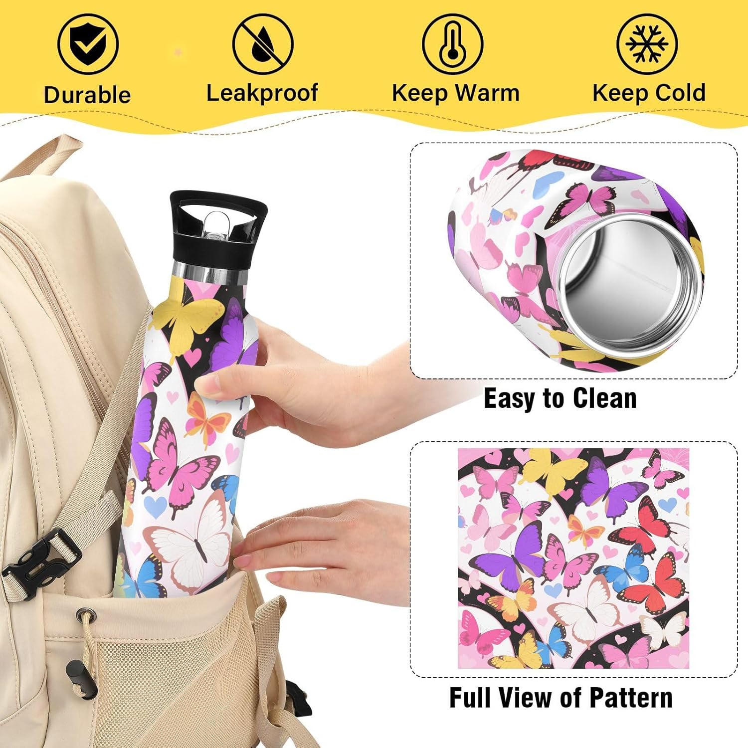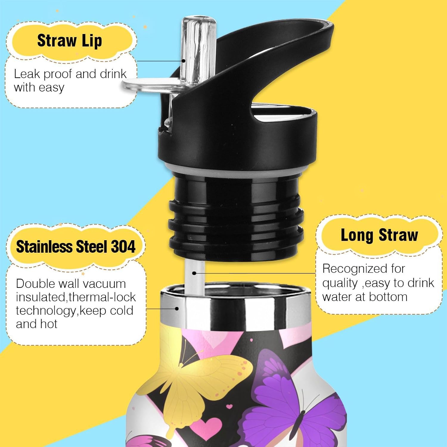 Isolamento premium: questa borraccia riutilizzabile presenta una struttura sottovuoto a doppia parete. Lo strato esterno in acciaio inox per uso alimentare e il rivestimento interno con uno strato termoisolante e blocco sottovuoto offrono una grande ritenzione di calore e freddo. Dite addio alle bevande tiepide! Coperchio 2 in 1: i due coperchi possono essere cambiati in qualsiasi momento: la cannuccia per sorseggiare facilmente o un coperchio girevole per una rapida idratazione. Design del coperchio: l'esclusiva valvola di rilascio dell'aria consente un flusso regolare durante le corse intense, senza scomode inclinazioni o rischi di soffocamento. Ideale per le pause di idratazione durante le lezioni Grande capacità: con una bottiglia d'acqua di grande capacità da 590 ml, questa borraccia in metallo per bambini è perfetta per rimanere idratati durante lunghi allenamenti o attività all'aperto. Questa borraccia in metallo per bambini è ideale per attività all'aperto, palestra, lavoro o uso domestico. Portalo con te ovunque tu vada e rimani idratato tutto il giorno.