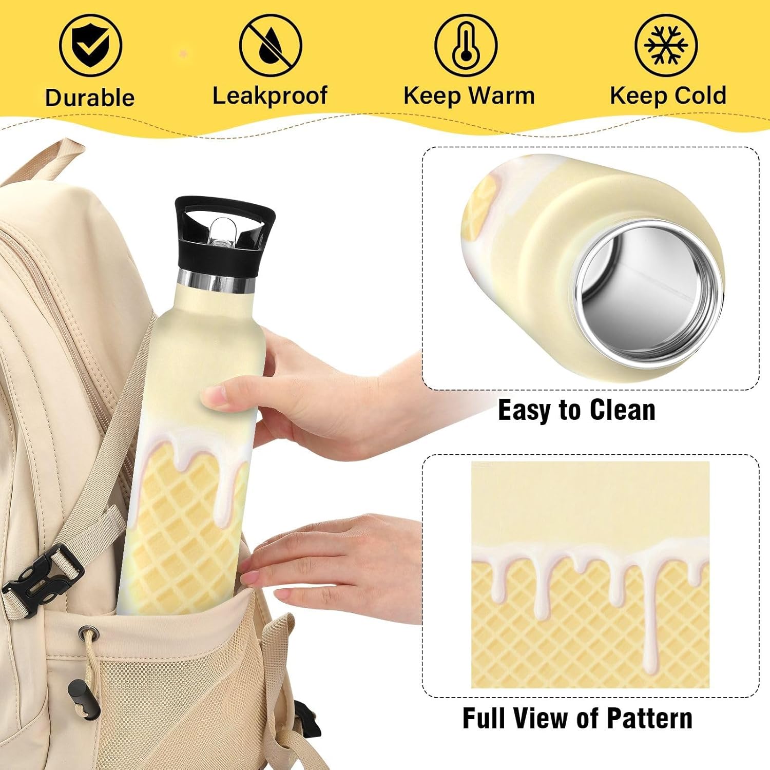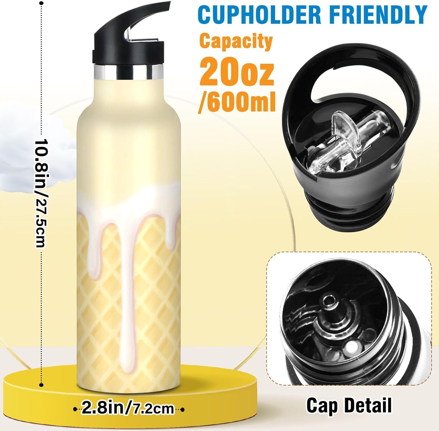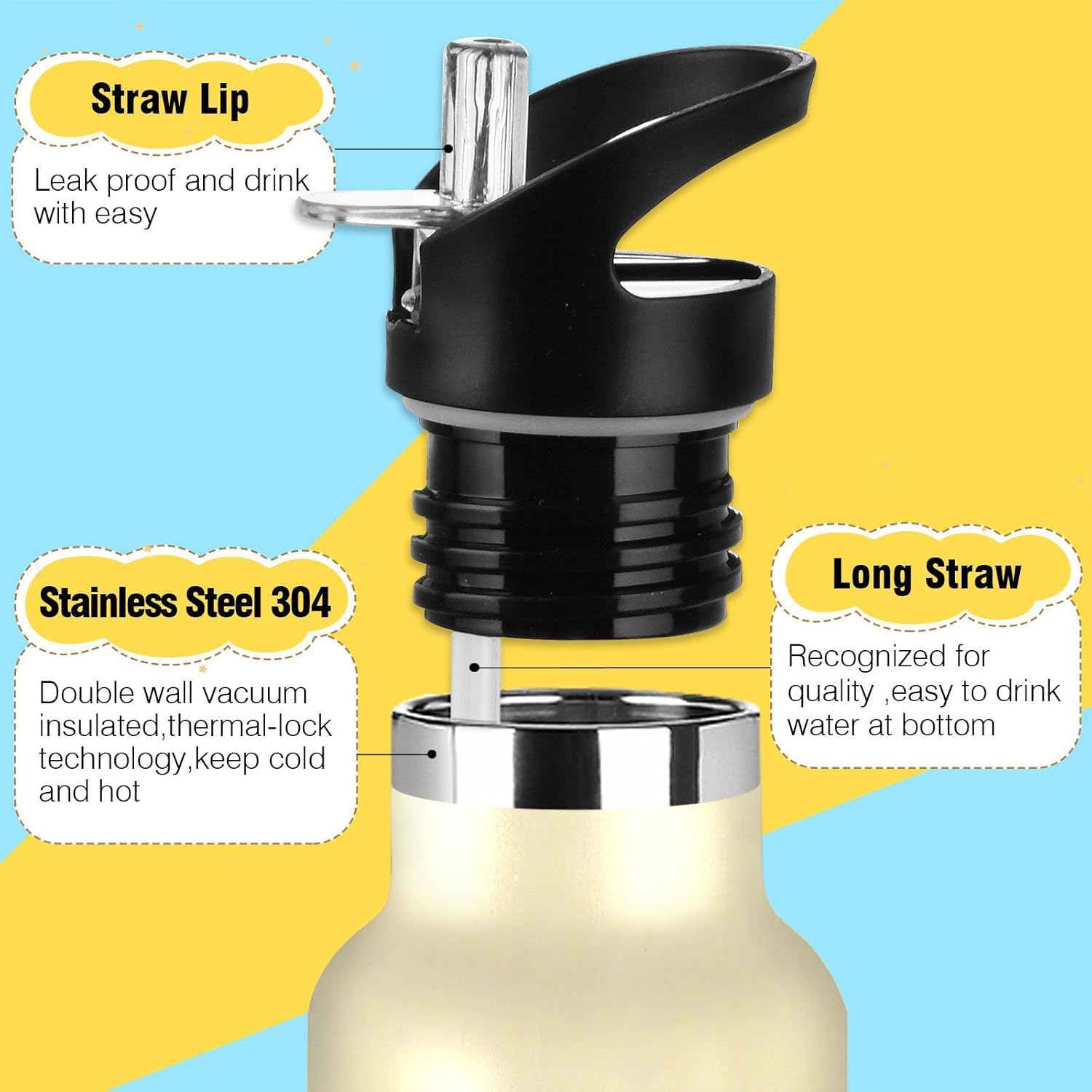 Isolamento premium: questa borraccia presenta una struttura sottovuoto a doppia parete. Lo strato esterno in acciaio inox per uso alimentare e il rivestimento interno con uno strato termoisolante e blocco sottovuoto offrono una grande ritenzione di calore e freddo. Dite addio alle bevande tiepide! Coperchio 2 in 1: con una cannuccia pieghevole, questa borraccia garantisce un facile sorseggio. È perfetto per gli allenamenti in palestra, dove puoi bere rapidamente. Design del coperchio: l'esclusiva valvola di rilascio dell'aria consente un flusso regolare durante le corse intense, senza scomode inclinazioni o rischi di soffocamento. Ideale per le pause di idratazione durante le lezioni Manico ergonomico per il trasporto: il passante extra largo si adatta a guanti o anelli ingombranti, rendendolo facile da afferrare durante le corse di alimentari o i sentieri di montagna. Si adatta perfettamente ai portabicchieri dell'auto. Dimensioni perfette per viaggiare: questa borraccia sportiva si adatta alla maggior parte dei portabicchieri e alla tasca laterale di uno zaino. Comodo da portare in giro con un manico ergonomico a bordo largo. È ideale da portare a scuola, palestra, campeggio o viaggi su strada.