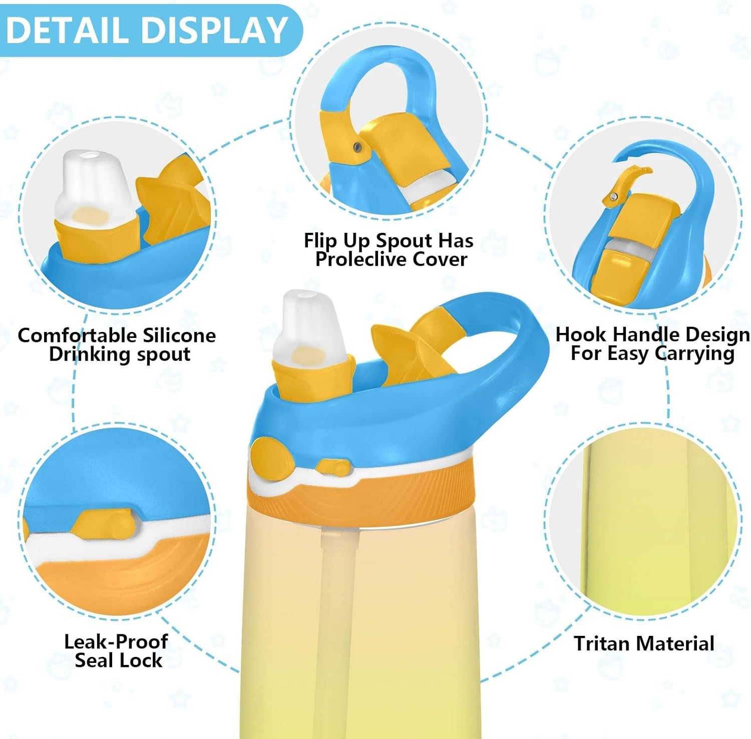 Materiali sicuri per l'uso quotidiano: con Tritan noto per la durezza e il silicone per un contatto delicato, le tazze da viaggio per bambini offrono una protezione senza BPA e un'idratazione confortevole tutto l'anno Uso adatto ai viaggi: il trasporto è facile con un grande manico e gancio, mentre le tazze da viaggio per bambini rimangono chiuse negli zaini grazie al coperchio a scatto stretto e al pulsante di blocco delle fuoriuscite Per bere comodamente: sia a casa che a scuola, le borracce per bambini offrono un sorso fluido con una morbida punta in silicone, oltre a un tappo sicuro e una cannuccia saldamente ancorata per un flusso costante Stampe brillanti, impressione duratura: con audaci motivi stagionali, simpatici animali e fascino artistico, le bottiglie d'acqua per adolescenti non solo aggiungono fascino, ma le rendono facili da individuare e amare Dimensioni compatte e pratiche: misura 7,5 x 16 cm con una capacità di 480 ml, le tazze da viaggio per bambini si adattano facilmente allo zaino o alle tasche laterali, adatte per l'idratazione quotidiana a casa, scuola o in viaggio