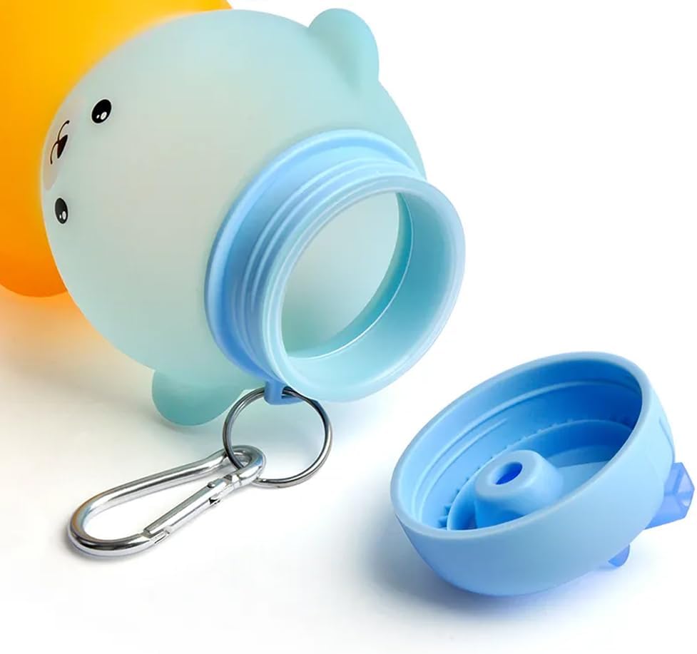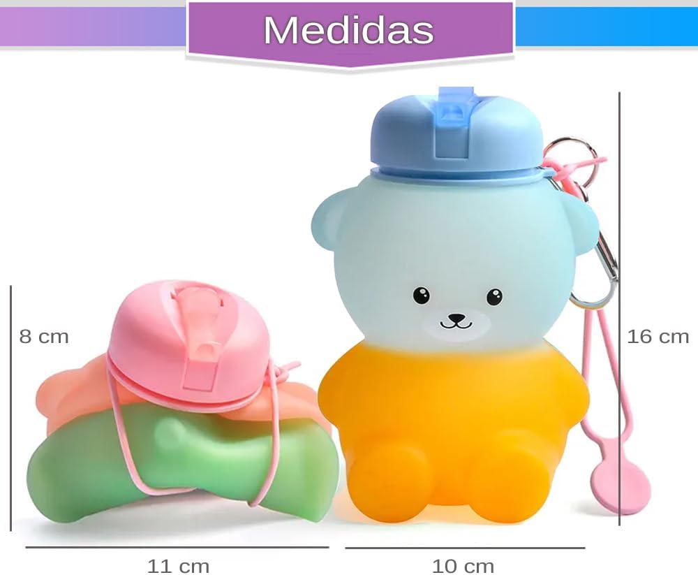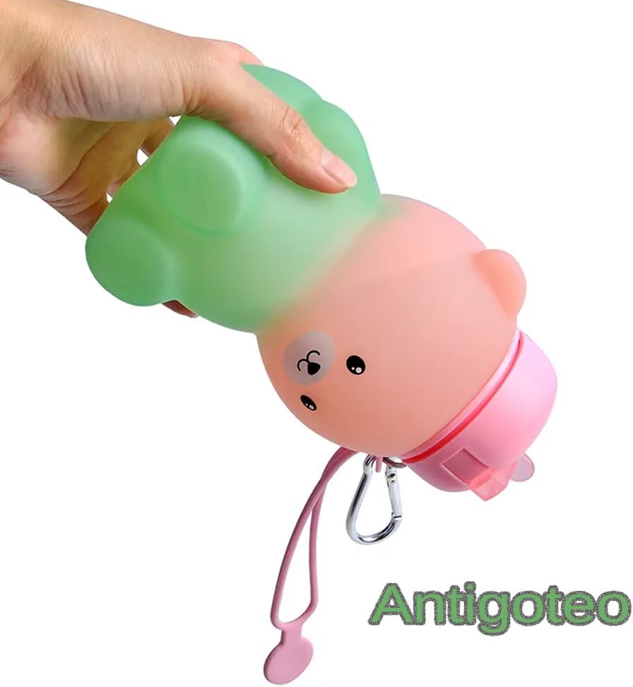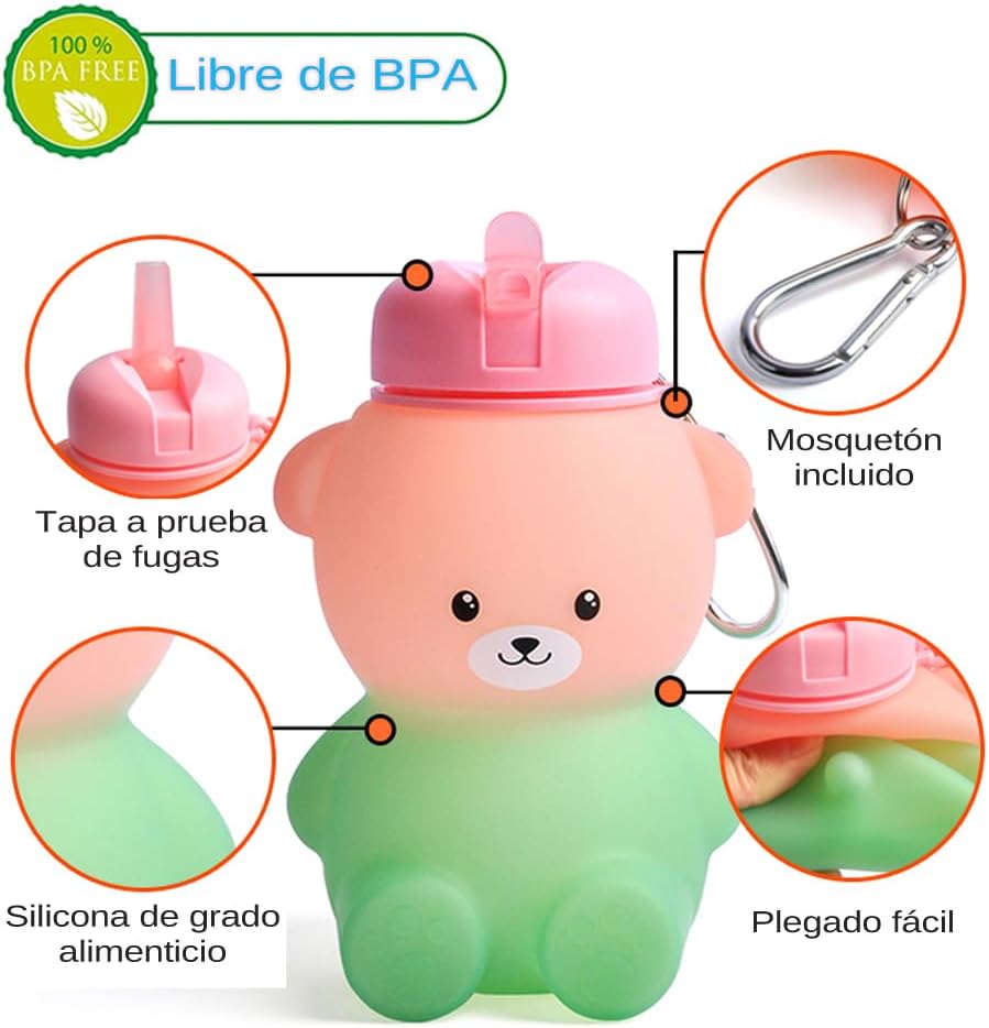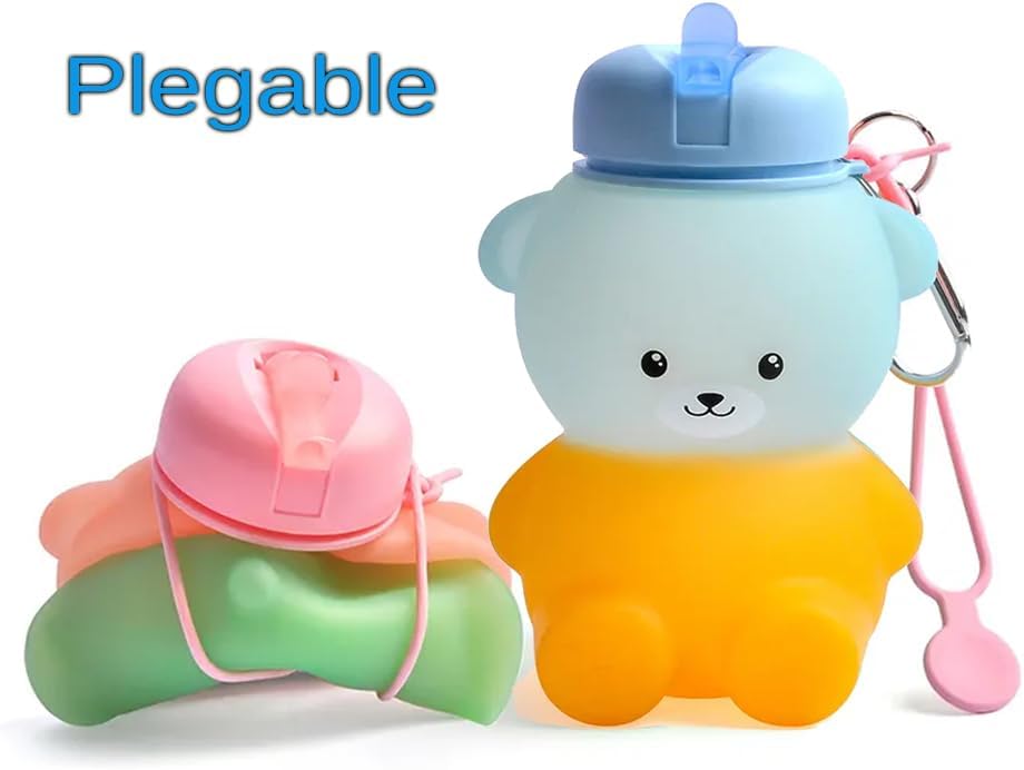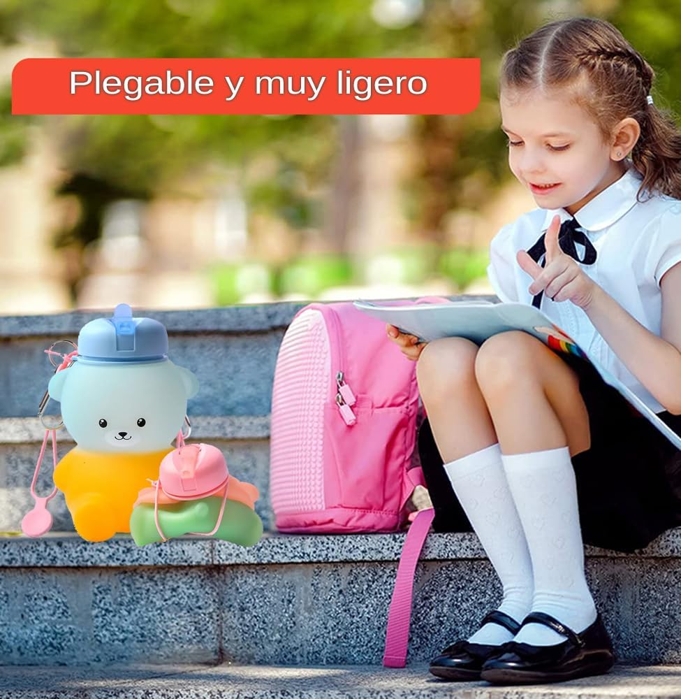 MATERIALE DI ALTA QUALITÀ: la nostra bottiglia d'acqua a forma di orso è realizzata con silicone alimentare della massima qualità senza BPA. È molto flessibile quindi anche se lo lasci cadere a terra non si romperà mai. Incorpora un tappo antigoccia di ultima generazione che è molto facile da usare per i bambini per bere l'acqua con una cannuccia. VERSATILE: Le bambine possono usarlo dove vogliono, campeggio, attività extrascolastiche, corsa, viaggi, scuola, visto che pesa pochissimo. Ha una grande capacità di 600 ml quindi è perfetta per poterla portare con sé tutto il giorno senza doverla riempire più e più volte. Grazie alla coulisse integrata, può essere piegato molto facilmente per riporlo nello zaino. DURATA: è progettato per resistere al freddo o al caldo estremo senza problemi. Può essere lavato in lavastoviglie o a mano. Puoi riempirlo con acqua molto fredda o anche con cubetti di ghiaccio e anche con la tua bevanda preferita, succo di frutta o latte caldo. Essendo così morbido e indeformabile, se cade a terra o si rompe non succede nulla, rimarrà intatto. REGALO: la bottiglia dell'orso è ideale come regalo. È economico e durevole, quindi sarà un regalo per molto tempo. È un regalo perfetto anche in altre occasioni come Natale, feste, vacanze o semplicemente da acquistare per i vostri bambini affinché bevano più acqua mentre giocano.