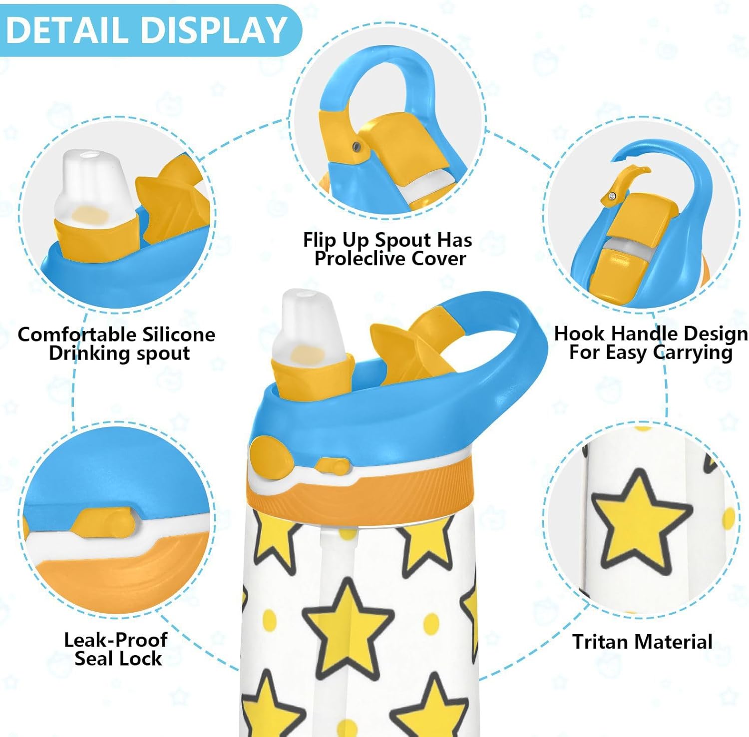Materiali: questa borraccia sportiva da 480 ml (16 cm di lunghezza, 7,5 cm di larghezza) combina tritan e silicone alimentare. per la pratica sportiva o i giorni scolastici, è sicuro per i bambini da usare tutti i giorni. Non adatto a bambini di età inferiore ai 3 anni! Design portatile: l'ampio manico è facile da impugnare per i bambini e il gancio del coperchio consente di attaccare la borraccia sportiva agli zaini. Niente più bottiglie perse durante le gite sul campo o le attività dopo la scuola. Funzionamento amichevole: il becco d'anatra si adatta bene, con una copertura antipolvere. L'interruttore a pulsante delle bottiglie d'acqua sportive consente l'uso con una sola mano, in modo che i bambini possano idratarsi senza mettere giù i loro giocattoli o attrezzi sportivi. Blocco per evitare fuoriuscite: il pulsante di blocco della borraccia sportiva impedisce al becco d'anatra di fuoriuscire per errore. Niente più fuoriuscite negli zaini, mantenendo il pranzo e i libri asciutti. Facile pulizia: tutte le parti della borraccia per bambini sono rimovibili per una pulizia accurata senza sporcare. Usa un detergente neutro e acqua calda: semplice per i genitori mantenere la pulizia per l'uso quotidiano.
