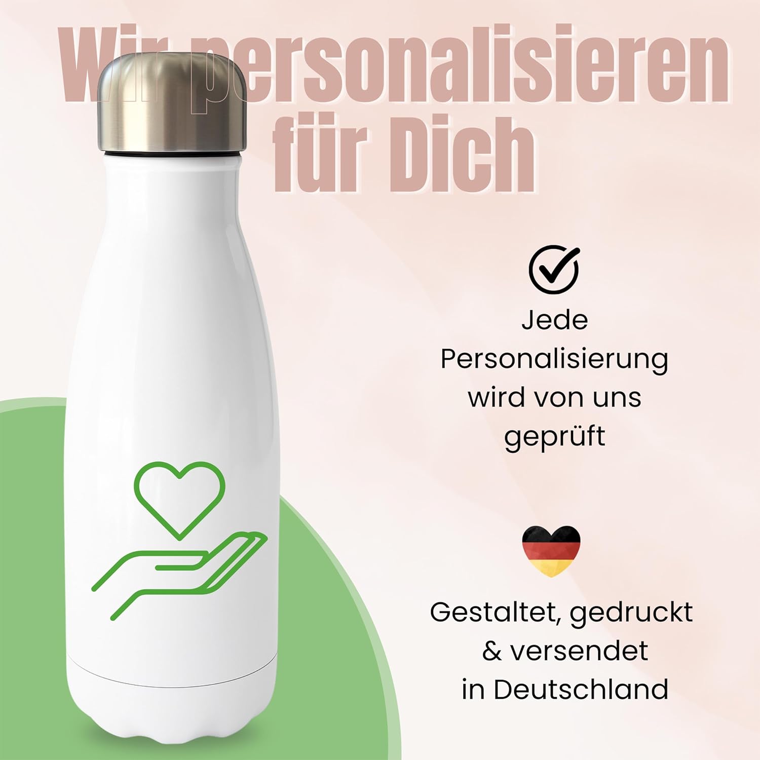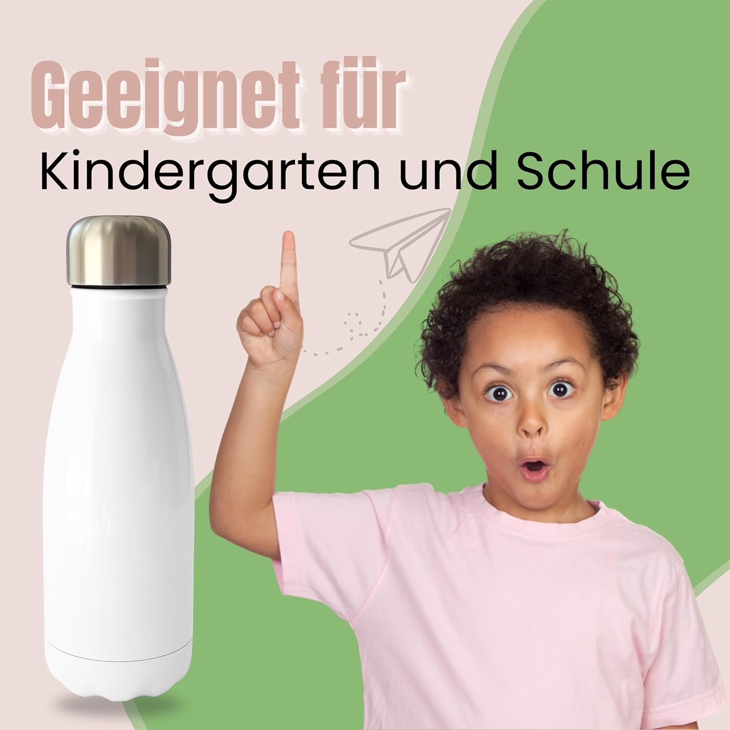 PERSONALIZZATO - Con simpatici motivi di animali e nomi desiderati, ognuno è unico PRATICO E MANEGGEVOLE - Capacità di 350 ml, perfetto per le manine dei bambini ISOLANTE - L'acciaio inossidabile a doppia parete mantiene le bevande calde o fredde per lungo tempo A PROVA DI PERDITE - Chiusura sicura, coperchio di ricambio disponibile separatamente VERSATILE - Adatto per acqua, acqua frizzante, succhi o cacao QUALITÀ - Progettato, stampato e spedito in Germania