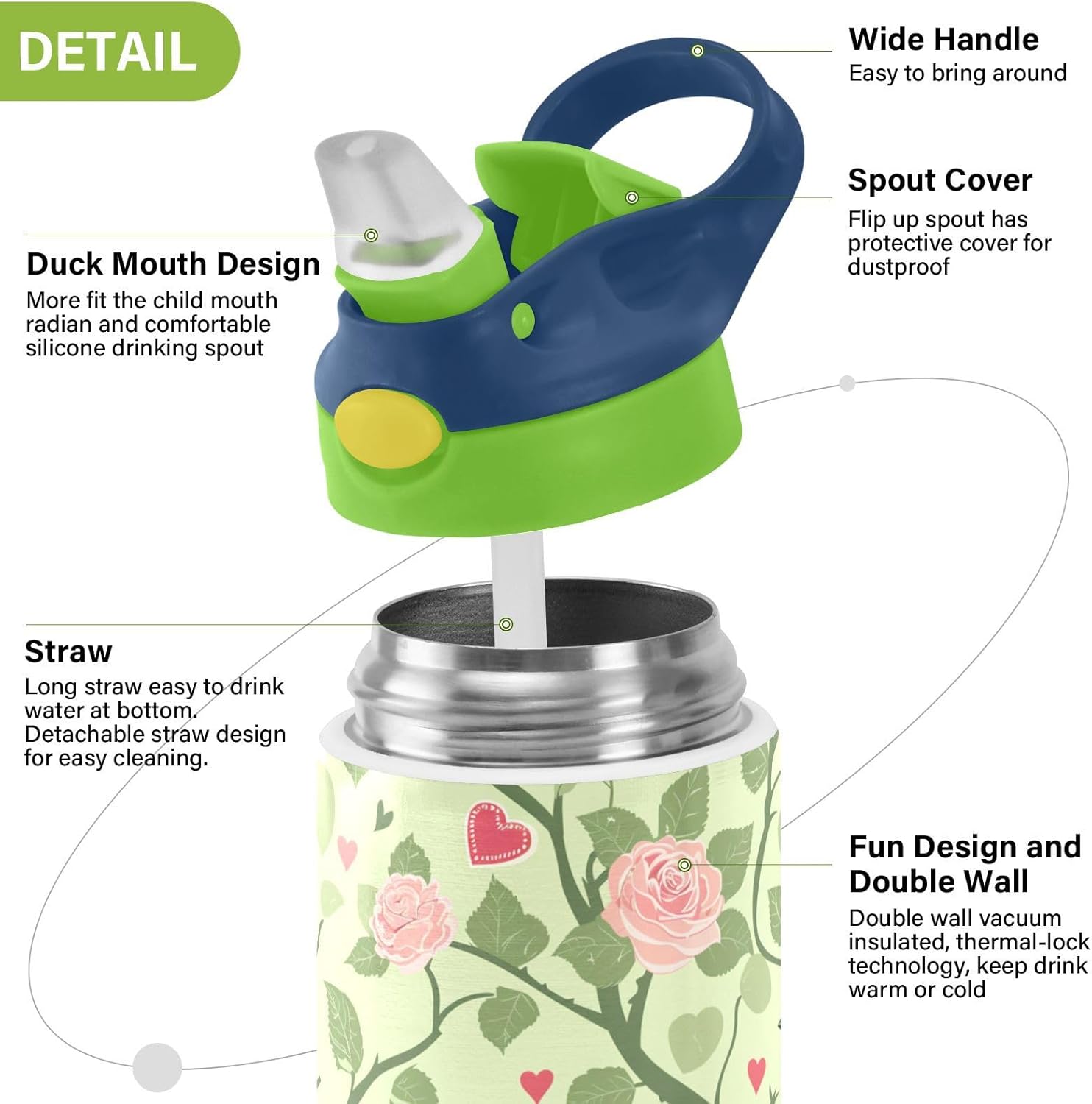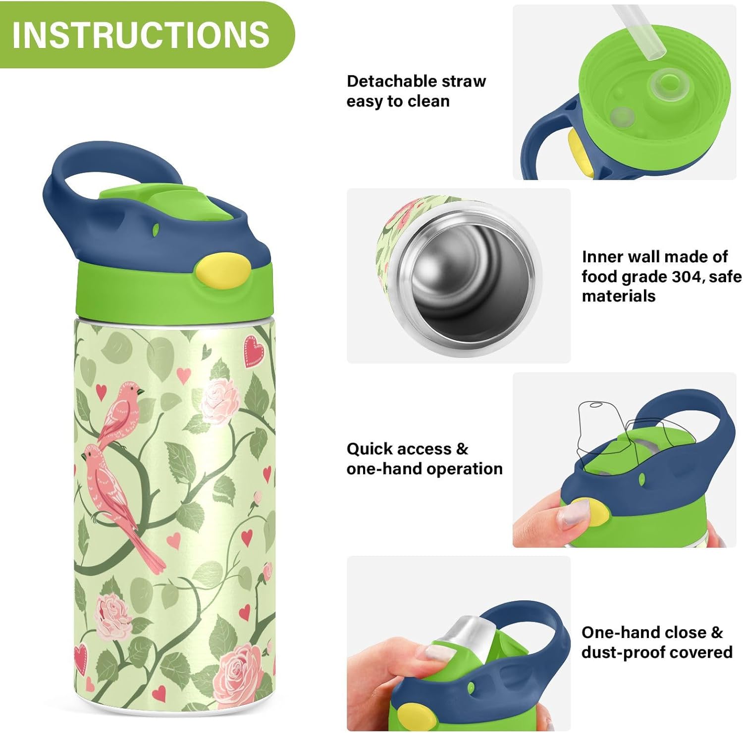 Materiale di sicurezza: il corpo in Tritan e il beccuccio in silicone alimentare garantiscono durata e sicurezza. Contiene 350 ml di acqua, perfetto per l'idratazione quotidiana. Non adatto a bambini di età inferiore ai 3 anni Comoda da trasportare: con un ampio manico per mani piccole e un gancio sul coperchio, la borraccia per bambini può essere appesa agli zaini. I bambini non faranno fatica a trasportarla durante le gite sul campo o le attività dopo la scuola. Funzionamento con una sola mano: il becco d'anatra si adatta alla bocca dei bambini, con una copertura antipolvere. L'interruttore a pulsante di Water Bottle Kids è semplice da usare con una sola mano, in modo che i bambini possano bere mentre tengono una palla o un notebook. Previene le perdite: il blocco a pulsante blocca l'apertura accidentale del becco d'anatra. Mantiene le bevande all'interno, proteggendo zaini e vestiti durante i pendolari o il gioco. Pulizia semplice: le parti completamente rimovibili evitano l'accumulo di sporco. Pulire con detergente neutro e acqua calda: facile per i genitori mantenere la borraccia pulita per l'uso quotidiano.