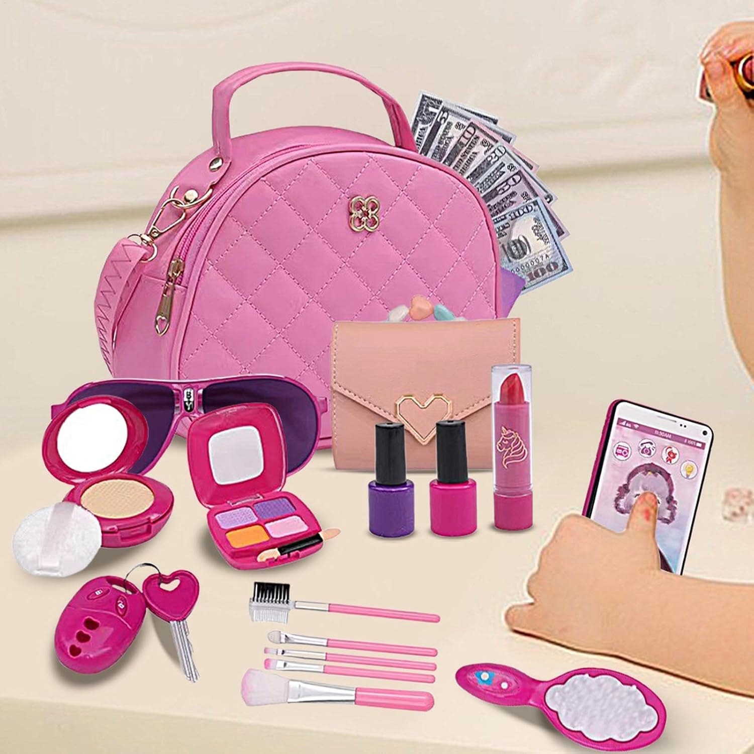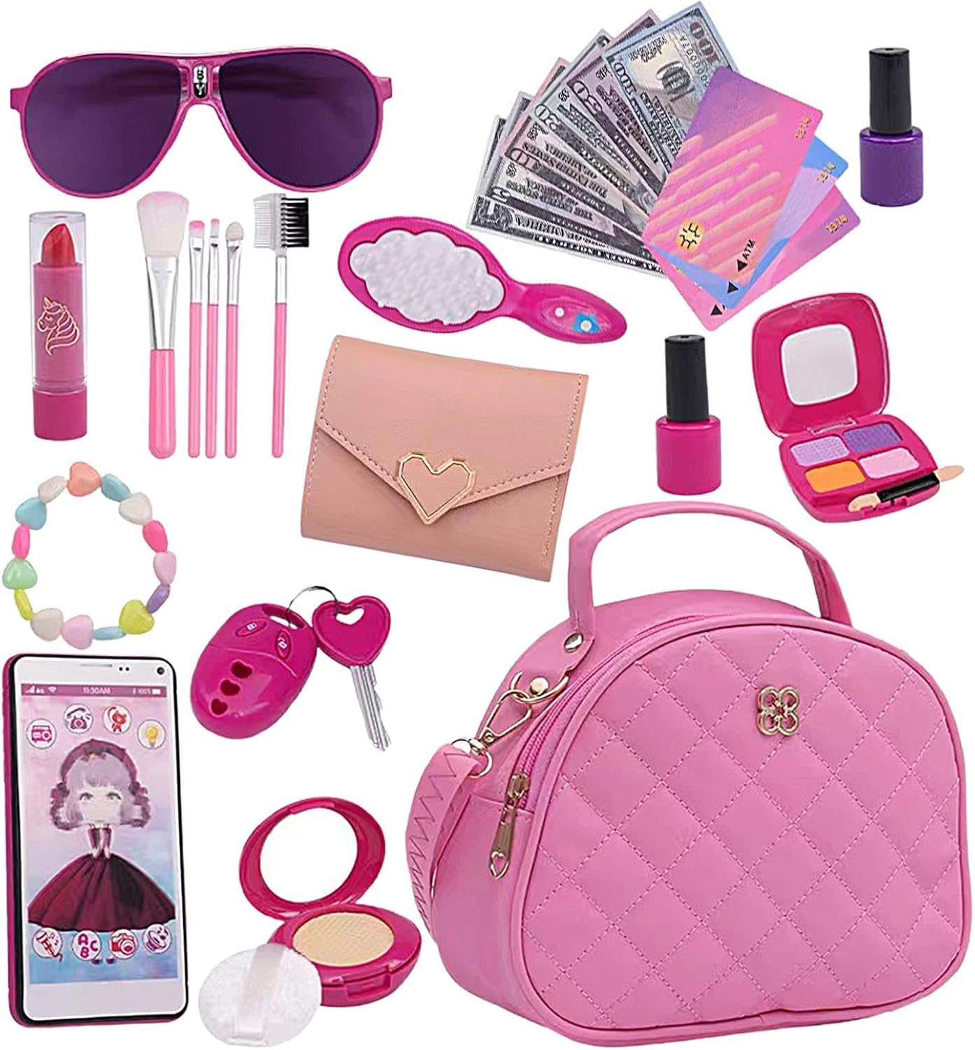Insieme Purse: Con la nostra Purse per bambine, il vostro bambino può acquisire abilità sociali e comunicative attraverso giochi di ruolo fantasiosi e imitando le attività di shopping della mamma. Materiali sicuri per la pelle: le ragazze fingono di giocare con una borsa che mostra un aspetto e una sensazione realistici, dotato di un cuscino d'aria e di rossetti lucidi, favorendo il gioco fantasioso Incoraggia il gioco di ruolo e migliora la creatività: goditi il tempo di gioco della tua bambina con il nostro Purse, dotato di suoni e luci del telefono realistici che incoraggiano il gioco di ruolo e la creatività, migliorando al contempo le abilità sociali. Lunga durata: con una tracolla morbida regolabile per un facile utilizzo, la nostra borsa per bambine è realizzata con materiali robusti e di qualità e progettata con una cerniera in metallo liscia. L'interno spazioso è perfetto per riporre gli accessori, rendendolo una scelta comoda e comoda per il tuo bambino Regalo imperdibile: stupisci per compleanni, Natale, Pasqua e anni con questa borsa da gioco divertente ed elegante per le bambine, adatta per i 3-8 anni, perfetta anche per altre occasioni speciali