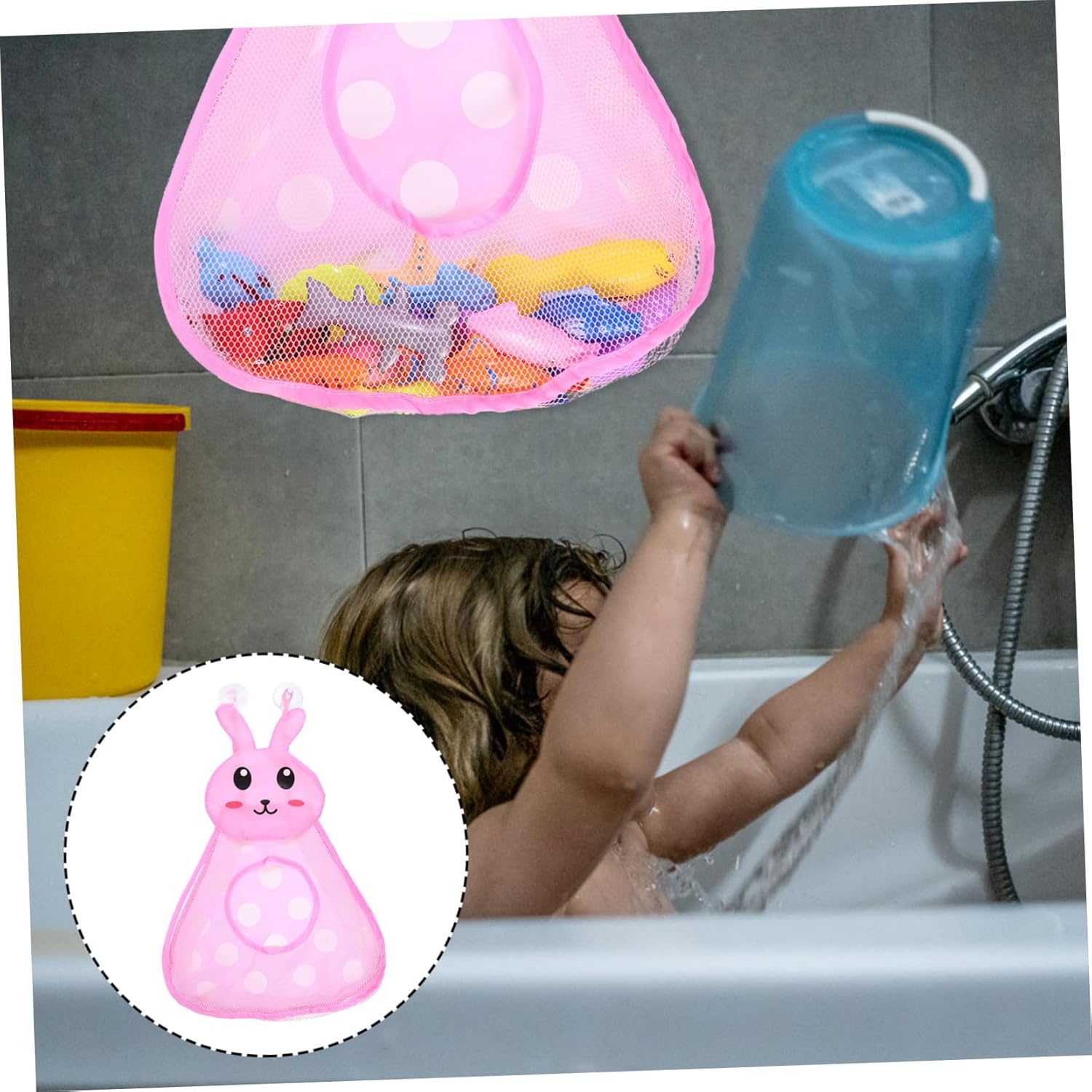 Contenitore per giocattoli da bagno: la nostra rete è l'organizzatore perfetto per i giocattoli da bagno poiché è appositamente distanziata in modo che l'aria possa fluire facilmente e l'acqua si scarichi rapidamente. Portagiocattoli da bagno Organizzatore da bagno: aiuta a scaricare completamente l'acqua, a differenza degli organizzatori in plastica, e le ventose sono molto resistenti, Portaoggetti da doccia Portagiocattoli da bagno: è giocattoli da bagno per bambini e può contenere anche sapone, shampoo, dentifricio e tutti gli altri essenziali, Borsa portaoggetti da bagno Borsa portaoggetti: sebbene abbia la forma di un cartone animato, è molto pratica quando la usi Usa una borsa per i giocattoli da bagno Borsa portagiochi da bagno: Ha un design semplice ma è molto pratica da usare. rendi il tuo bagno ordinato e pulito. borsa portaoggetti per il bagno