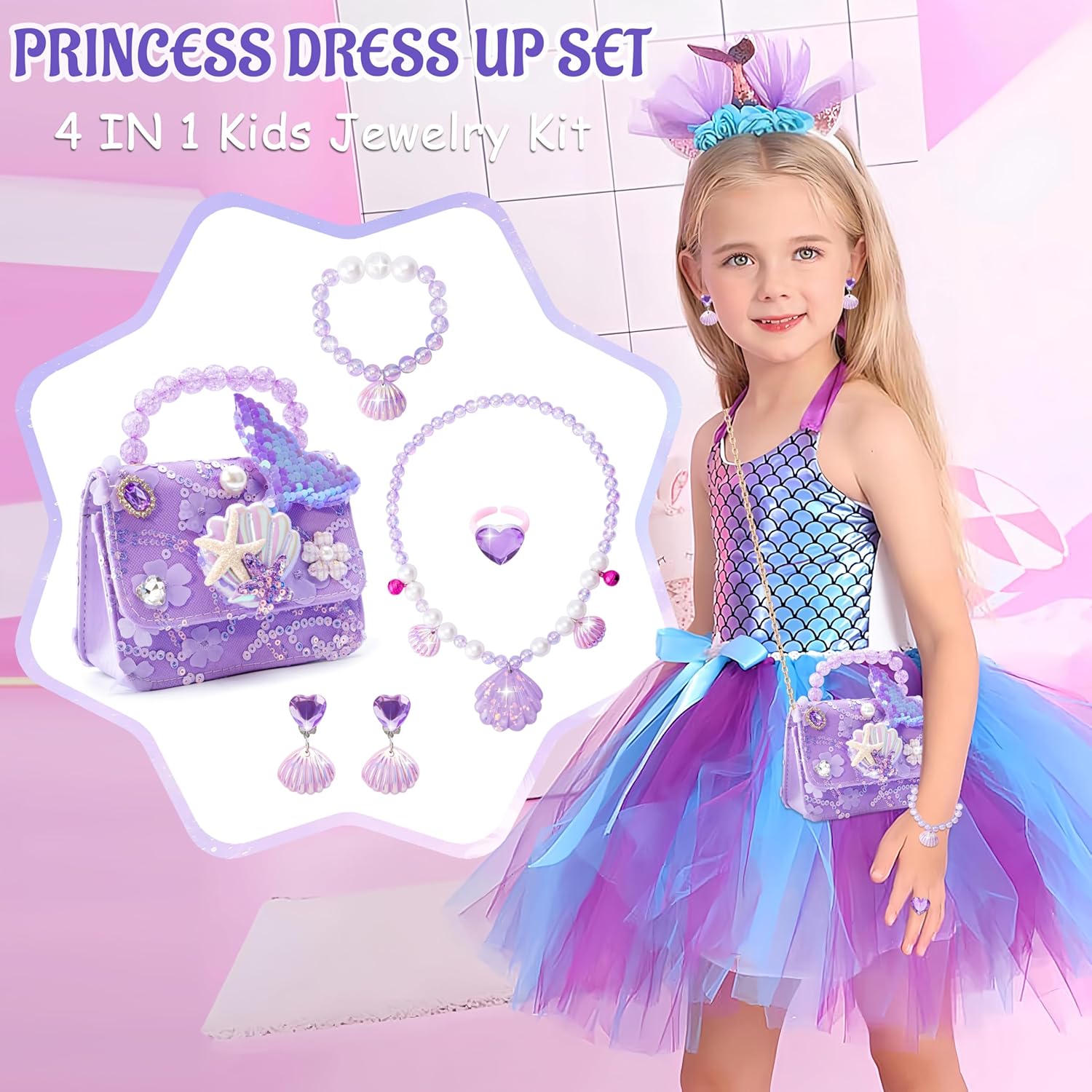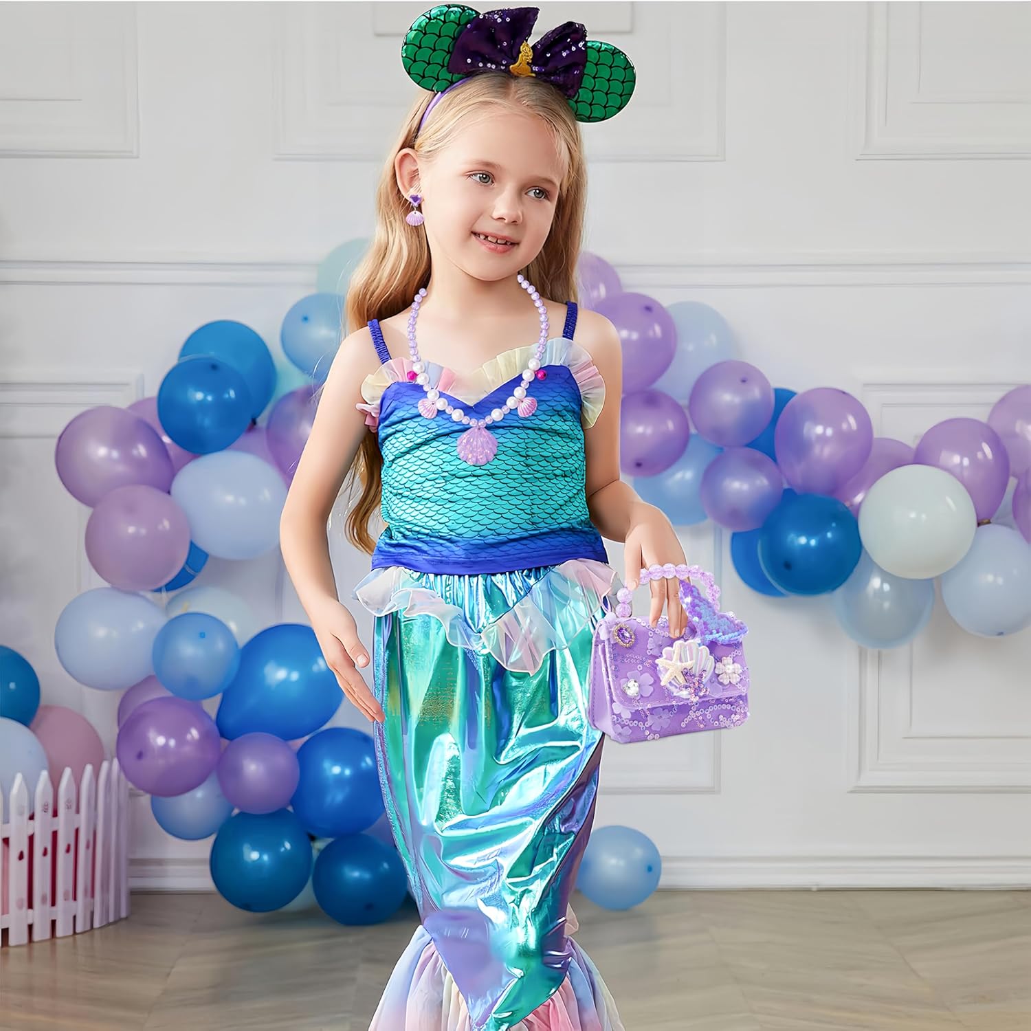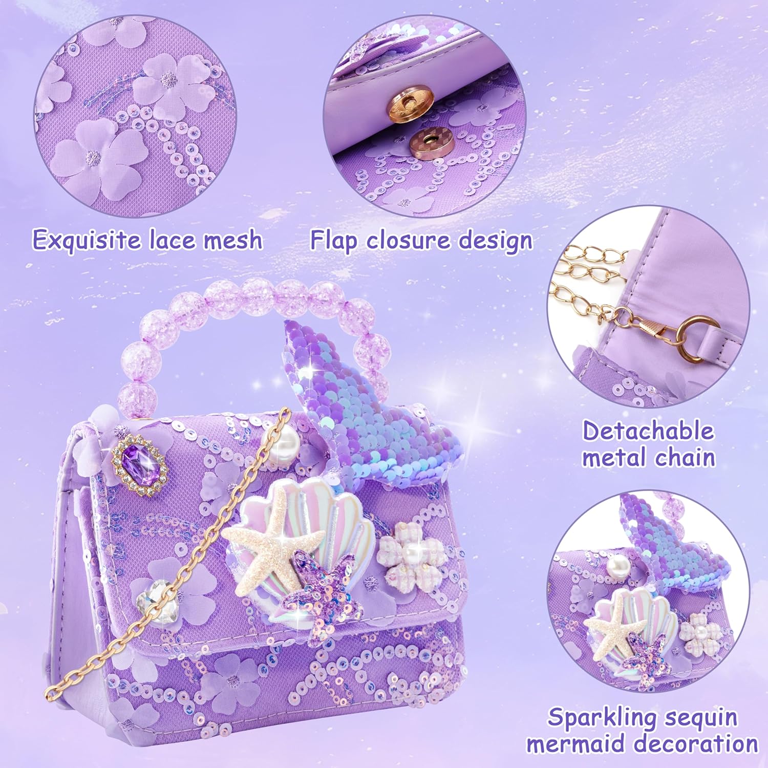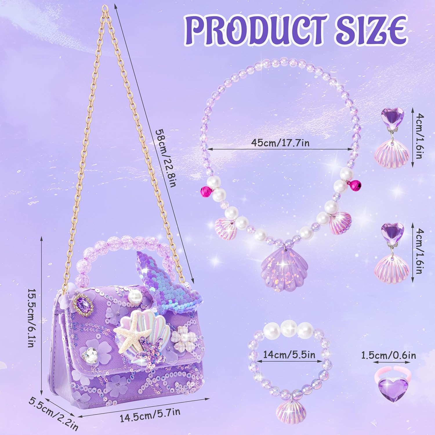 L'elegante borsa trasversale è scintillante e appariscente, rende la tua principessa più accattivante per strada. Funzionalità: - Questa graziosa borsa per bambini è realizzata in tessuto in pizzo morbido di alta qualità, pelle PU con un pulsante magnetico, che rende facile aprire e chiudere i bambini. - The Girls Borse for Kids Età 2-6 Misure 14.3x10x5,3 cm/ 5.63x3.93x2.08 pollice. È leggero e non ingombrante, ma abbastanza spazioso per le tue cose di base come, chiavi, monete e caramelle, occhiali da sole, piccoli giocattoli o altri tesori speciali. - Una deliziosa coda sirena sulla parte anteriore di questa piccola borsa a tracolla, con un po 'di paillettes glitter, un finto diamanti, fiori e un'elegante maniglia viola, che è così dolce da indossare per lo shopping, la festa o l'uso quotidiano. - Questa borsa da gioco per bambine è dotata di una robusta cinghia di catena di metallo, che puoi appenderla alla fibbia interna come una borsa a tracolla o rimuovere la cinghia a catena per renderlo una borsa. La tua dolcezza si distinguerà dalla folla quando la indossa. - Questo portafoglio per bambini è un regalo perfetto per la persona amata perché lo adorerà tanto quanto te! È una buona scelta come regalo per il compleanno, il Ringraziamento, Halloween, Natale e altri festival speciali. Il pacchetto include: 1 x Collana sirena 1 x braccialetto di perline 1 x Paia di falso Shell orecchini 1 x anello a forma di cuore 1 x Borsa della sirena per le bambine Suggerimenti caldi: 1) Misurazione manuale, la dimensione è leggermente inaccurata. 2) I colori possono essere leggermente diversi a causa dei diversi display dello schermo. 3) Contiene piccoli articoli, c'è un rischio di soffocamento, prenditi cura dei tuoi figli.