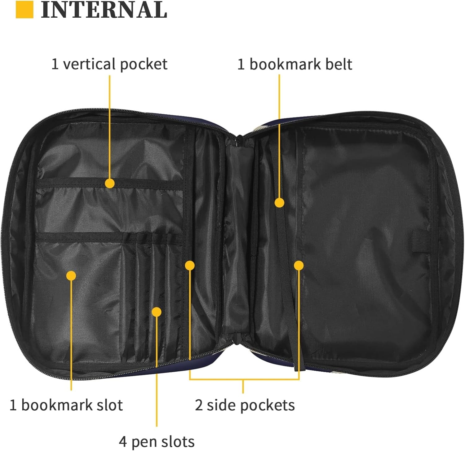 ★Materiale: è realizzato in tessuto di poliestere di alta qualità, resistente e robusto, leggero e lavabile. Non è una copertura rigida, molto flessibile da usare. ★Dimensioni: 28 x 6 x 22 cm, perfetta per la maggior parte delle Bibbie (grandi, standard) o libri. ★ Caratteristiche: questa elegante copertina biblica è ideale per proteggere la Bibbia o il libro da graffi tutto il tempo. La tasca posteriore con cerniera può contenere un piccolo blocco note, penna, telefono cellulare o alcune piccole cose. Le tasche interne possono contenere penna, evidenziatore, segnalibri, biglietti di preghiera e quaderni, ecc. Viene fornito con 1 cintura segnalibro e la maniglia su questo rende così portatile per portarlo in chiese, scuole, biblioteche. stanze di studio, viaggio,, in qualsiasi momento per il tuo studio biblico. ★ Multifunzionale e alla moda: design pratico che non solo da utilizzare come custodia della Bibbia, ma anche come borsa per cosmetici da viaggio, borsa per notebook, ecc. Stampa carina e alla moda ti porterà più felice. Vari colori e stampe tra cui scegliere, come girasole, cavallo, stampa animale, galassia, frutta, tartaruga, fiori vintage, bandiera americana, ecc. ★ Bel regalo: questa borsa per libri da trasporto è un regalo perfetto per familiari, amici, amanti per feste cristiane, giorno del Ringraziamento, Natale o altre feste.