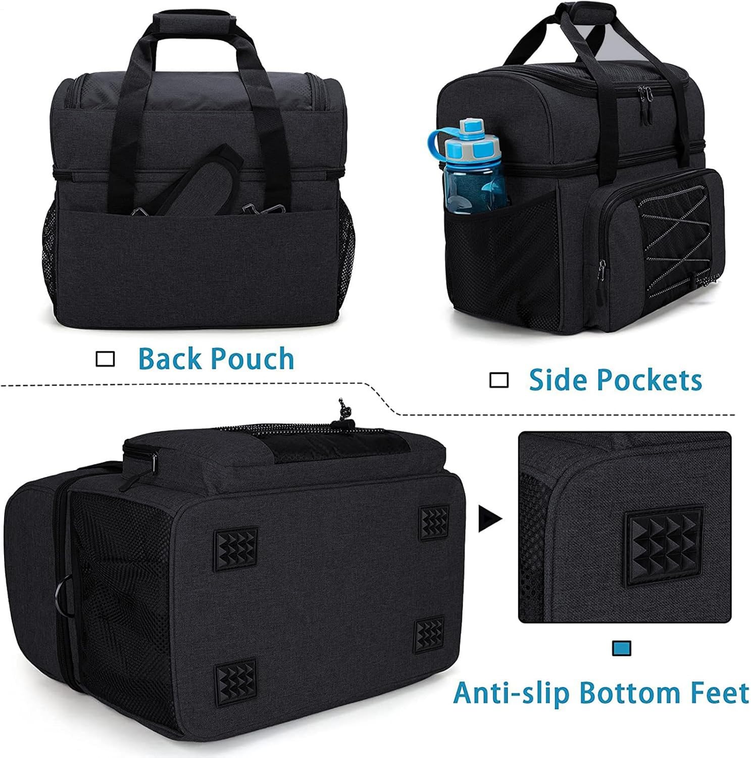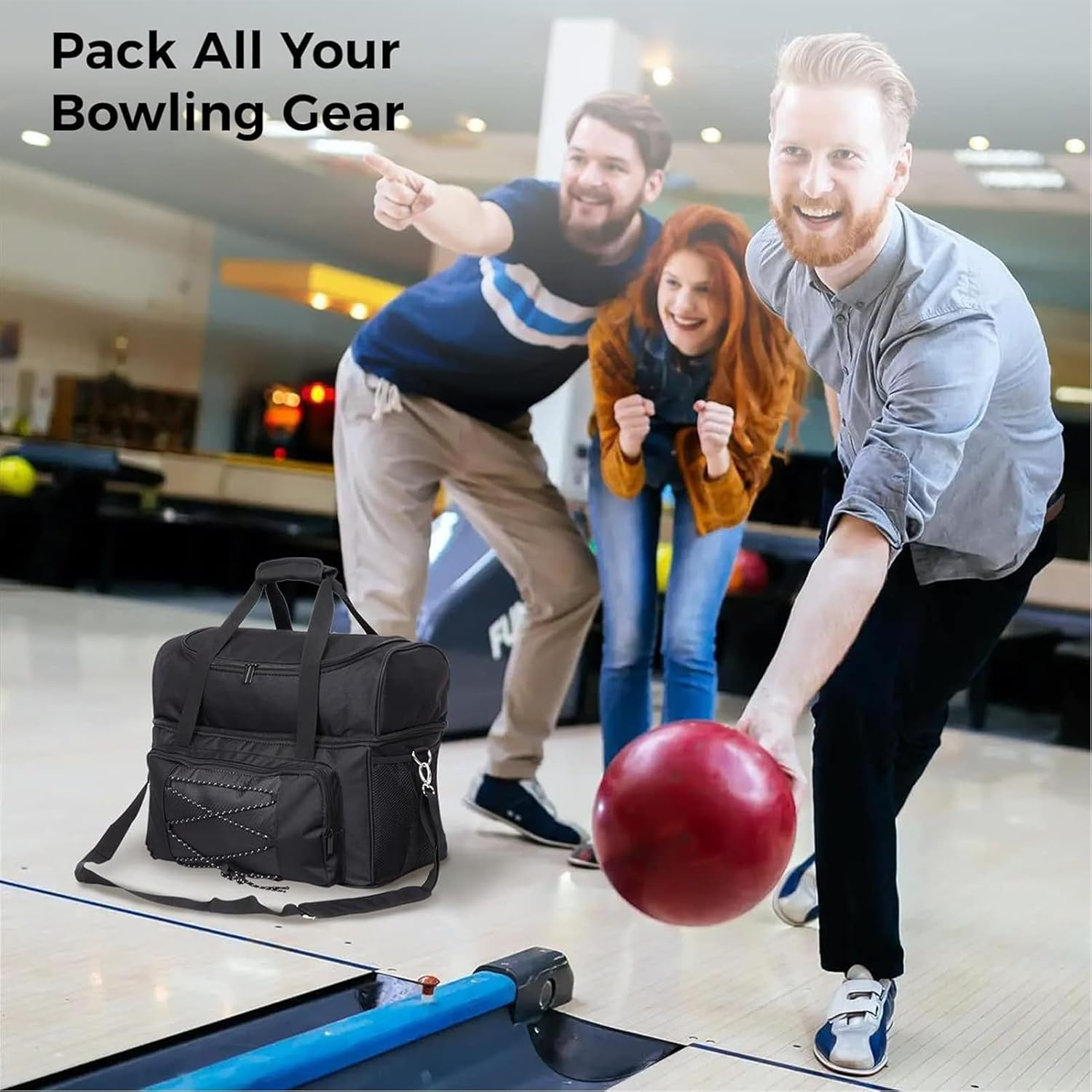 Stoccaggio di protezione sicuro: questa borsa da bowling protegge la palla da danni o cuscinetti, contiene 2 palline da bowling e viene fornita con una griglia a sfere e separatori imbottiti. Pratica e versatile: Avere una griglia di scarpe in grado di montare scarpe da bowling di taglia 16 da uomo, questa borsa tote vanta un layout tascabile intelligente, che facilita la conservazione della cella, portafoglio, chiavi, bottiglia d'acqua, asciugamano, occhiali da sole e molto altro ancora. Forza eccezionale: utilizzando materiali in tessuto e poliestere e lavorazione fine, questa borsa tote offre una resistenza e un'affidabilità senza pari che durano nel tempo. Esperienza di trasporto migliorata: Migliora il tuo gioco con la nostra borsa da bowling che riduce la pressione delle spalle e mantiene la stabilità. Include una tracolla regolabile, una maniglia ammortizzata e 4 piedini antiscivolo per comodità e protezione alla tua palla da bowling. Regalo perfetto: regalate lo stile e la funzionalità con questa borsa tote bag. Sia per principianti che per professionisti, il suo design semplice ed elegante è adatto a qualsiasi occasione e abbigliamento.