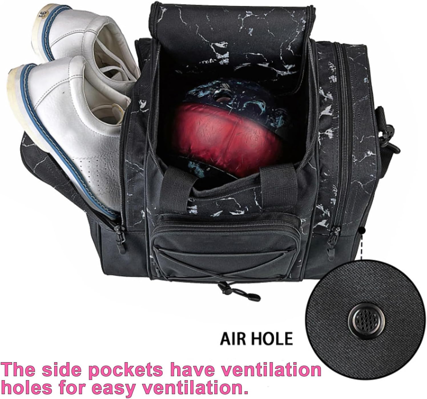 Durata: puoi vedere la nostra borsa a sfera da bowling per resistere a un uso frequente grazie al suo materiale di alta qualità. Con una capacità sicura a una palla e due tasche laterali con fori di ventilazione per la prevenzione degli odori, questa borsa ha anche uno scomparto per un accesso rapido come portafoglio e chiavi. Borsa imbottita: cuscini e protegge la palla da bowling da graffi e impatti, con un ampio scomparto che include un portapalloncino imbottito e una chiusura a cerniera. Design ergonomico: la nostra borsa a sfera da bowling ha una cinghia e una cintura regolabili per ridurre la tensione delle spalle e garantire una vestibilità comoda durante il gioco. Realizzato in modo esperto: la nostra borsa da bowling è realizzata in poliestere di alta qualità che resiste all'usura. La robusta maniglia e la cerniera liscia facilitano il trasporto, mentre una gamma di design e colori unici ti consente di mostrare la tua personalità. Scelta dei regali: eleva il tuo set di regali con questa robusta borsa da palla. È il regalo di Pasqua perfetto per principianti e giocatori di bowling professionisti, adatto a varie occasioni e stili, tra cui compleanni, giochi casual e competizioni.