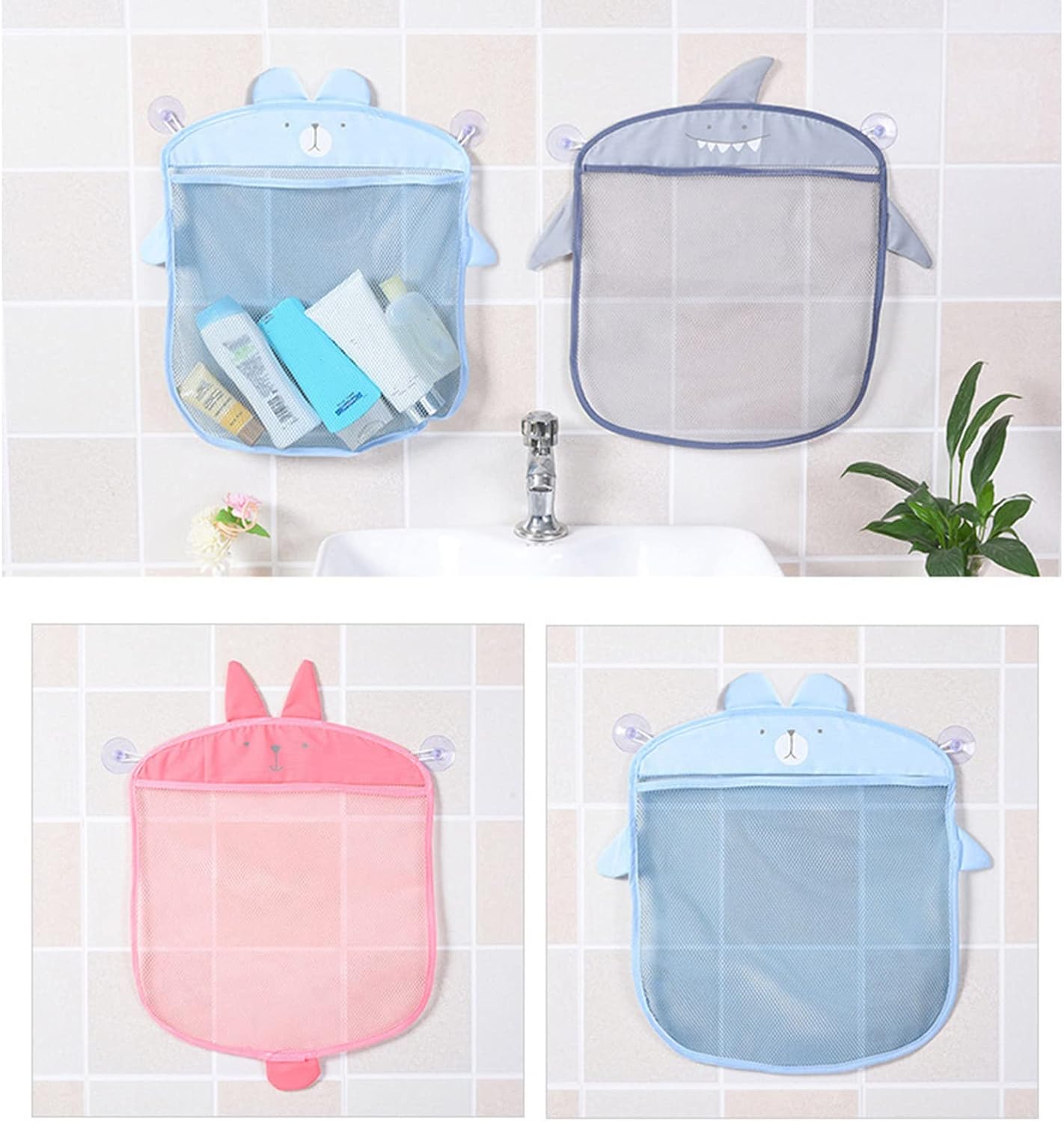 Si attacca al lato della vasca da bagno o piastrelle lisce con ventose Aiuta a insegnare ai bambini a riordinare Un negozio di giocattoli e divertimento per il bagno Lavabile e facile da applicare Bella e pratica borsa portaoggetti a rete per giocattoli