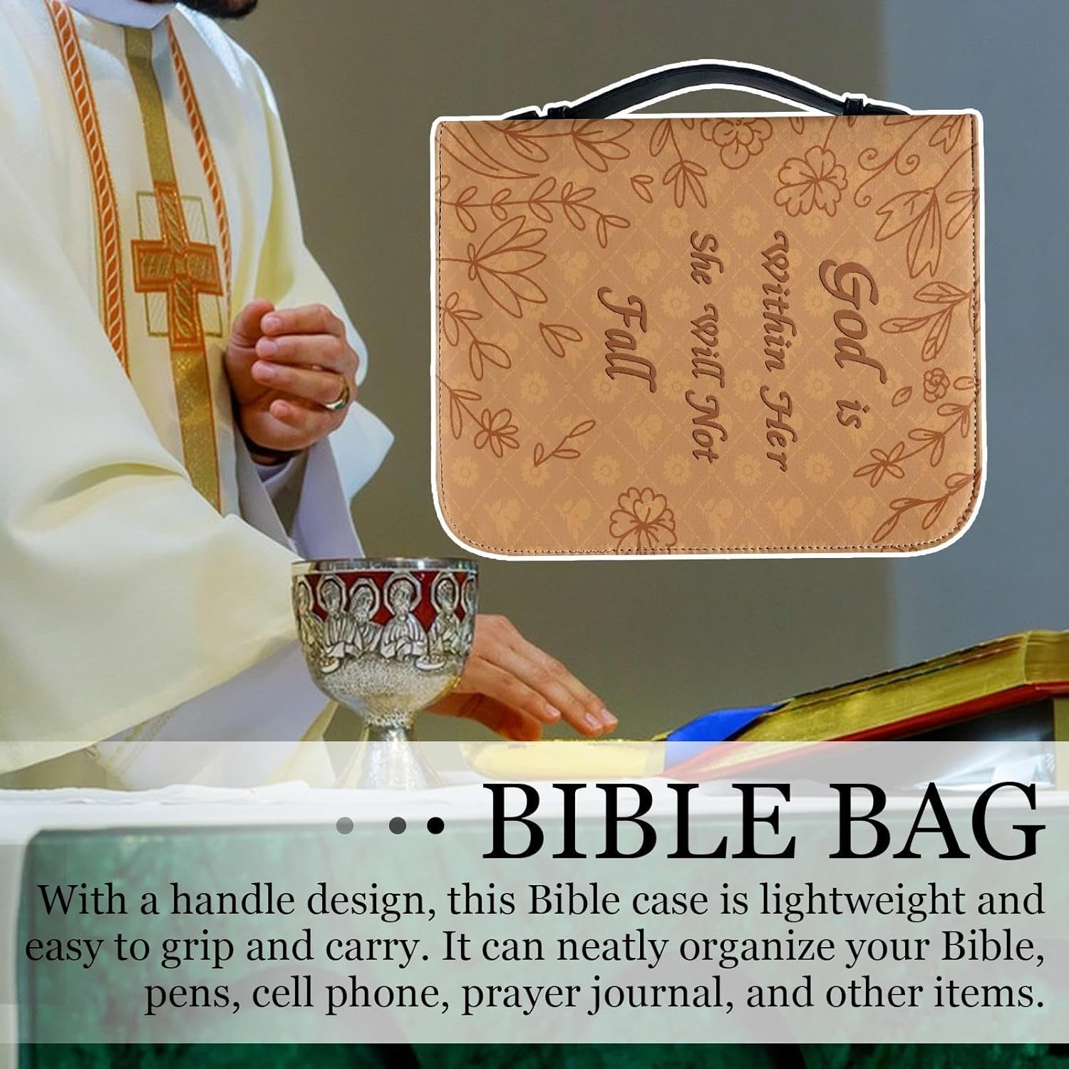 Protezione solida: questa copertina del libro è realizzata in PU sostenibile, che garantisce una resistenza all'usura affidabile e duratura. Resisterà all'usura quotidiana mantenendo i tuoi libri al sicuro. Librer: Proteggi l'usura dall'usura con questa copertina a libro in PU che è durevole, impermeabile e facile da pulire. Mantieni la tua collezione intatta e protetta per gli anni a venire. Efficace e pratico: la nostra copertina per libro in PU include un supporto interno per porta per mantenere la penna o evidenziare in tutta sicurezza. Ha anche diversi scomparti e tasche per riporre piccoli oggetti, come carte, note o segnalibri. Pulizia dello sforzo: con una semplice pulizia con un panno umido, la manutenzione dell'elegante superficie e resistente alle macchie e ai graffi di questa copertina del libro in PU viene eseguita senza sforzo. Funzione adatta per viaggiare: questa copertina in PU facilita il trasporto dei tuoi libri o quaderni preferiti quando sei in viaggio. La pratica maniglia per il trasporto rimane comodamente in mano, rendendolo perfetto per la chiesa o lo studio biblico.