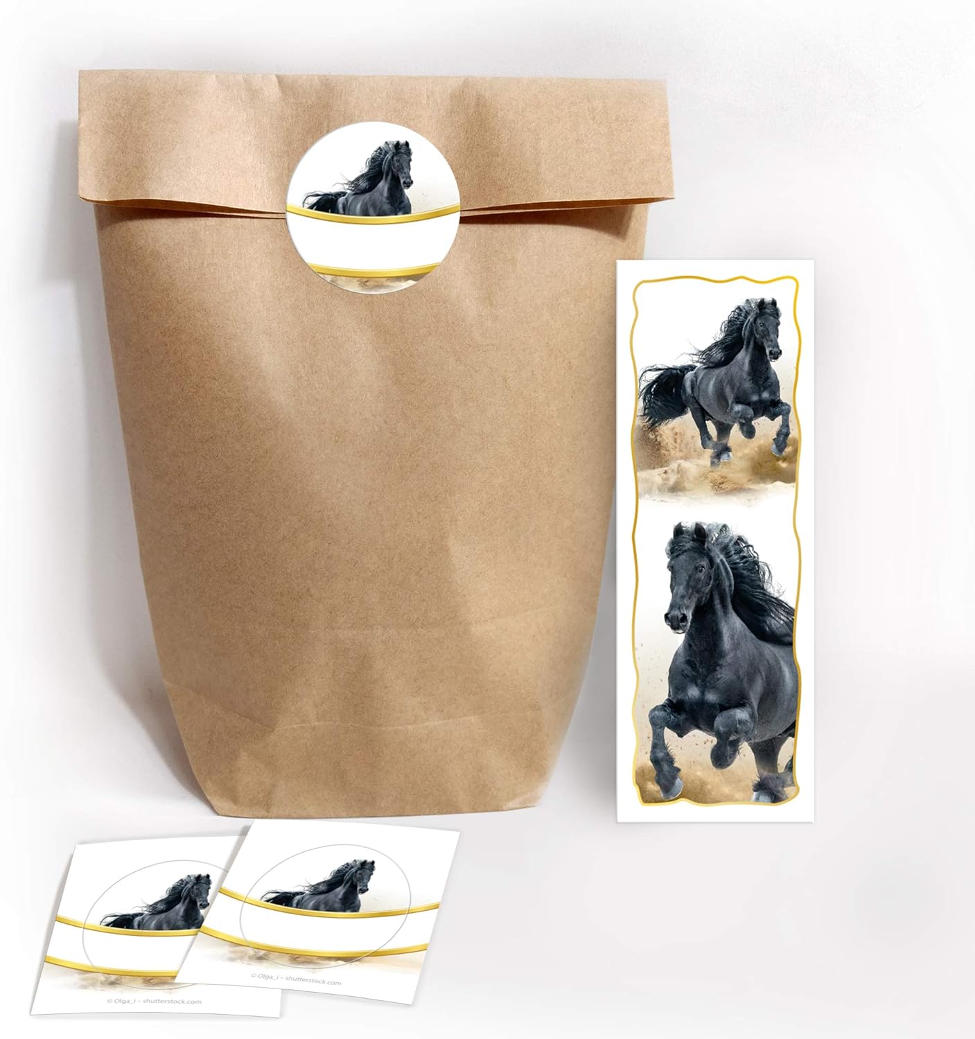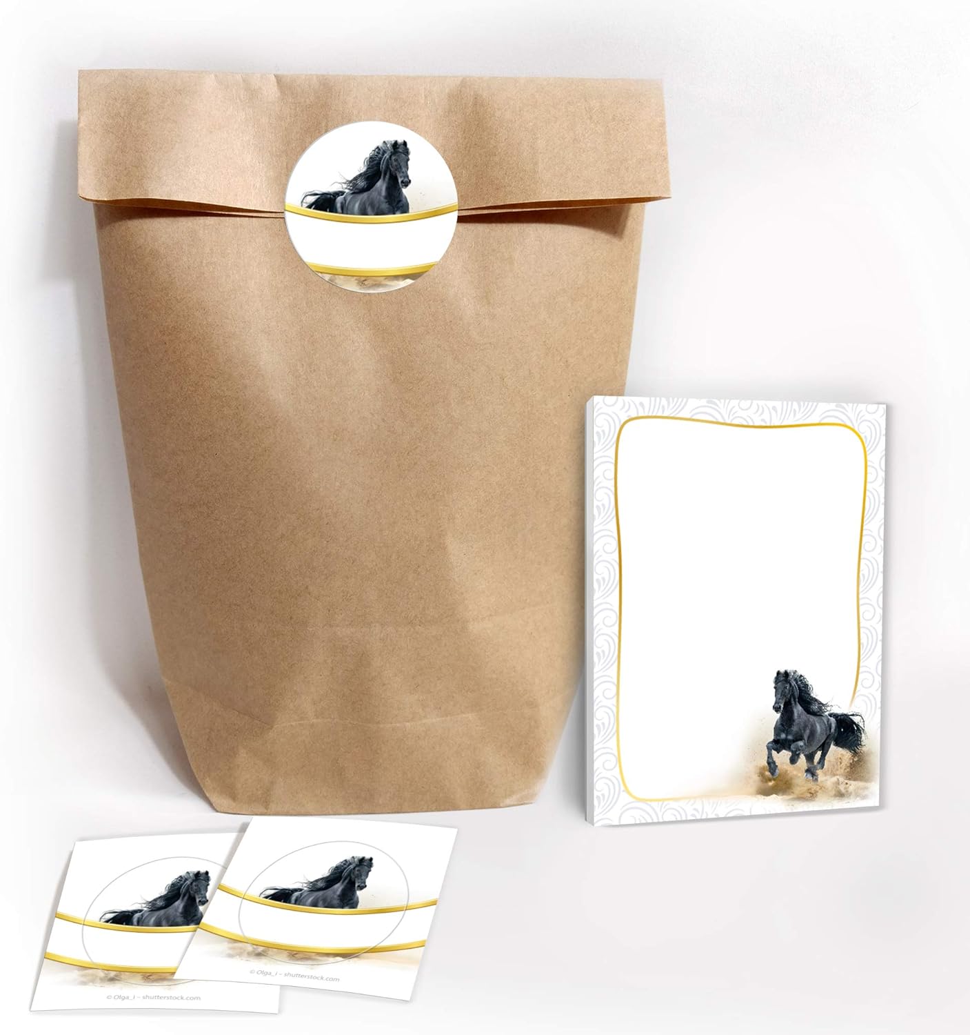 Set di 12 sacchetti, 12 adesivi, 12 mini block notes e 12 segnalibri con il motivo del cavallo. Gli adesivi misurano 4 cm/rotondi e sono pretagliati sul materiale di supporto. Sull'adesivo puoi scrivere il nome dell'ospite o del giocatore o, ad esempio, "Grazie". I sacchetti per feste hanno una dimensione di 14 x 22 x 5 cm. Il segnalibro ha una dimensione di 5,2 x 14,80 cm. Il segnalibro ha una stampa di immagini da 300 g/m ed è rivestito con vernice UV (lucida) su entrambi i lati. Il blocco note ha una dimensione di 7,4 x 10,5 cm (DIN A7) e contiene 25 fogli. La parte anteriore è stampata, la parte posteriore non è stampata. I blocchi sono rilegati con colla (in alto) e non hanno la copertina. Il set è molto adatto come regalo per compleanni, matrimoni, battesimi o altre celebrazioni dei bambini.