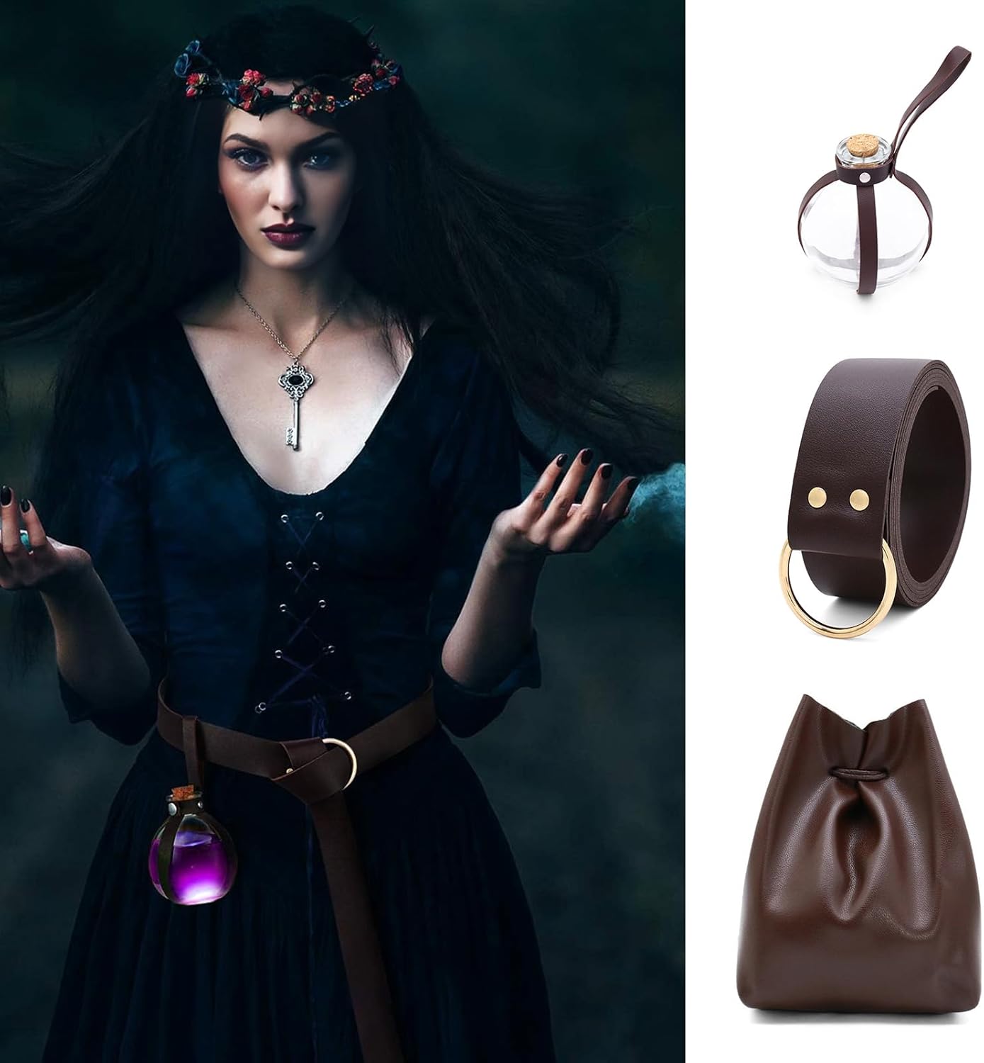 Entra nel mondo del mistero medievale con i nostri marsupi medievali in pelle, con bottiglia di pozione in sughero, borsa portaoggetti in vita, accessorio essenziale per costume medievale di Halloween. Questo accessorio cosplay medievale è ideale per adulti, uomini, donne e fan della rievocazione storica. Regalo di festa per amici e appassionati di cosplay per Halloween, Ringraziamento, Natale. Realizzato in pelle PU, squisito fatto a mano, sicuro, non sbiadisce facilmente, squisita fattura. Aggiungi un tocco di misterioso al tuo costume medievale di Halloween o abiti da mago. Ampiamente usato per Halloween, eventi a tema fantasy, feste cosplay, feste a tema medievale, giochi di ruolo dal vivo, spettacoli teatrali, discoteche o per l'uso quotidiano. Migliora il tuo gioco di ruolo con questi accessori cosplay medievali, assicurandoti di essere completamente immerso nel tuo mondo dei personaggi mantenendo l'essenziale a portata di mano.