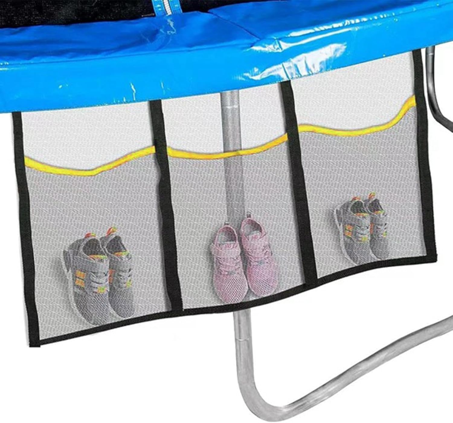 Protezione resistente alle intemperie: questa borsa per scarpe per trampolino è realizzata in materiale polietilene resistente ai raggi UV, resistente al vento e alle intemperie del sole e può mantenere le scarpe pulite e asciutte. Ricerca migliorata: la borsa per scarpe trampolino offre un facile accesso ai tuoi effetti personali grazie alla sua chiara rete trasparente. Trova rapidamente le tue scarpe e rimani organizzato. Organizzazione sicura: tieni le scarpe e le borse in posizione mentre ti piace il trampolino. Con sei cinghie di fissaggio simple-aptach e facile installazione, non dovrai più preoccuparti dello spazio di salto disordinato. Organizzazione migliorata: con un sistema di stoccaggio a 3 tasche, la nostra borsa per scarpe trampolino offre spazio sufficiente per scarpe, giocattoli, palle e altro, mantenendo l'area del trampolino ordinata e ordinata. Crea un ambiente spazioso e senza ingombri! Multifunzione: dalla comodità di una forte compatibilità con questa borsa per scarponi per trampolino che si adatta a diverse applicazioni. Usalo per attrezzature da campeggio, ripostiglio per piscine, decorazioni da parete e altro ancora.