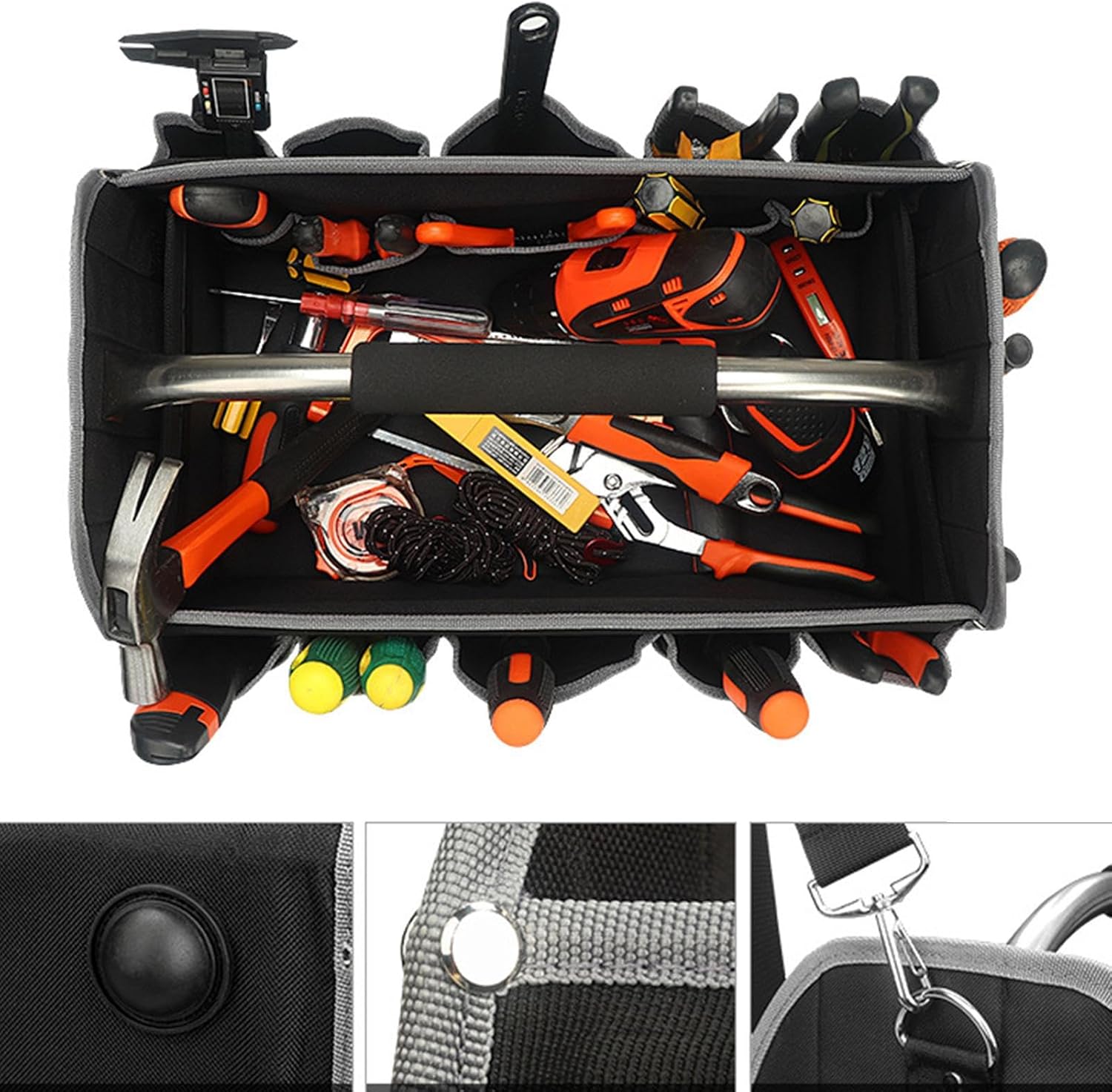 【Base resistente all'usura e impermeabile】 La base modellata rigida e impermeabile mantiene le borse degli attrezzi aperte pulite e asciutte e protegge gli strumenti nella borsa da cadute violente. Robusta maniglia imbottita in schiuma: robusta maniglia imbottita in schiuma, l'organizer per borsa degli attrezzi ha un design pieghevole per riporlo facilmente e sono presenti divisori sulla base interna e sul lato per migliorare la durezza complessiva della borsa degli attrezzi. Facile accesso: grazie al design aperto della borsa degli attrezzi portatile, puoi accedere rapidamente e facilmente agli strumenti di cui hai bisogno nella borsa senza più scavare nella borsa. Ampiamente utilizzata: la borsa portautensili è perfetta per artigiani, tecnici, idraulici e meccanici ed è adatta per gli utensili manuali di base 'elettricista come cacciaviti, chiavi a , spelafili, pinze, coltelli laterali, lime e altro. 【Super materiale】 La borsa degli attrezzi a bocca larga è realizzata in tessuto oxford impermeabile, che offre durata e affidabilità senza pari. C'è anche un tessuto a doppio strato finemente cucito ovunque, che rende la borsa estremamente resistente e duratura.