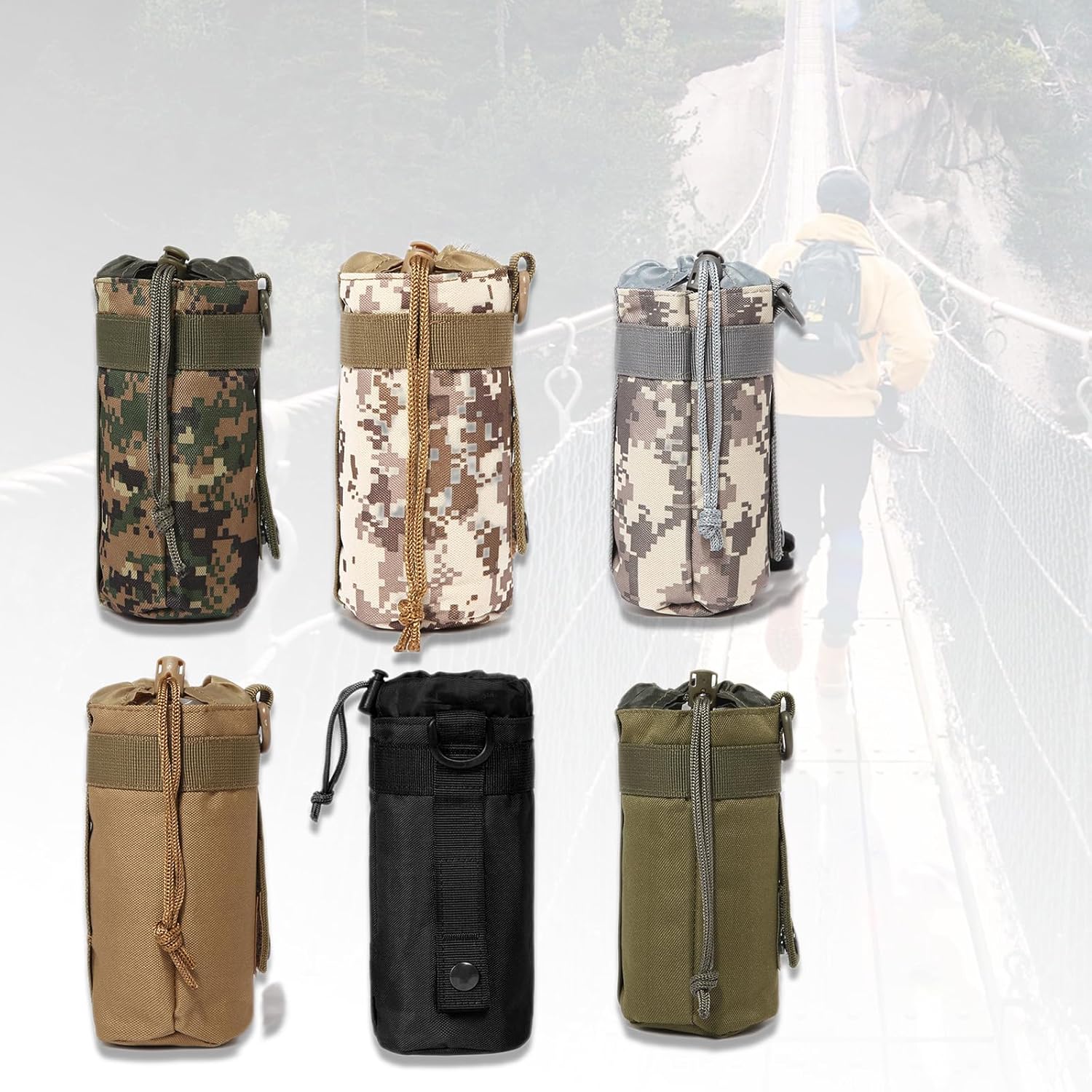 Queste borse portaoggetti sono leggere e portatili, adatte per campeggio, escursioni, attività all'aperto, escursioni e pesca. La borsa per bottiglia d'acqua è dotata di elastici, è adatta per la maggior parte delle bottiglie d'acqua e può essere regolata in base alle dimensioni delle bottiglie d'acqua. Realizzato in tessuto Oxford resistente all'usura, può proteggere la sicurezza di dispositivi e oggetti esterni. può essere attaccato ulteriore tasca esterna zaini tattici, cinture e altre attrezzature tattiche. Adatto per il trasporto di bollitori, bottiglie d'acqua e altri oggetti per soddisfare le diverse esigenze delle attività all'aperto. Comodo da indossare.