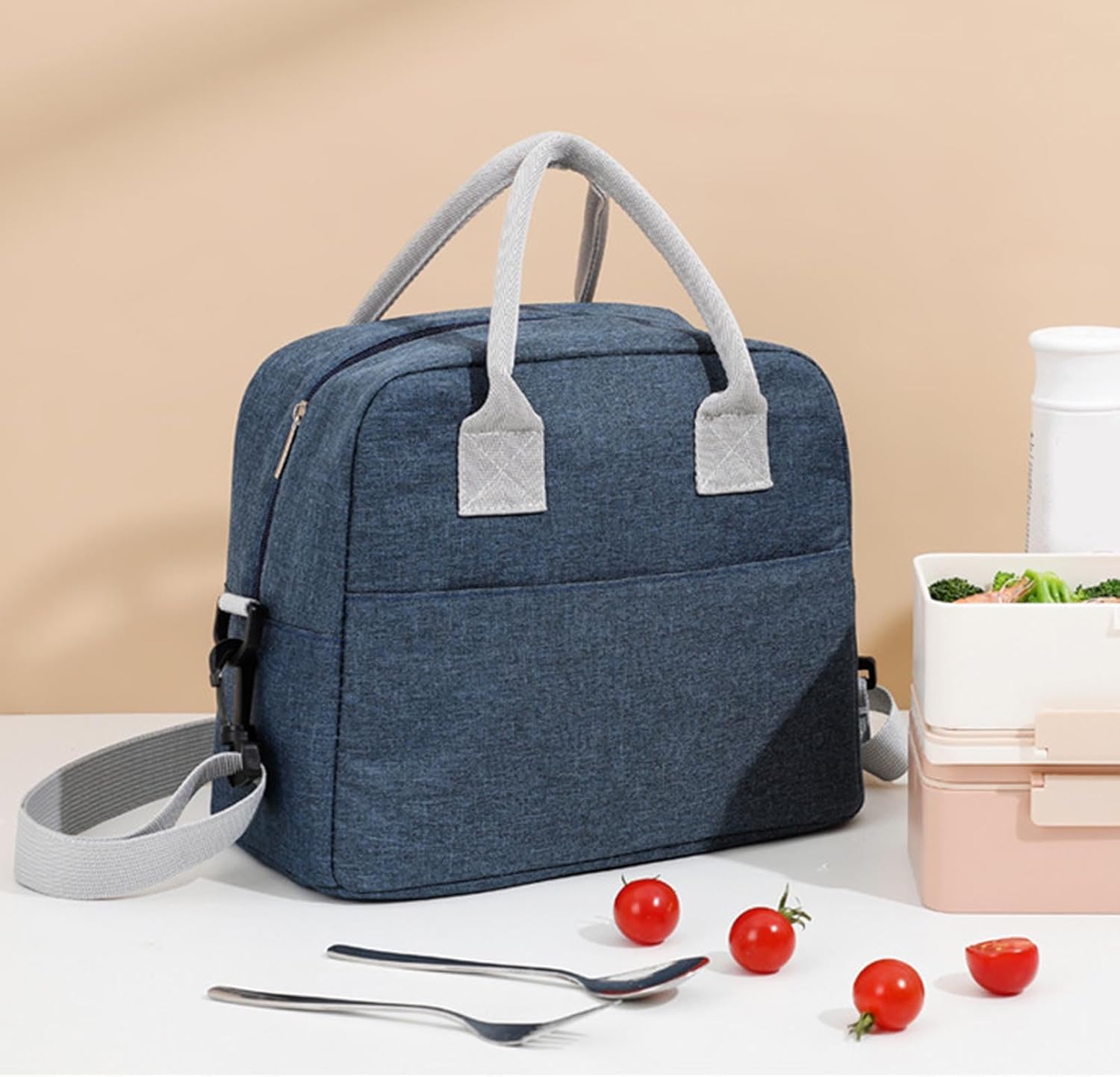 [Spazio generoso e business intelligente] Progettata con ampio spazio per più contenitori per alimenti, questa spaziosa borsa per il pranzo mantiene i tuoi pasti ben organizzati. Lo scomparto intelligente impedisce la mescolanza degli alimenti, mentre le scatole possono contenere snack e bevande di dimensioni standard, per appetiti e pasti abbondanti. [Costruzione in tessuto 300D premium] La nostra borsa per il pranzo è realizzata in tessuto cationico 300D di alta qualità e resiste all'usura quotidiana con proprietà superiori di resistenza alle pieghe e allo sbiadimento. Le cuciture rinforzate e la fodera impermeabile creano una protezione duratura in grado di resistere agli spostamenti quotidiani mantenendo un aspetto professionale. [Portabilità senza sforzo] Con soli 6,35 once e comode cinghie per il trasporto, questa borsa per il pranzo ultraleggera passa senza problemi dall'ufficio all'esterno. Il design compatto ma spazioso si adatta agli zaini o sotto i sedili dell'auto mentre sta in piedi sulle scrivanie durante le pause pranzo. [Tecnologia Secure Zipper] Dotata del nostro sistema di cerniera premium a scorrimento fluido che non si spezza mai con marmellate o marmellate, questa borsa per il pranzo offre una protezione affidabile per il tuo cibo. La cerniera con doppia cucitura crea una chiusura ermetica per mantenere la freschezza consentendo un rapido accesso a uno scambio quando sei in movimento. [Uso versatile oltre la sua funzione primaria attraverso l'intera borsa multiuso per soddisfare le diverse esigenze. Usalo come borsa termica per la spesa, organizer per gli oggetti essenziali da viaggio o anche come mini frigorifero per i farmaci. L'elegante design minimalista funziona altrettanto bene in ambienti professionali e avventure del fine settimana.