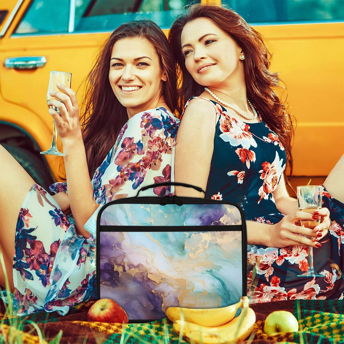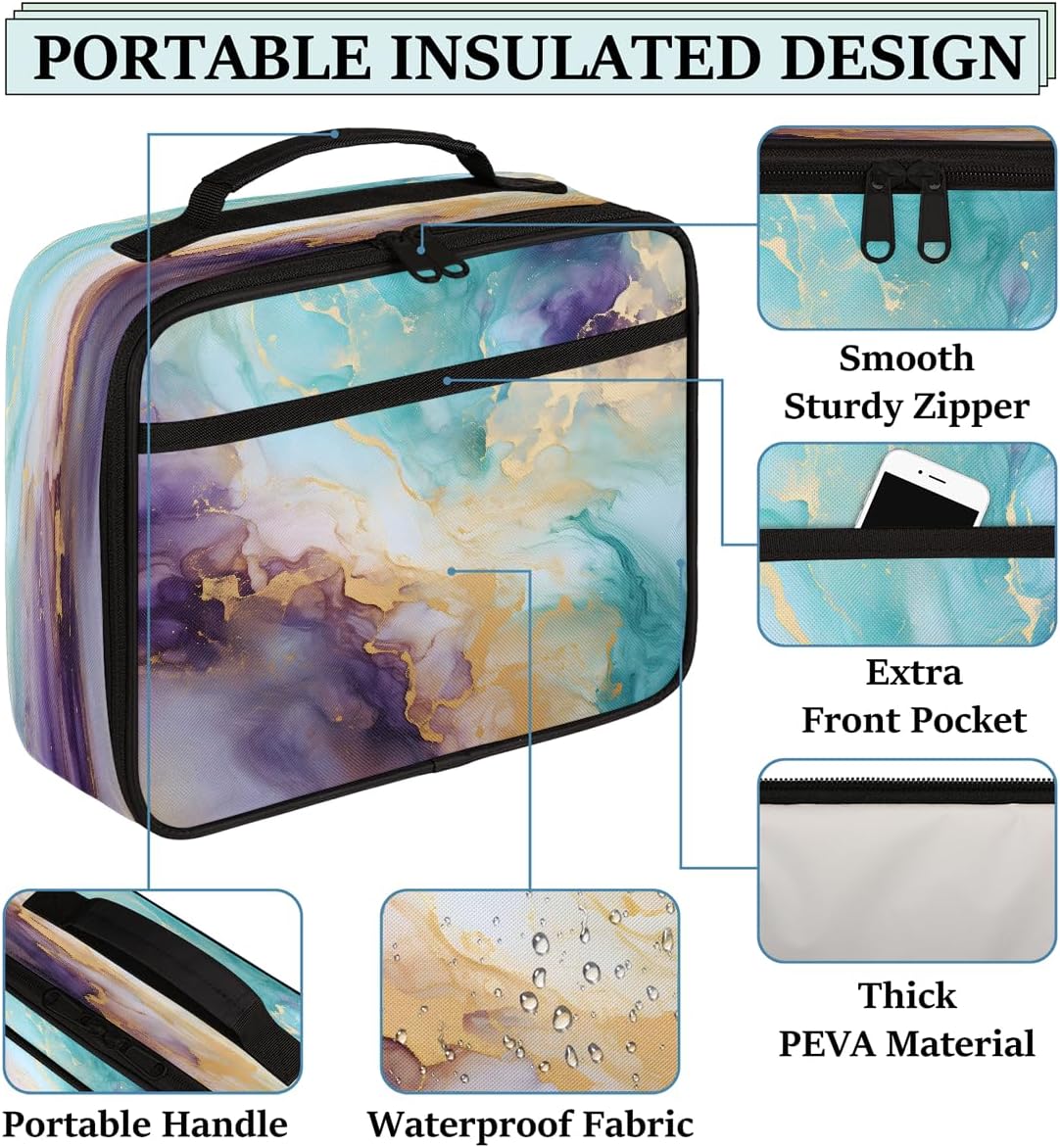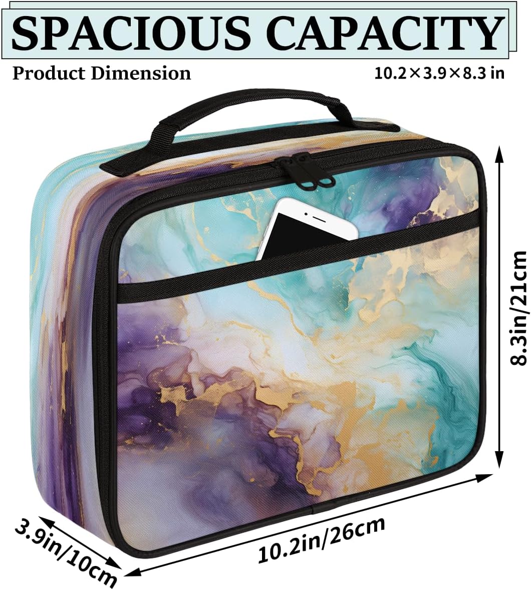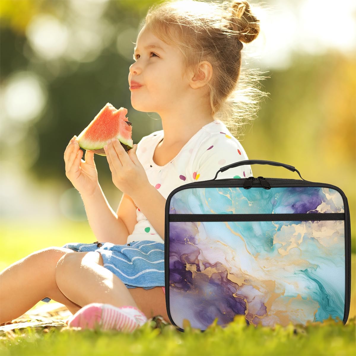 Borsa per il pranzo per bambini astratta viola pastello verde acqua marmo borsa per il pranzo per ragazzi ragazze riutilizzabile isolata bento tote bag per scuola picnic lavoro