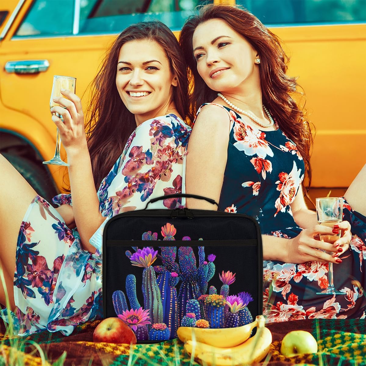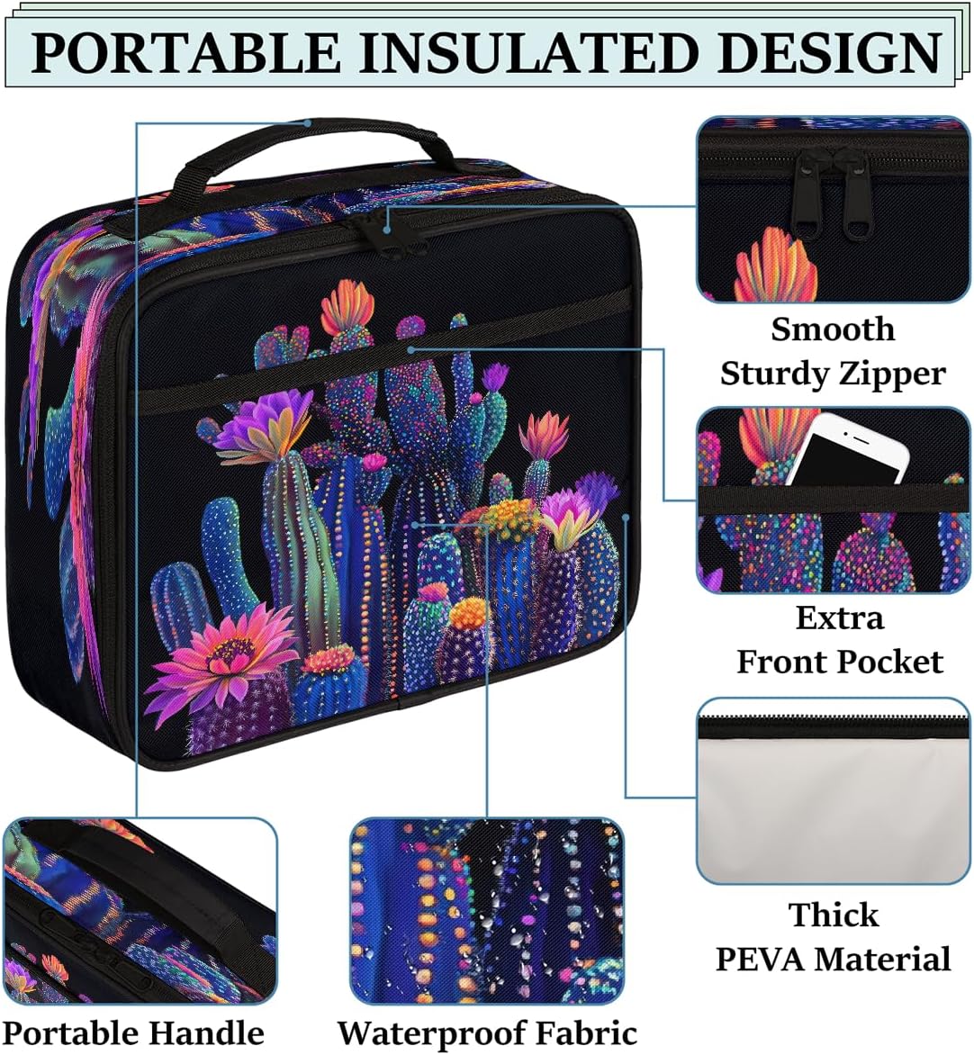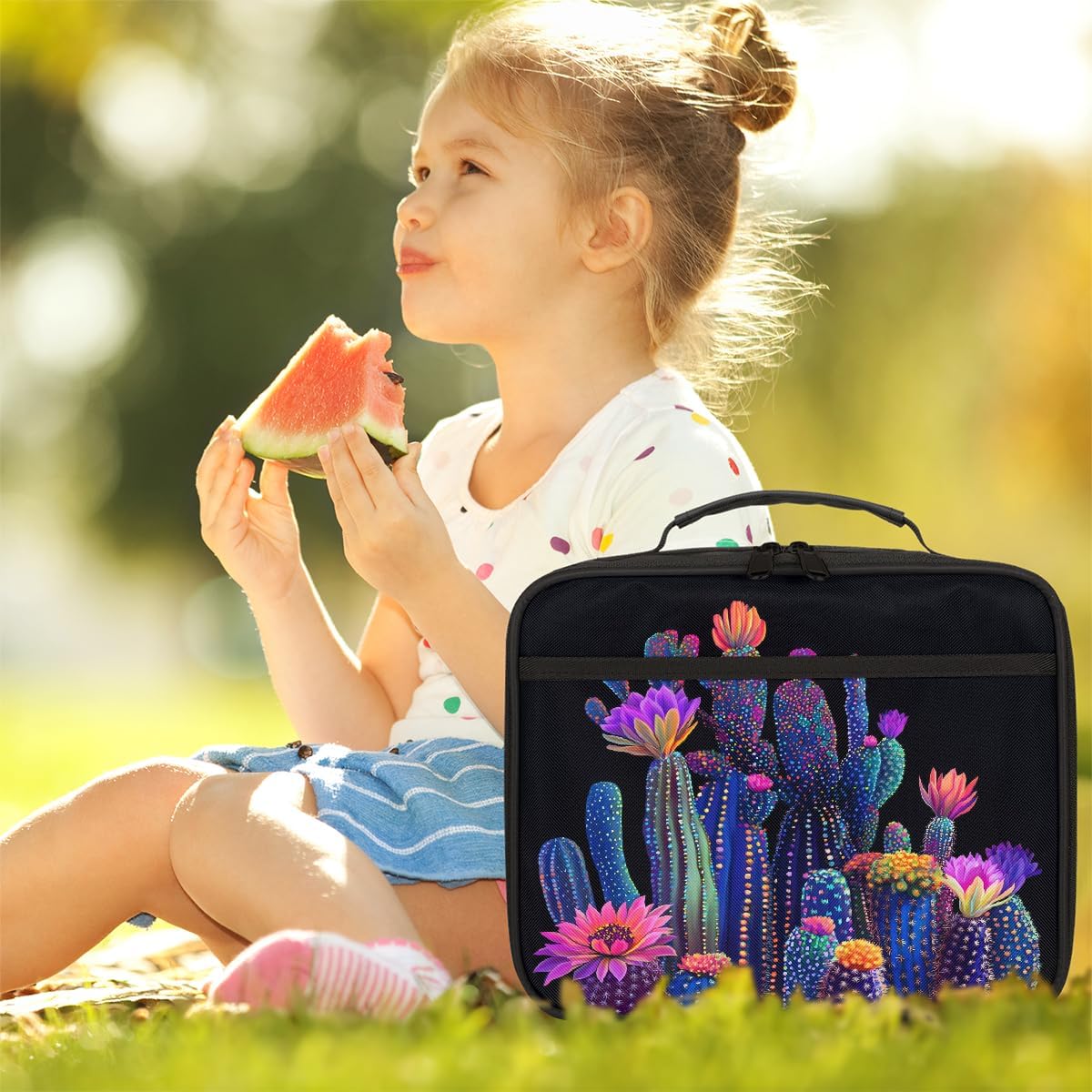 Borsa per il pranzo per bambini con cactus astratto, arte artistica, borsa per il pranzo per ragazzi e ragazze, riutilizzabile, isolata, bento, borsa tote per scuola, picnic, lavoro
