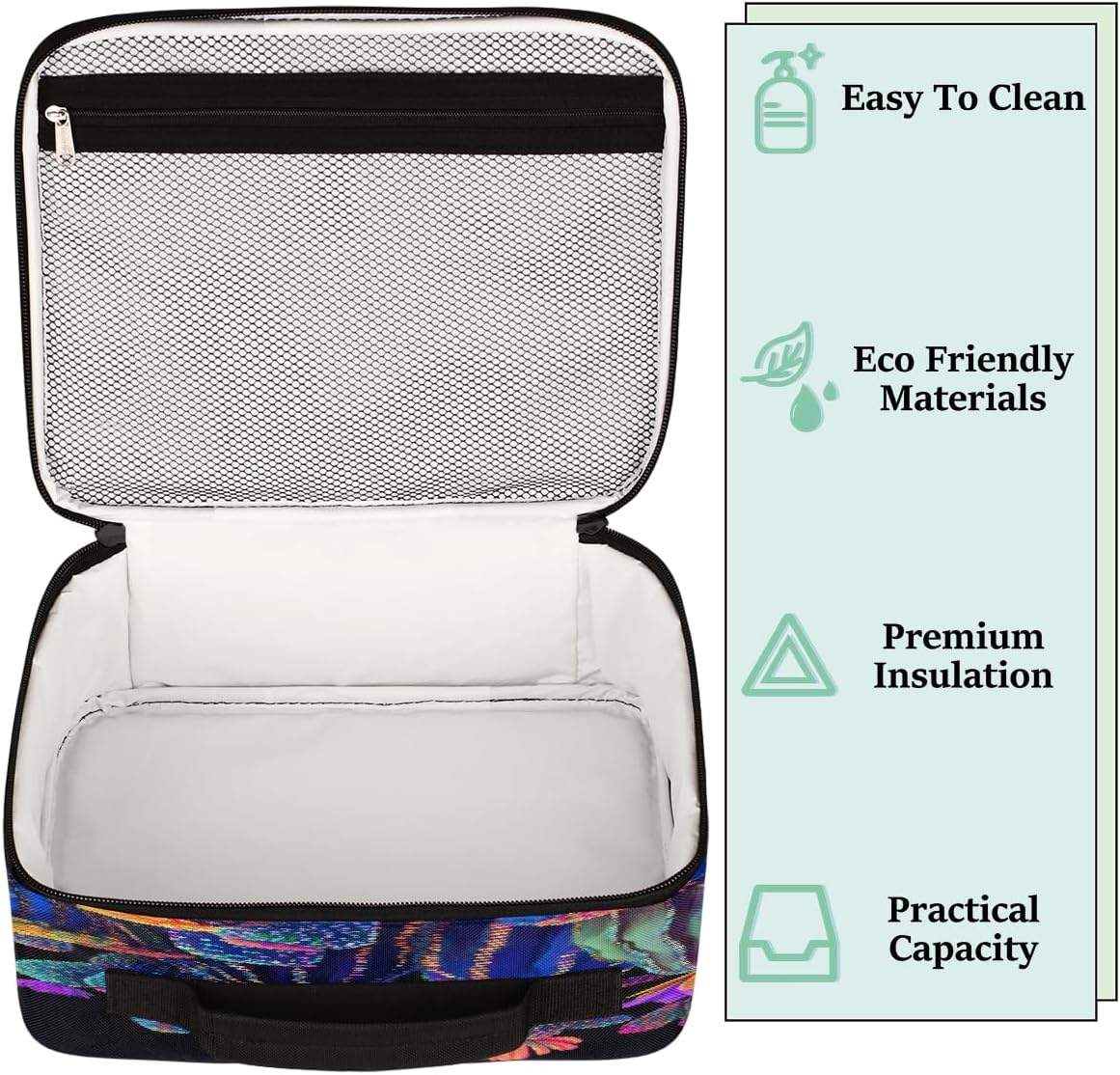 ✿ Dimensioni della borsa portapranzo: 21 x 10 x 26 cm, si adatta perfettamente al tuo portapranzo, frutta, snack e persino bottiglia per frullati proteici ✿ Materiale del contenitore per il pranzo isolato: la borsa per il pranzo riutilizzabile è realizzata in poliestere altamente resistente, facile da pulire, mantiene il cibo o le bevande fresche, calde o fredde per diverse ore, a prova di perdite per l'uso quotidiano Grande capacità: 1 tasca principale con cerniera per riporre facilmente molte cose, come bevande, snack, panini, frutta o verdura; 1 tasca frontale esterna con cerniera per riporre caramelle, chiavi, telefono e altri piccoli oggetti da portare in ufficio, escursioni, viaggi, feste ✿ Piume: la nostra borsa per il pranzo ha 1 tasca principale con cerniera per mantenere cibi e bevande caldi o freschi, 1 grande tasca frontale per chiavi, carte, telefoni e così via. È molto facile da portare ovunque come viaggi, spiaggia e sport; è facile da trasportare, a tracolla, inoltre, la tracolla può essere rimossa e trasformata in una borsa portatile per i pasti ✿ Regalo perfetto: motivi unici, regali unici, ideali per gli amici durante il festival, come compleanno, Natale, giorno della scuola