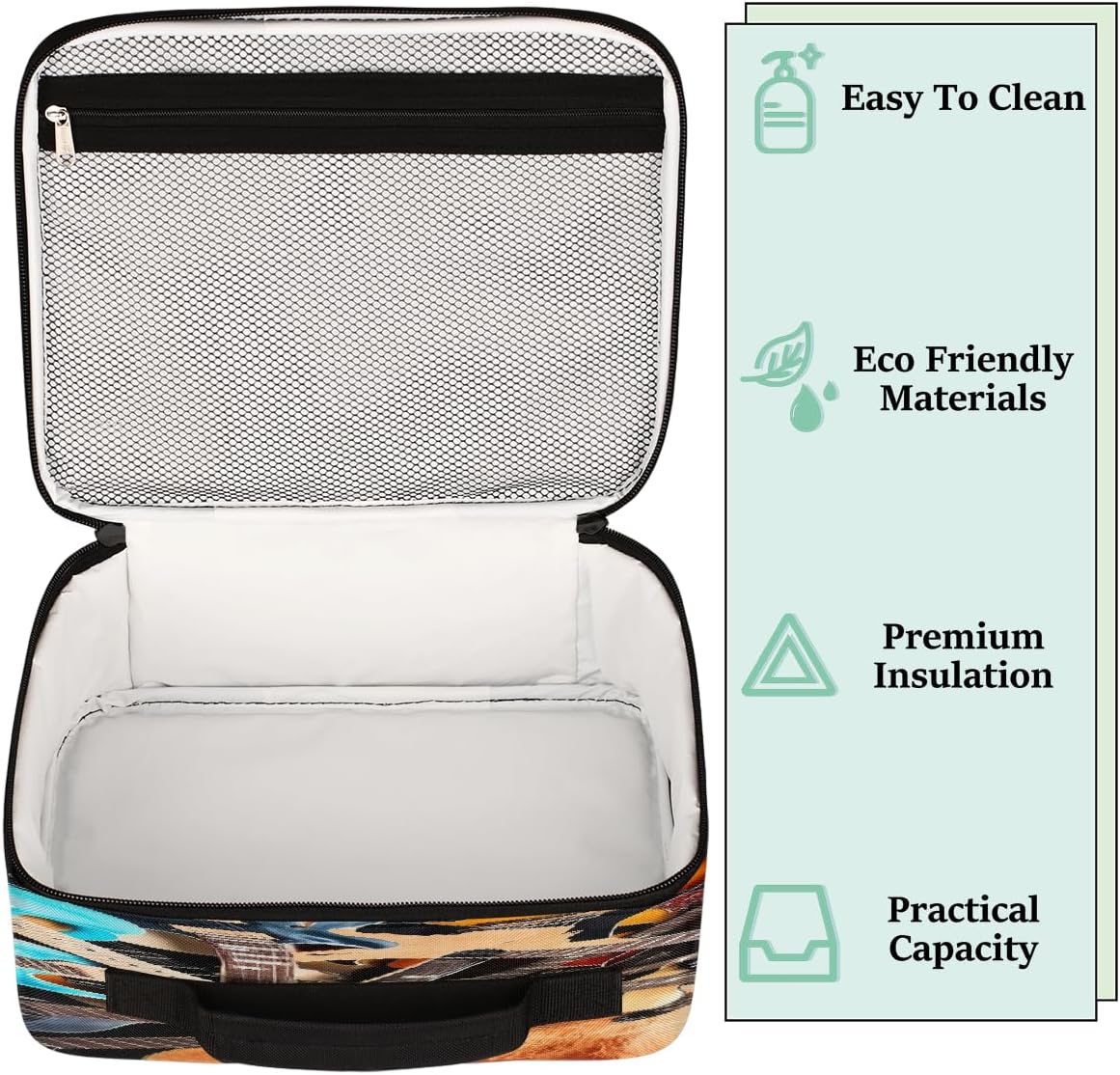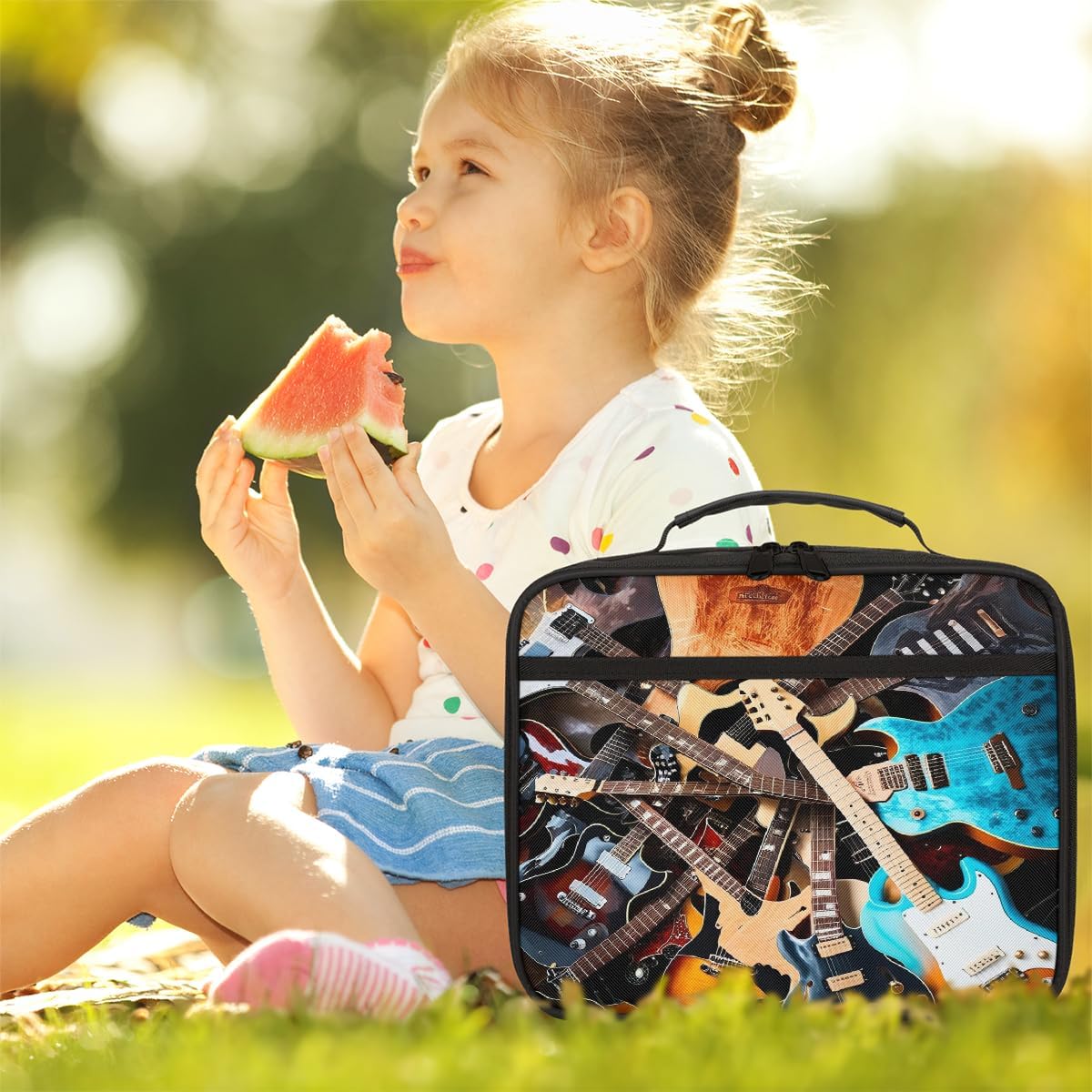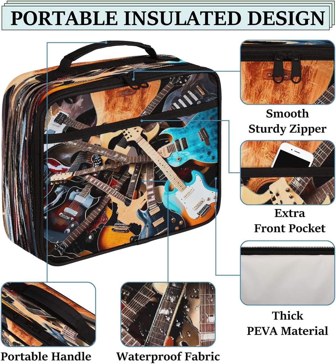 Borsa per il pranzo per bambini, con chitarra, per ragazzi e ragazze, riutilizzabile, isolata, per scuola, picnic, lavoro