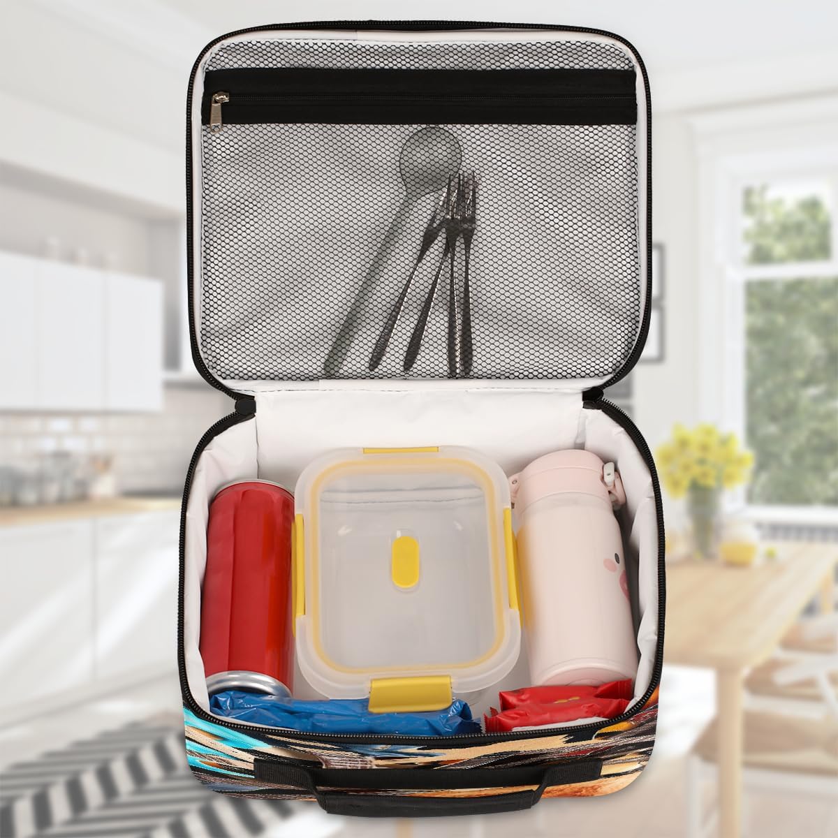 ✿ Dimensioni della borsa portapranzo: 21 x 10 x 26 cm, si adatta perfettamente al tuo portapranzo, frutta, snack e persino bottiglia per frullati proteici ✿ Materiale del contenitore per il pranzo isolato: la borsa per il pranzo riutilizzabile è realizzata in poliestere altamente resistente, facile da pulire, mantiene il cibo o le bevande fresche, calde o fredde per diverse ore, a prova di perdite per l'uso quotidiano Grande capacità: 1 tasca principale con cerniera per riporre facilmente molte cose, come bevande, snack, panini, frutta o verdura; 1 tasca frontale esterna con cerniera per riporre caramelle, chiavi, telefono e altri piccoli oggetti da portare in ufficio, escursioni, viaggi, feste ✿ Piume: la nostra borsa per il pranzo ha 1 tasca principale con cerniera per mantenere cibi e bevande caldi o freschi, 1 grande tasca frontale per chiavi, carte, telefoni e così via. È molto facile da portare ovunque come viaggi, spiaggia e sport; è facile da trasportare, a tracolla, inoltre, la tracolla può essere rimossa e trasformata in una borsa portatile per i pasti ✿ Regalo perfetto: motivi unici, regali unici, ideali per gli amici durante il festival, come compleanno, Natale, giorno della scuola