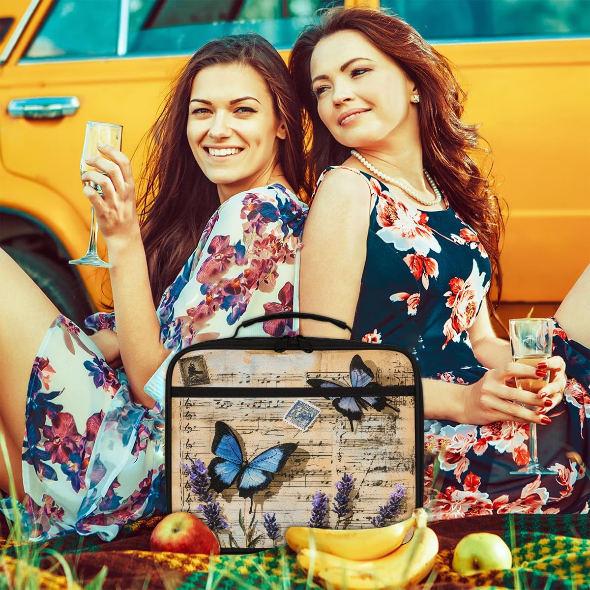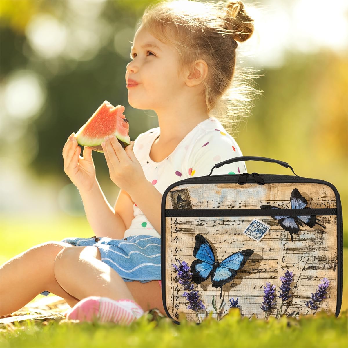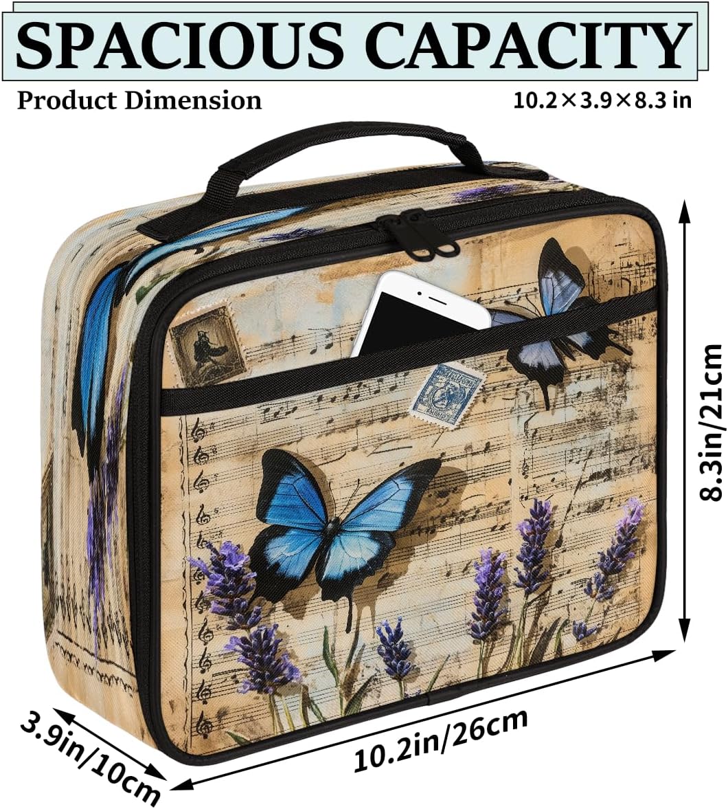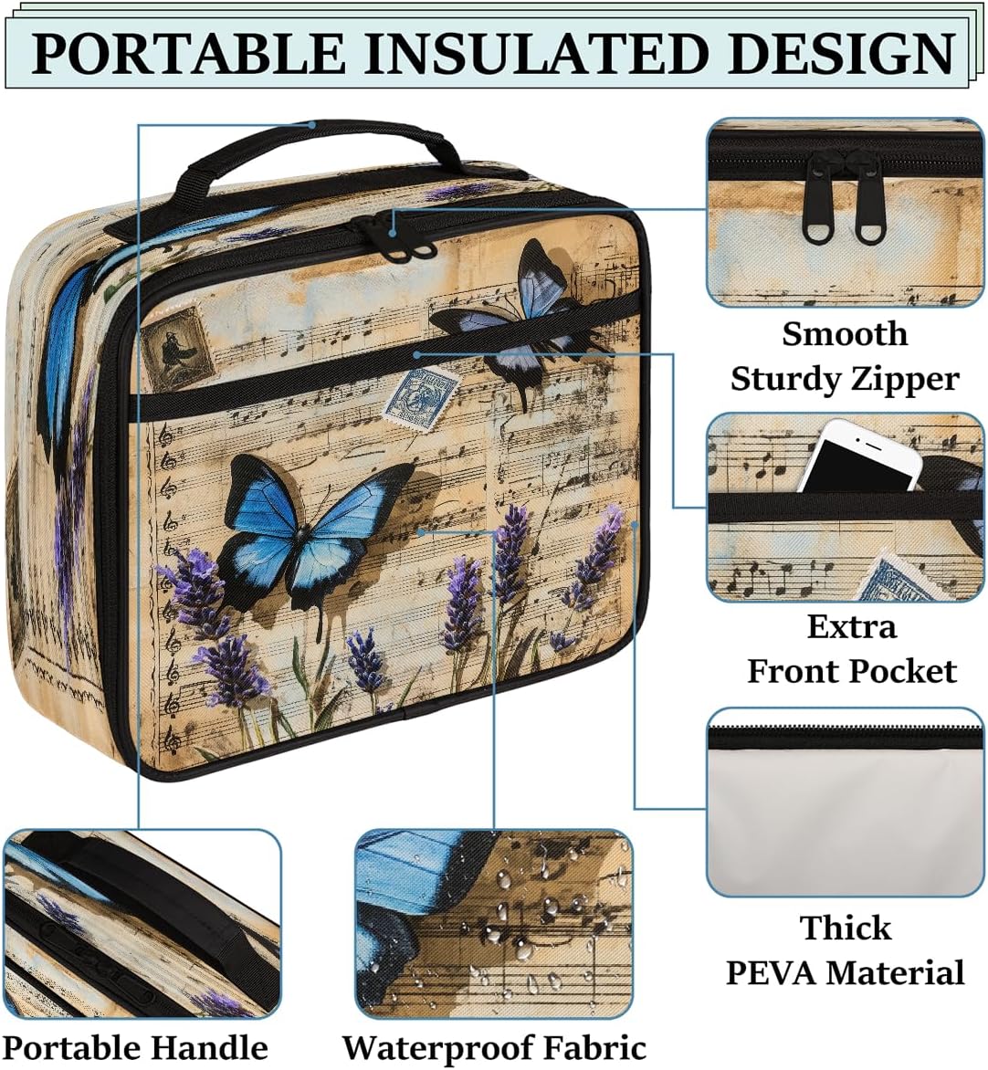 Borsa per il pranzo per bambini con farfalle vintage e musicali, per ragazzi e ragazze, riutilizzabile, isolata, bento, per scuola, picnic, lavoro
