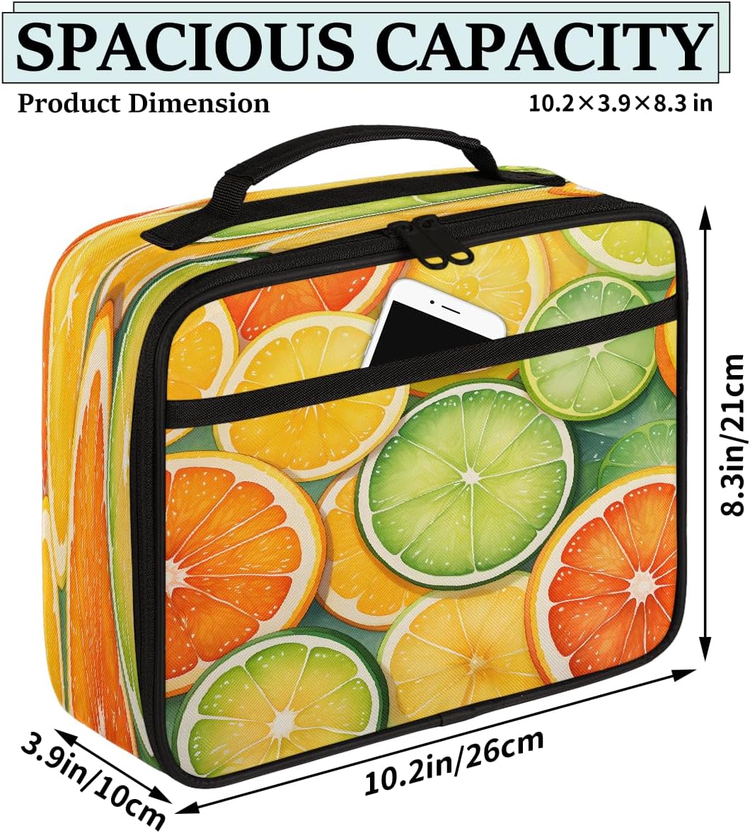 Borsa per il pranzo per bambini con fette di pompelmo colorate, borsa per il pranzo per ragazzi e ragazze, riutilizzabile, isolata, bento, borsa tote per scuola, picnic, lavoro