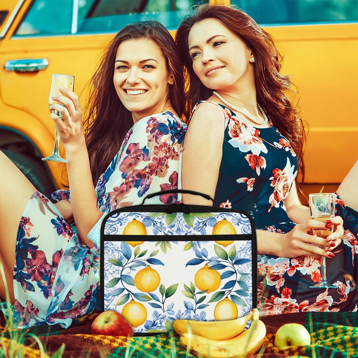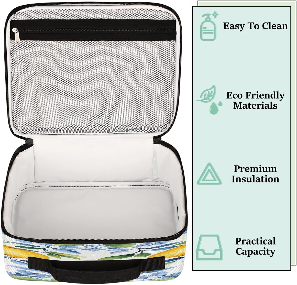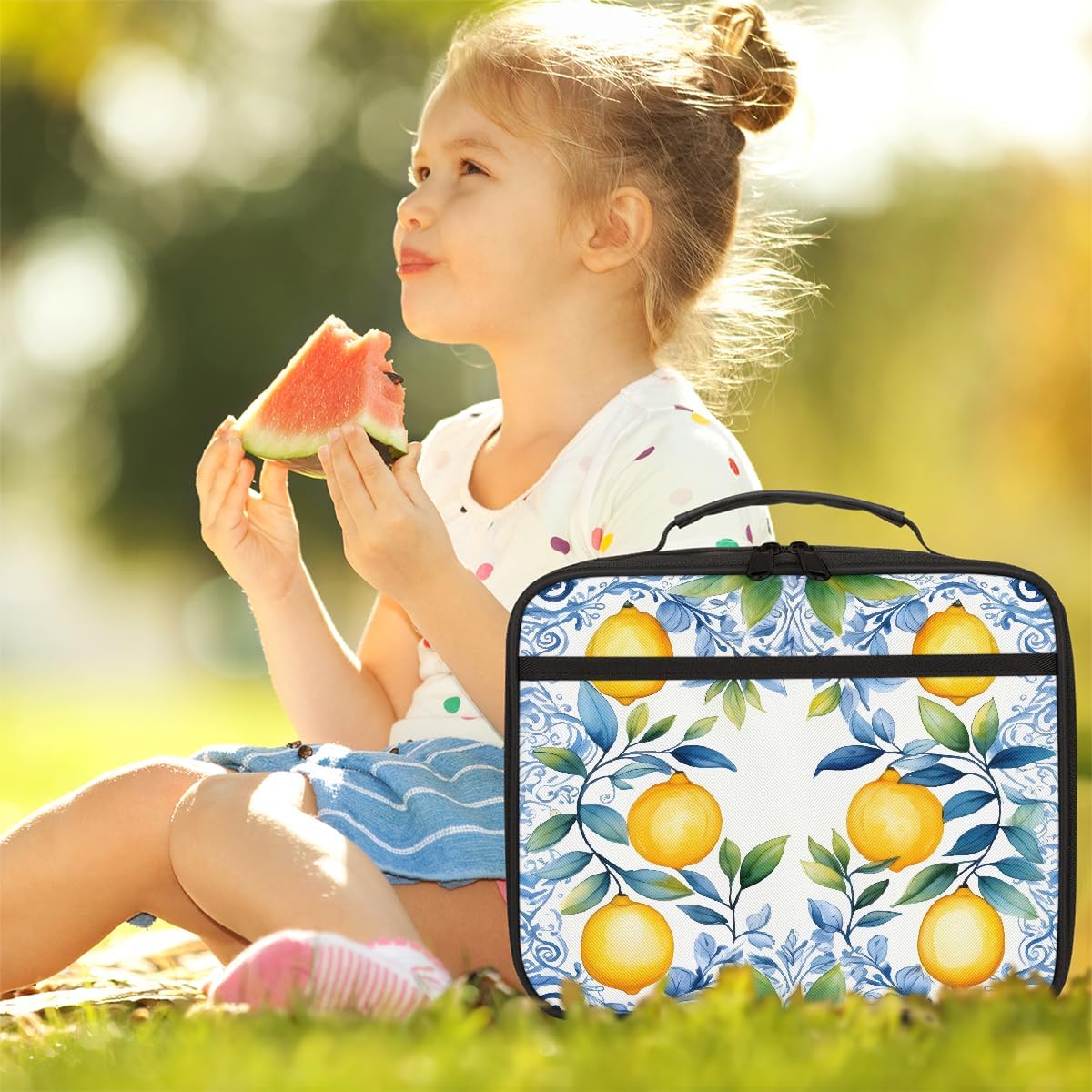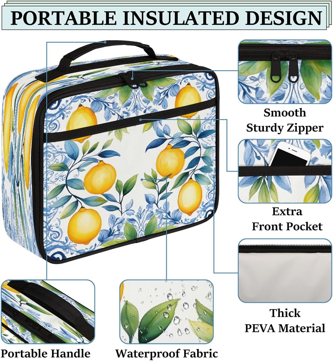 Borsa per il pranzo per bambini con foglie blu acquerello giallo limone borsa per il pranzo per ragazzi ragazze riutilizzabile isolata bento tote bag per scuola picnic lavoro