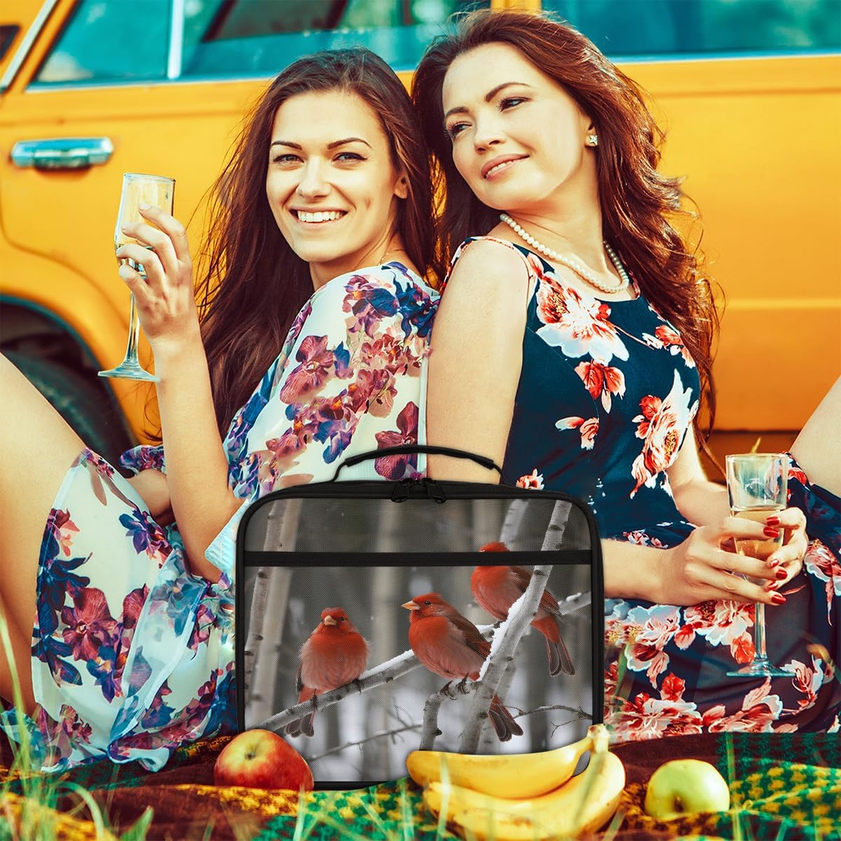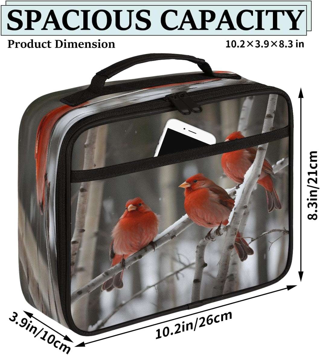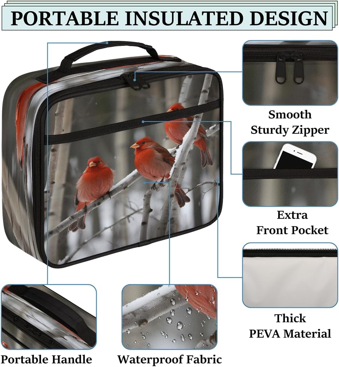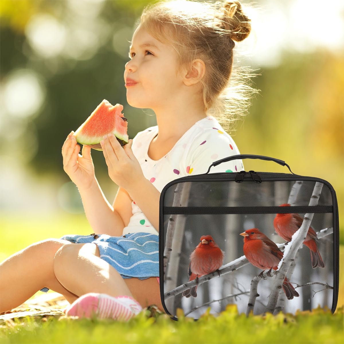 Borsa per il pranzo per bambini con foresta invernale cardinale uccello borsa per il pranzo per ragazzi ragazze riutilizzabile isolata bento tote bag per scuola picnic lavoro