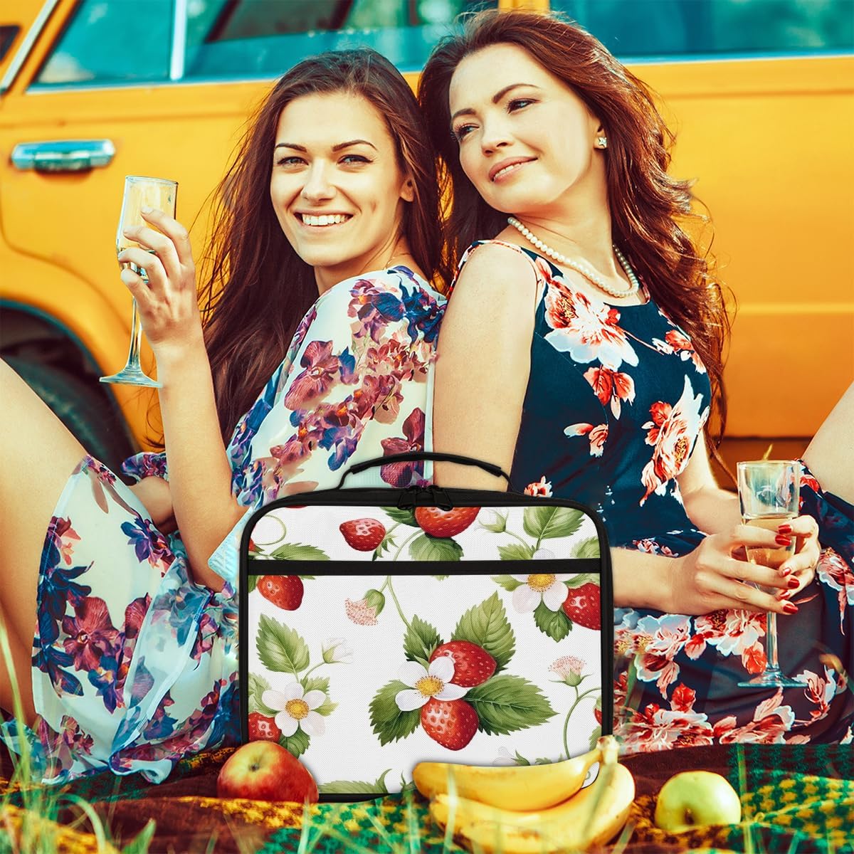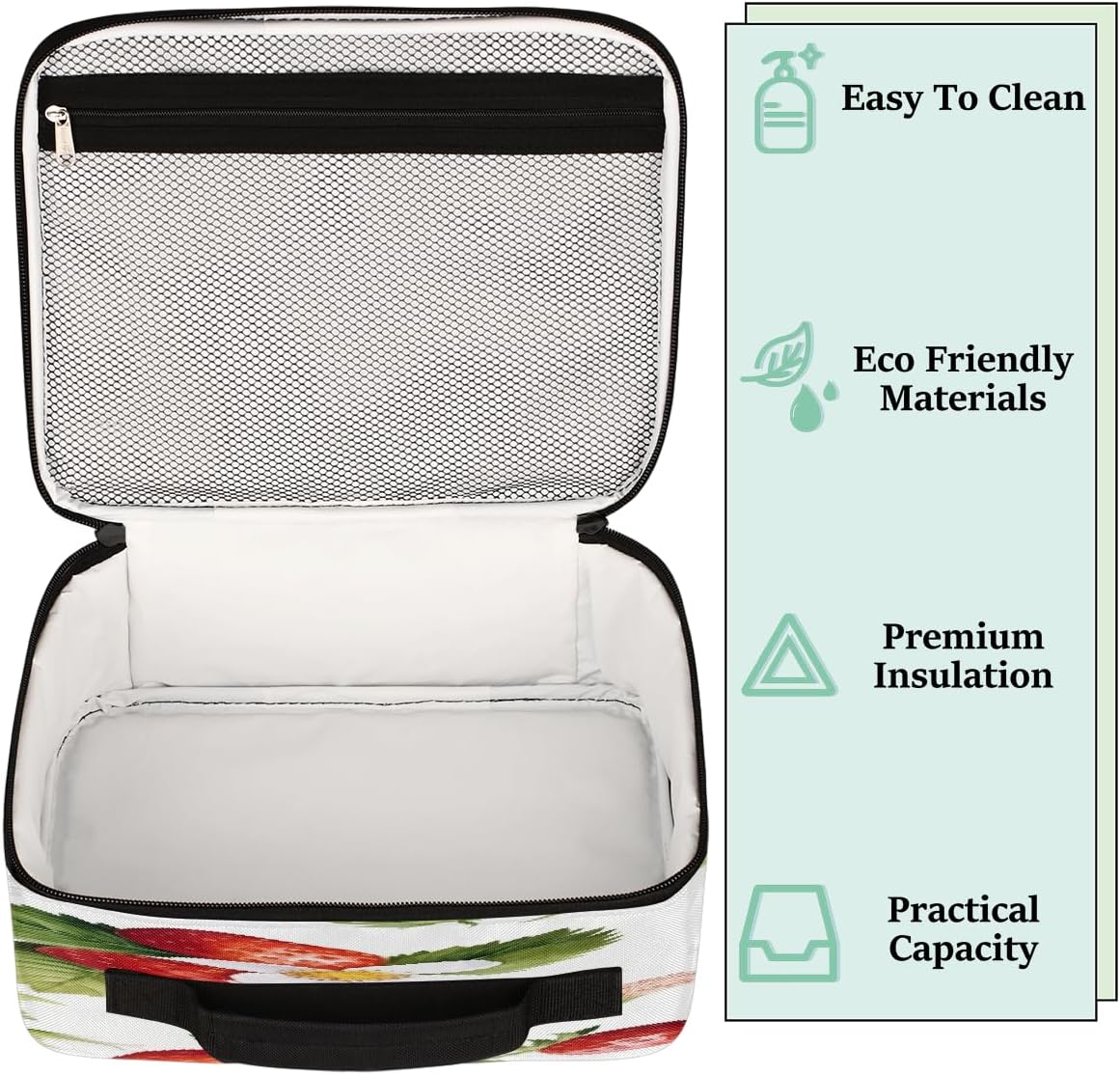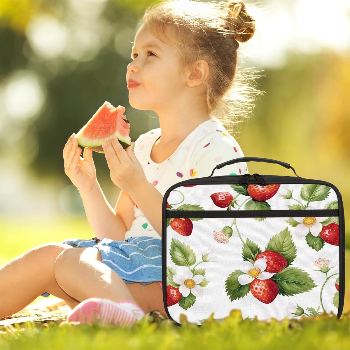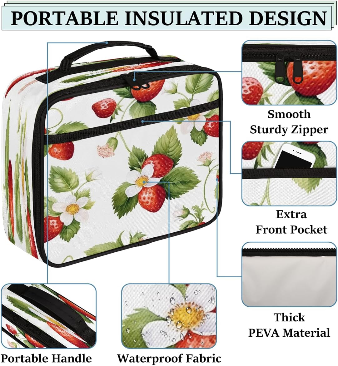 Borsa per il pranzo per bambini con frutta e fiori di Starwberry, borsa per il pranzo per ragazzi e ragazze, riutilizzabile, isolata, bento, borsa tote per scuola, picnic, lavoro