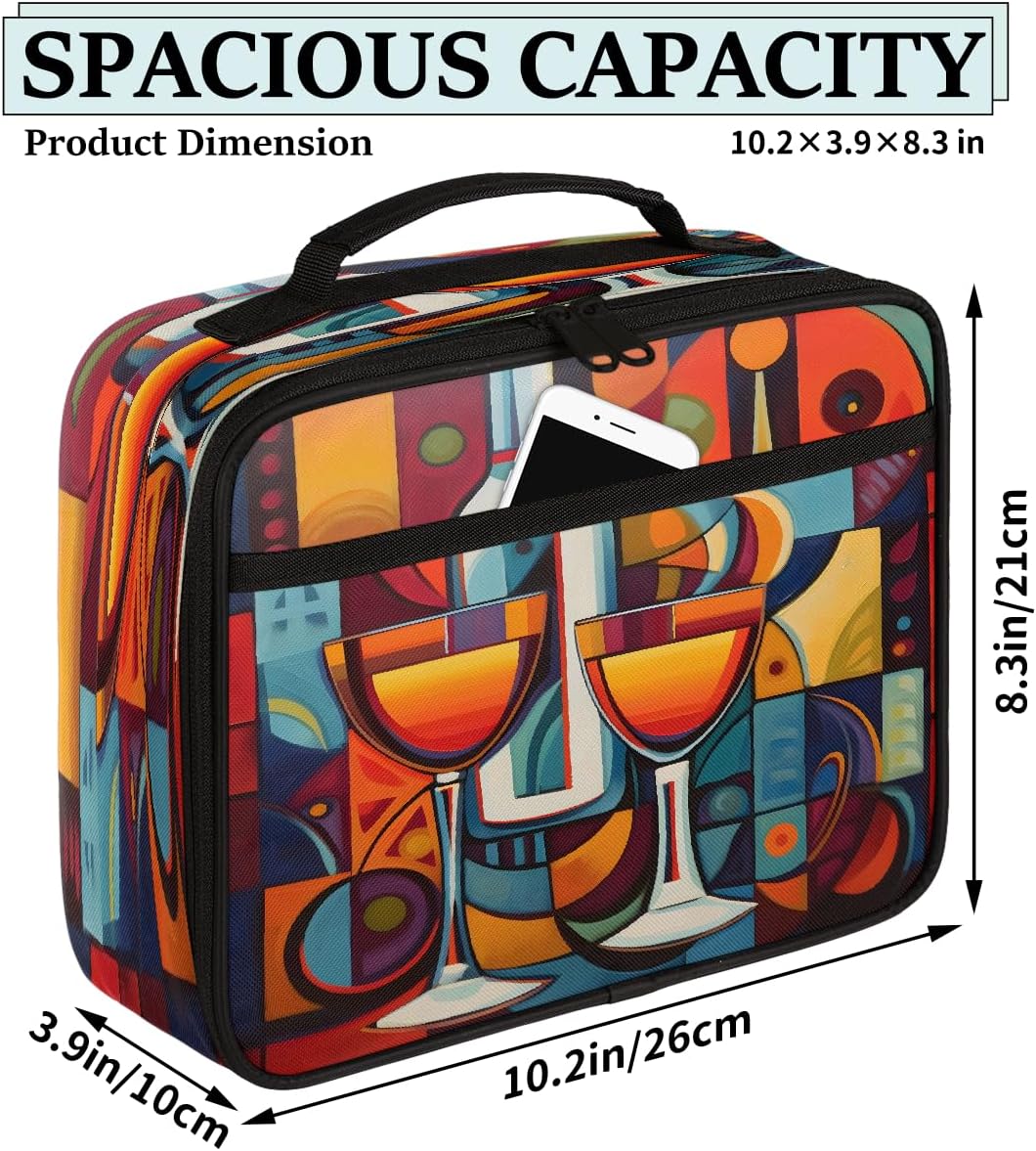 Borsa per il pranzo per bambini con motivo astratto per bicchieri da vino, borsa per il pranzo per ragazzi e ragazze, riutilizzabile, isolata, borsa bento per scuola, picnic, lavoro
