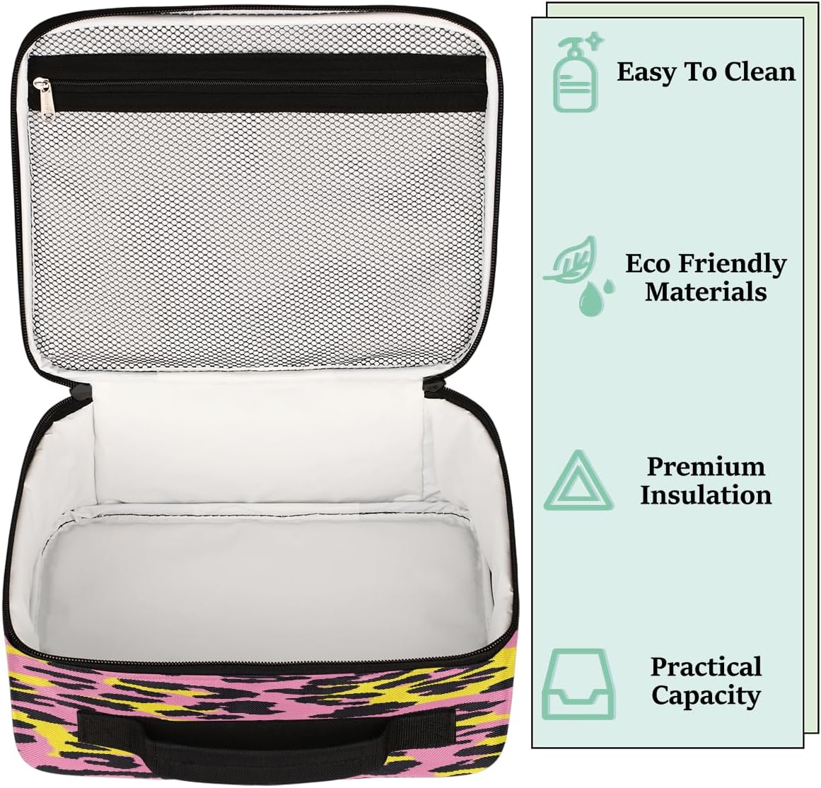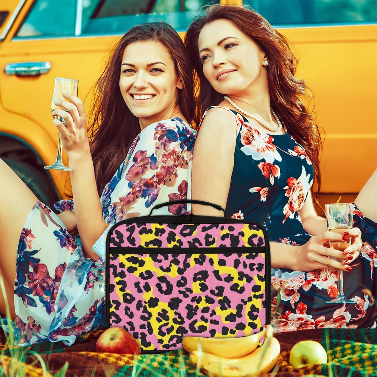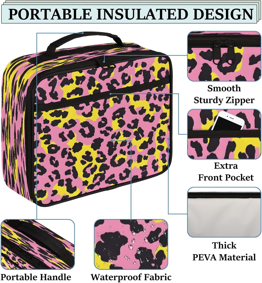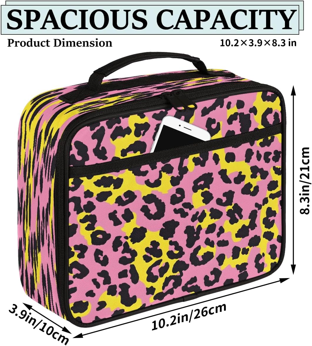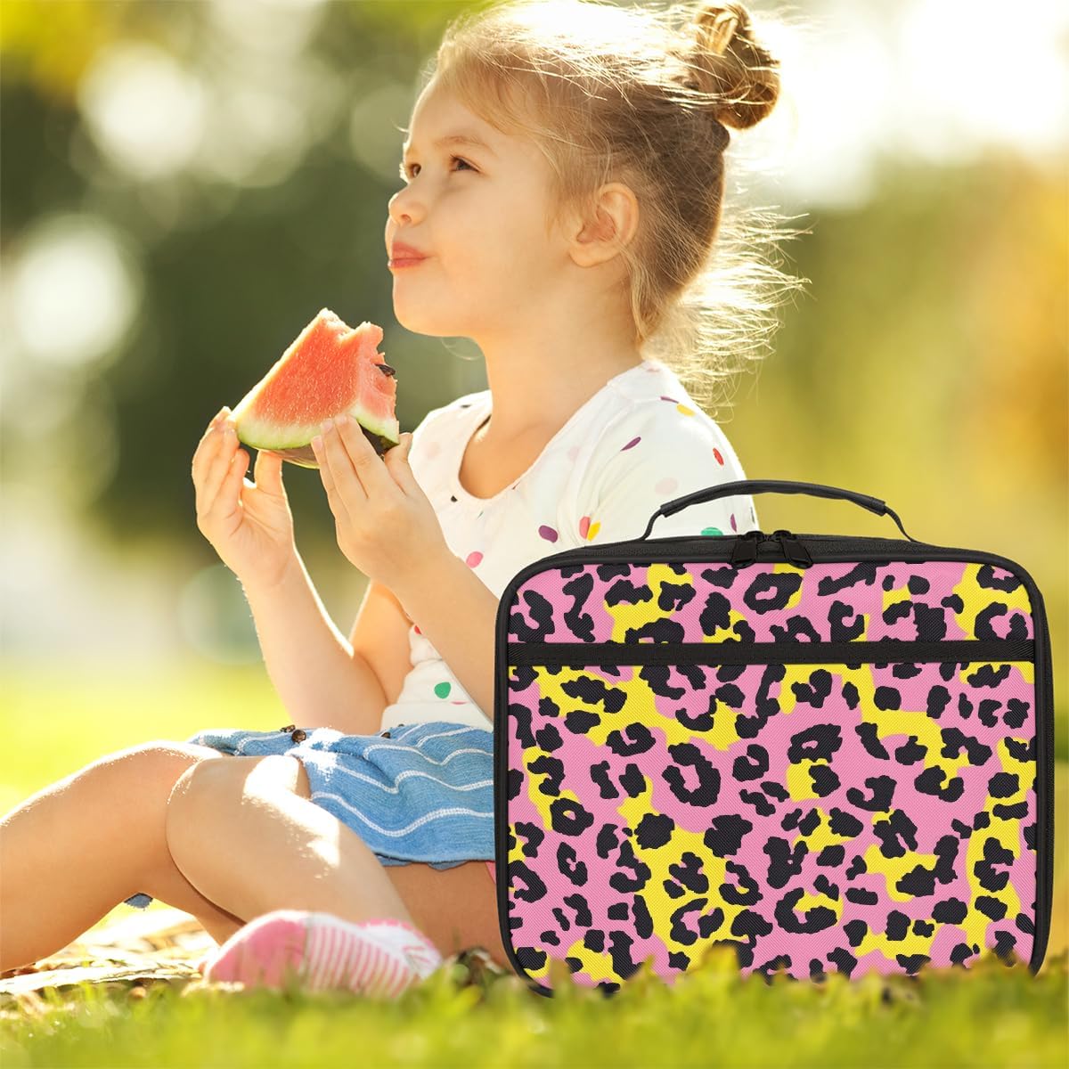 Borsa per il pranzo per bambini con stampa leopardata ghepardo rosa gialla borsa per il pranzo per ragazzi ragazze riutilizzabile isolata bento tote bag per scuola picnic lavoro