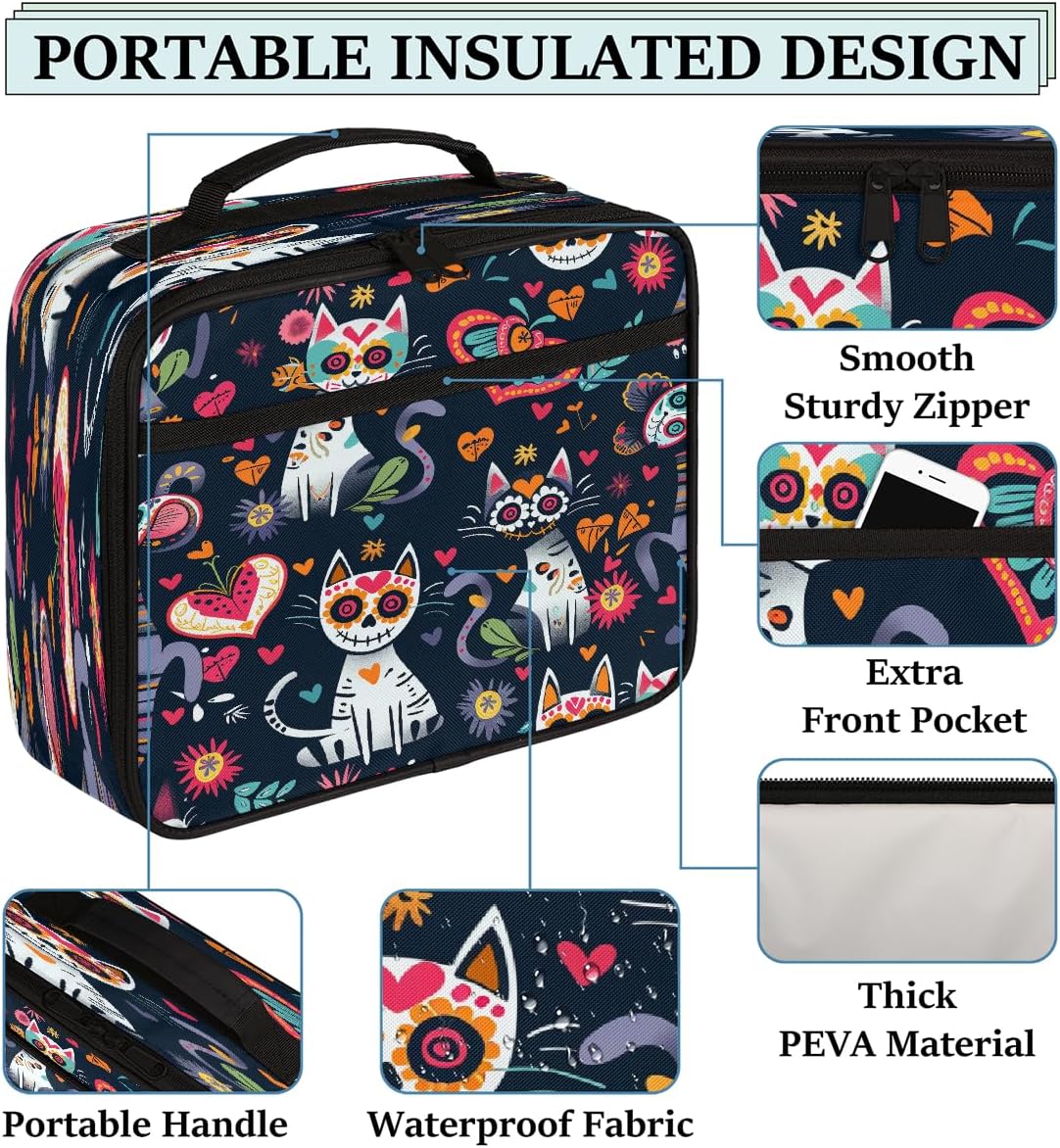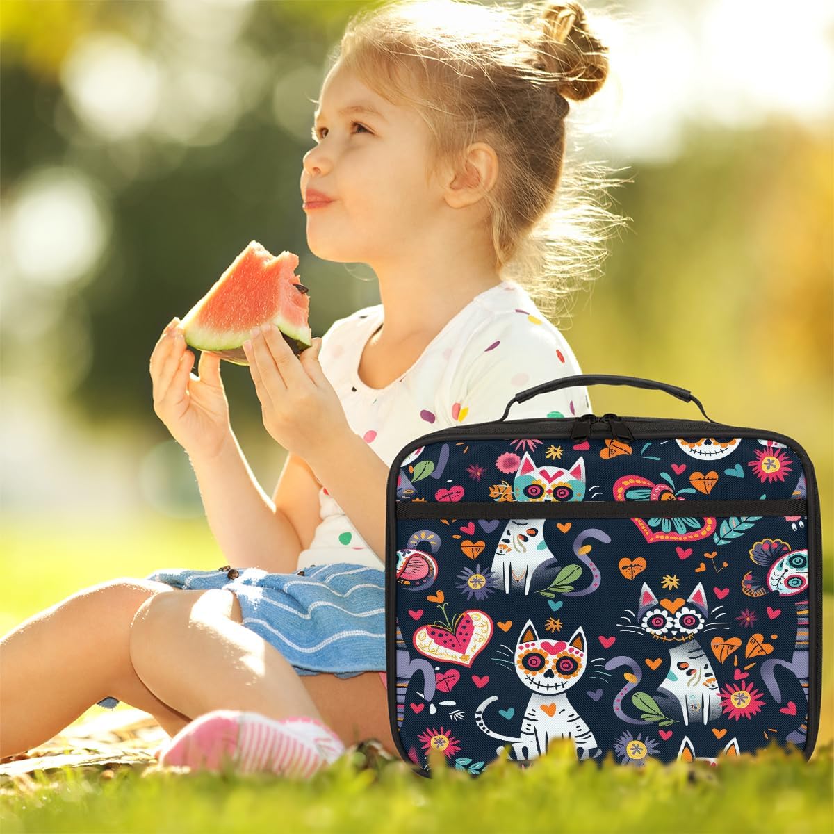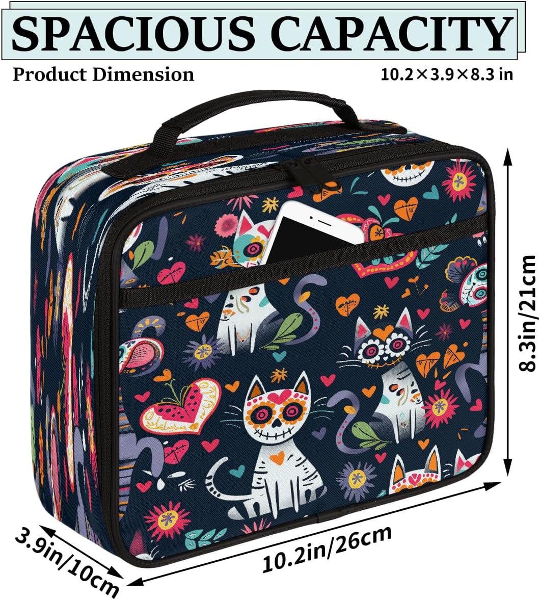 Borsa per il pranzo per bambini, divertente, con teschio di zucchero, per ragazzi e ragazze, riutilizzabile, isolata, per scuola, picnic, lavoro
