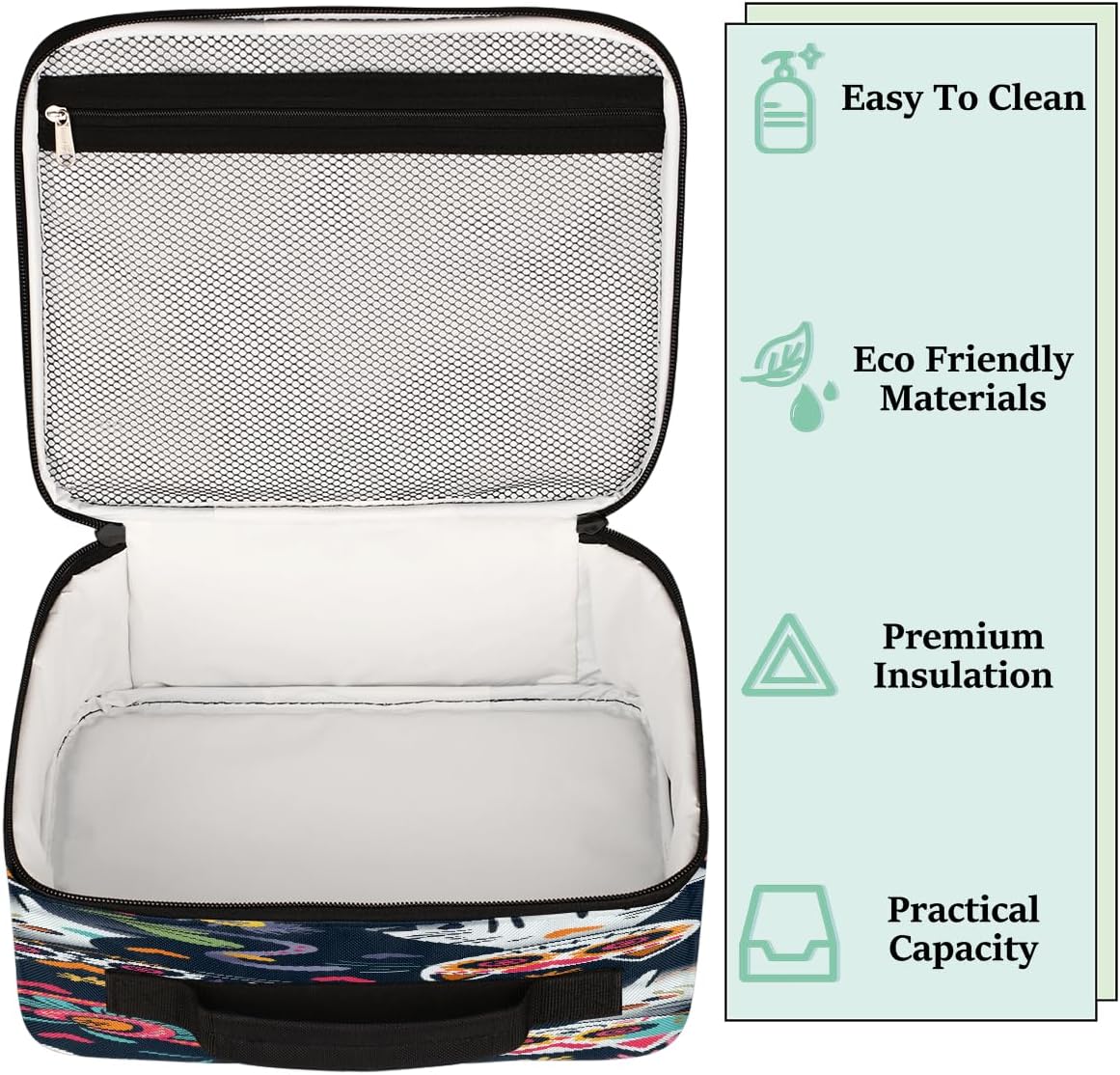 ✿ Dimensioni della borsa portapranzo: 21 x 10 x 26 cm, si adatta perfettamente al tuo portapranzo, frutta, snack e persino bottiglia per frullati proteici ✿ Materiale del contenitore per il pranzo isolato: la borsa per il pranzo riutilizzabile è realizzata in poliestere altamente resistente, facile da pulire, mantiene il cibo o le bevande fresche, calde o fredde per diverse ore, a prova di perdite per l'uso quotidiano Grande capacità: 1 tasca principale con cerniera per riporre facilmente molte cose, come bevande, snack, panini, frutta o verdura; 1 tasca frontale esterna con cerniera per riporre caramelle, chiavi, telefono e altri piccoli oggetti da portare in ufficio, escursioni, viaggi, feste ✿ Piume: la nostra borsa per il pranzo ha 1 tasca principale con cerniera per mantenere cibi e bevande caldi o freschi, 1 grande tasca frontale per chiavi, carte, telefoni e così via. È molto facile da portare ovunque come viaggi, spiaggia e sport; è facile da trasportare, a tracolla, inoltre, la tracolla può essere rimossa e trasformata in una borsa portatile per i pasti ✿ Regalo perfetto: motivi unici, regali unici, ideali per gli amici durante il festival, come compleanno, Natale, giorno della scuola