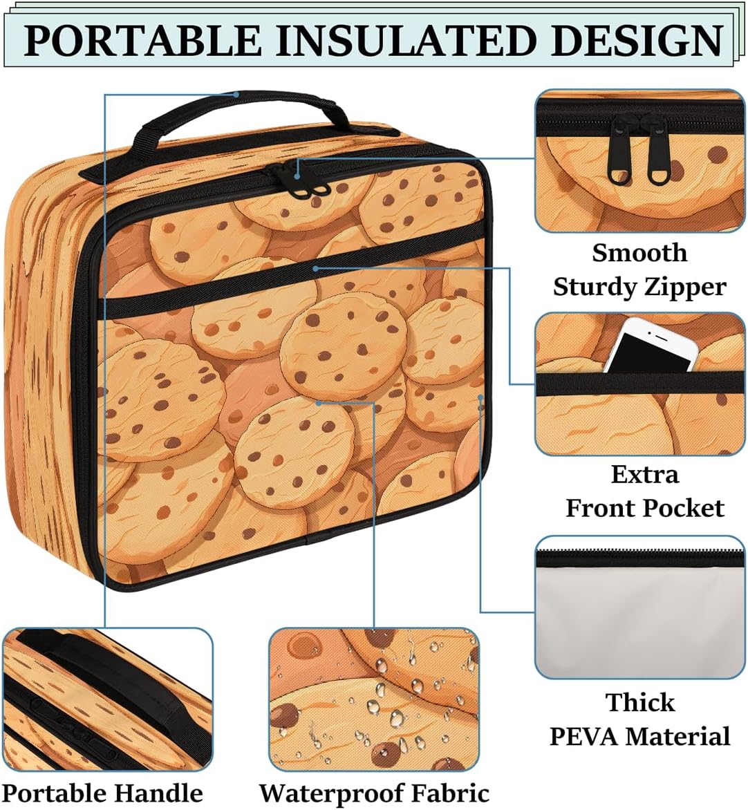 Borsa per il pranzo per bambini, motivo con simpatici biscotti, borsa per il pranzo per ragazzi e ragazze, riutilizzabile, isolata, bento, borsa tote per scuola, picnic, lavoro