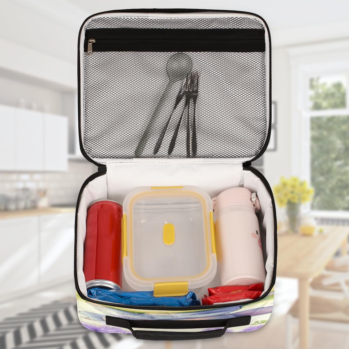 ✿ Dimensioni della borsa portapranzo: 21 x 10 x 26 cm, si adatta perfettamente al tuo portapranzo, frutta, snack e persino bottiglia per frullati proteici ✿ Materiale del contenitore per il pranzo isolato: la borsa per il pranzo riutilizzabile è realizzata in poliestere altamente resistente, facile da pulire, mantiene il cibo o le bevande fresche, calde o fredde per diverse ore, a prova di perdite per l'uso quotidiano Grande capacità: 1 tasca principale con cerniera per riporre facilmente molte cose, come bevande, snack, panini, frutta o verdura; 1 tasca frontale esterna con cerniera per riporre caramelle, chiavi, telefono e altri piccoli oggetti da portare in ufficio, escursioni, viaggi, feste ✿ Piume: la nostra borsa per il pranzo ha 1 tasca principale con cerniera per mantenere cibi e bevande caldi o freschi, 1 grande tasca frontale per chiavi, carte, telefoni e così via. È molto facile da portare ovunque come viaggi, spiaggia e sport; è facile da trasportare, a tracolla, inoltre, la tracolla può essere rimossa e trasformata in una borsa portatile per i pasti ✿ Regalo perfetto: motivi unici, regali unici, ideali per gli amici durante il festival, come compleanno, Natale, giorno della scuola