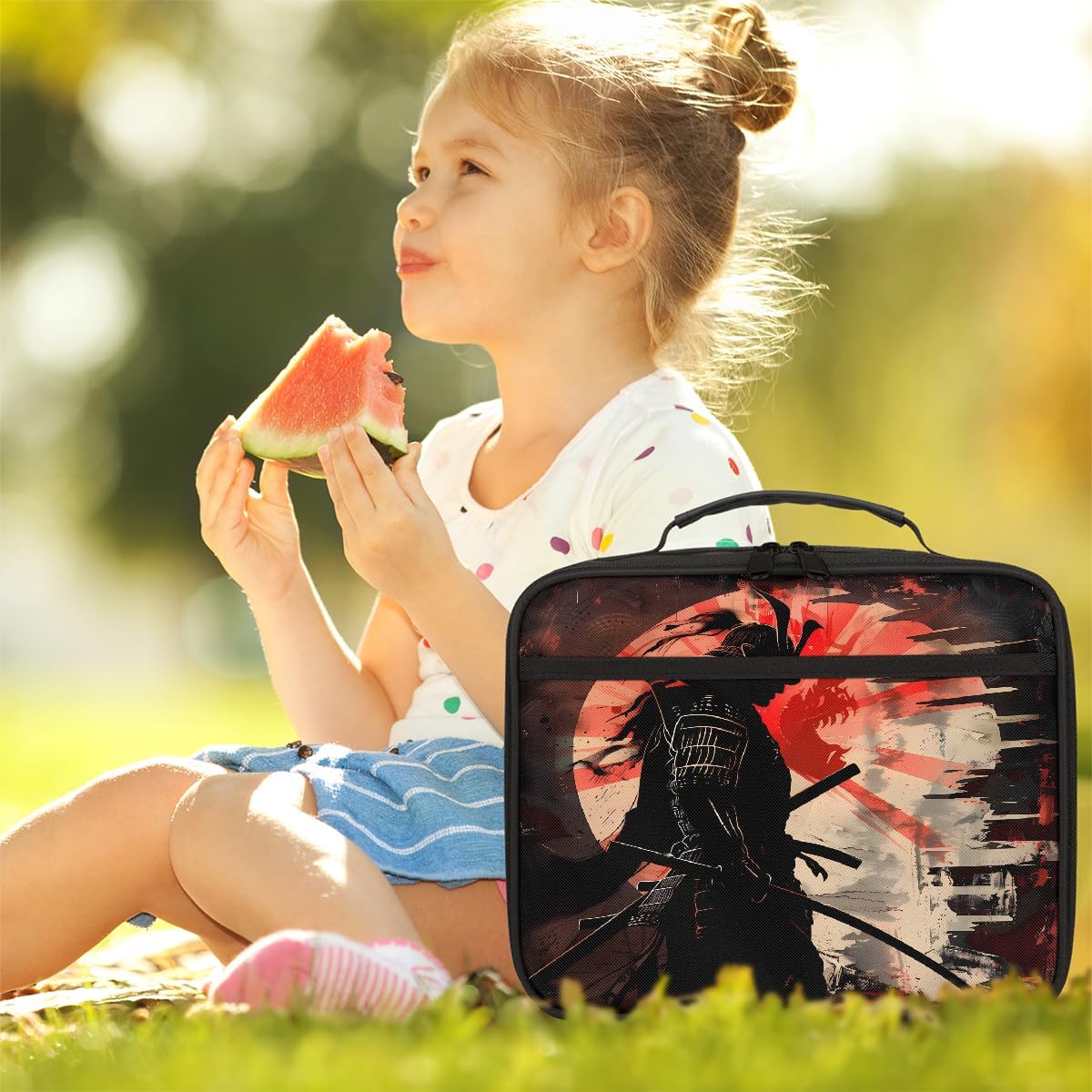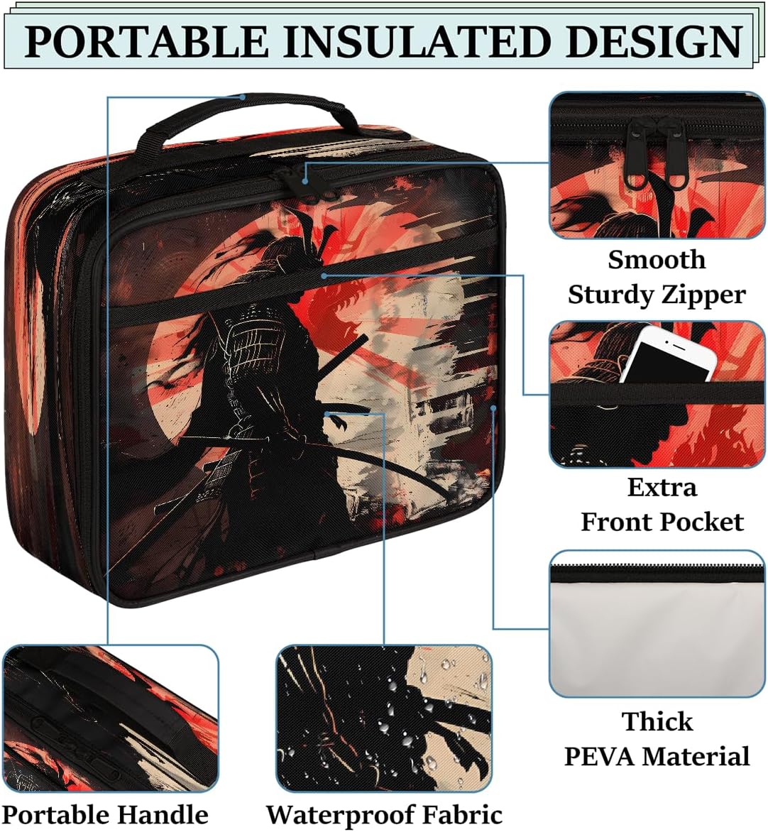 Borsa per il pranzo per bambini, motivo samurai giapponese, borsa per il pranzo, per ragazzi e ragazze, riutilizzabile, isolata, bento, per scuola, picnic, lavoro